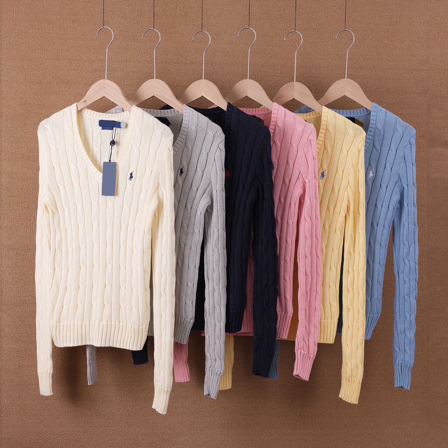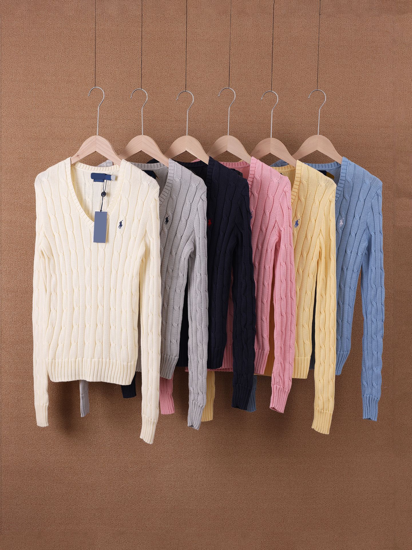 RL[V넥 니트 긴팔] 포니 자수 60S 오리지널 원단 케이블 코튼/스캔 가능한 고품질 SF Express