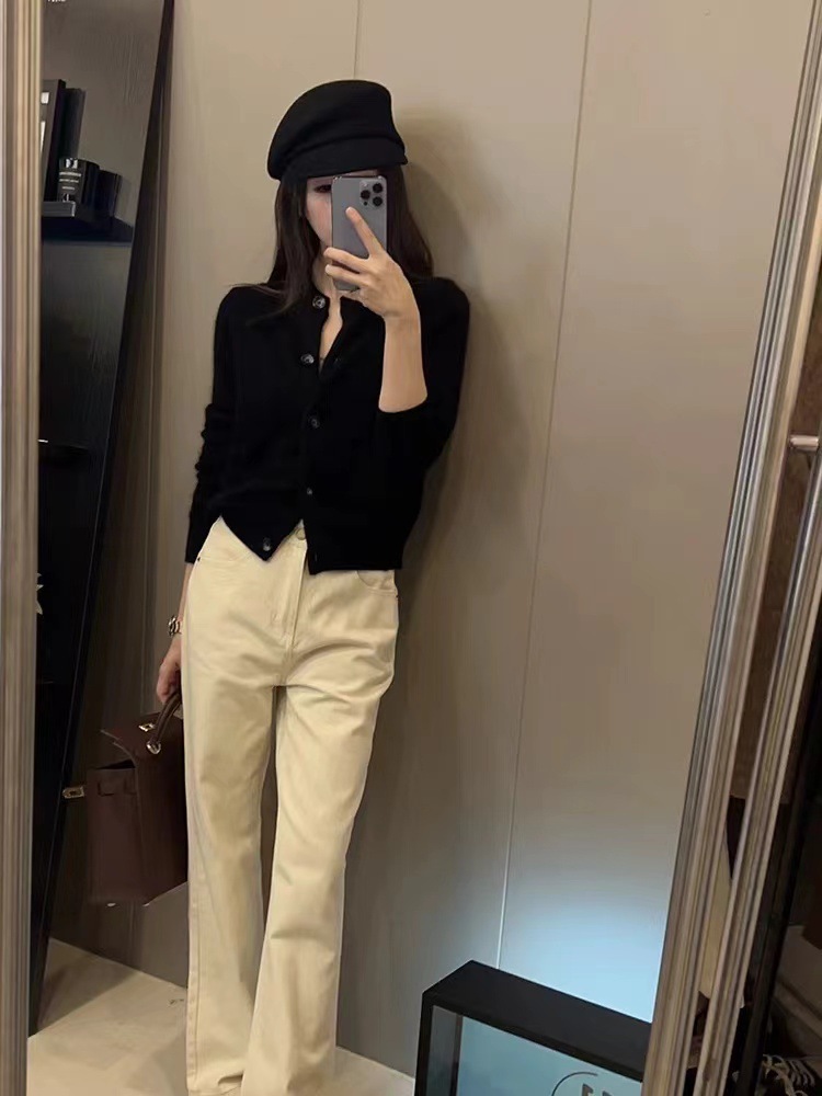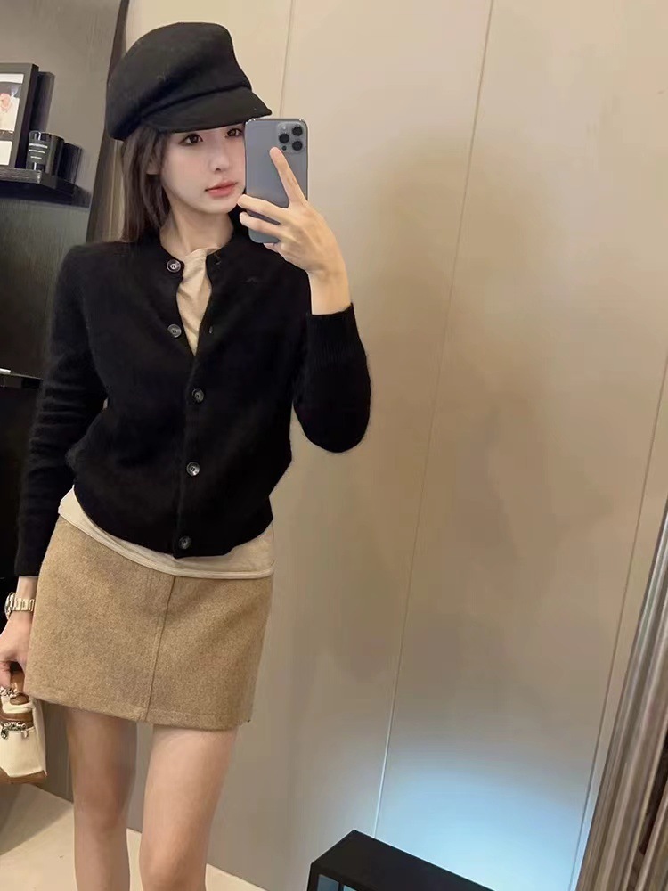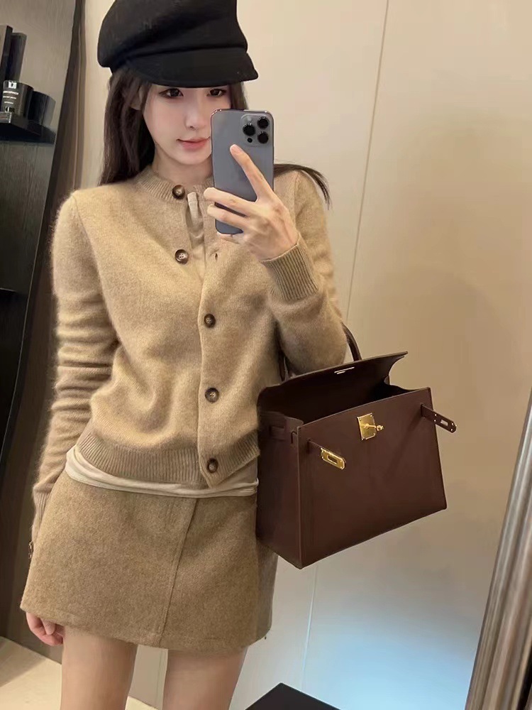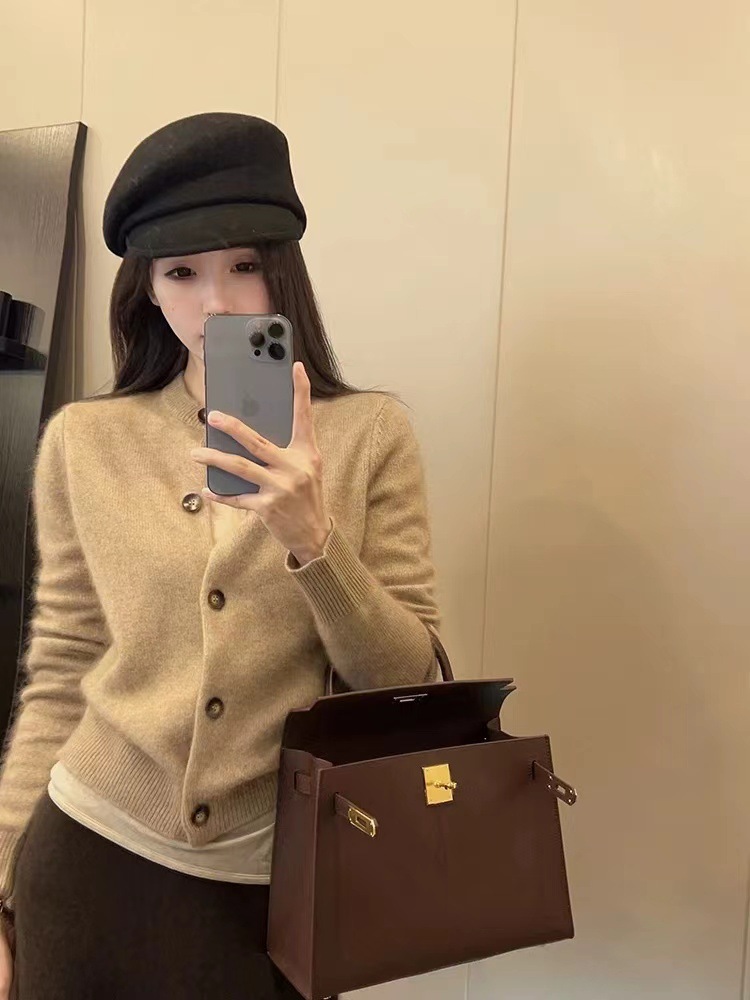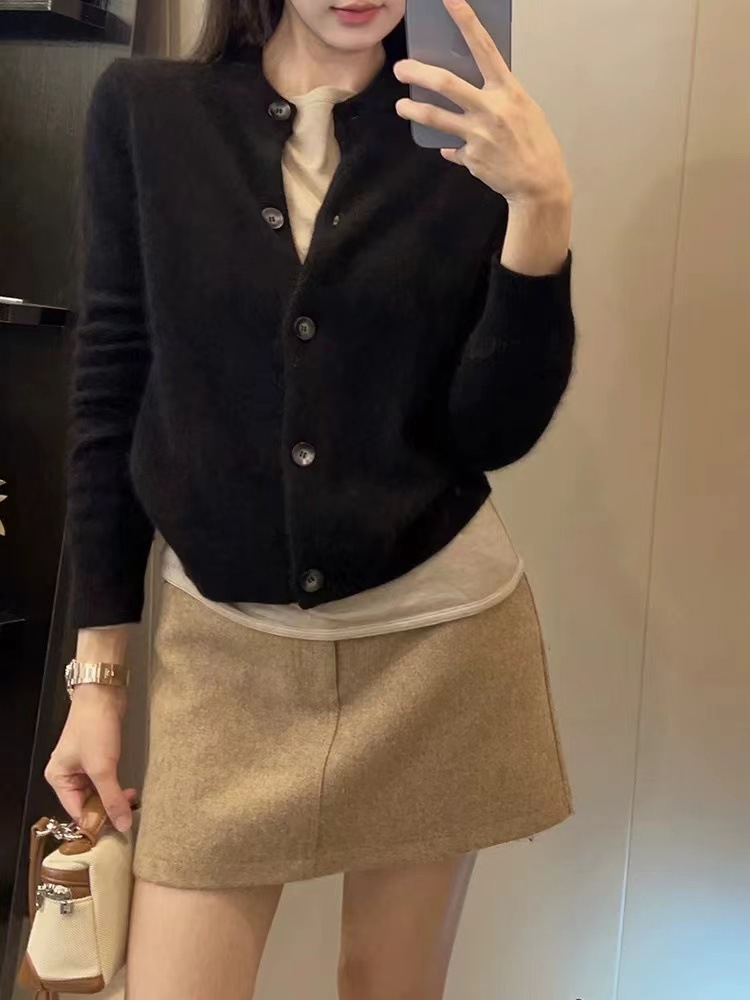 Xiaoxiangfeng 연예인 세련된 라운드 넥 짧은 울 카디건 여성 가을, 겨울 복고풍 스타일 슬림 소프트 밀랍 스웨터 얇은