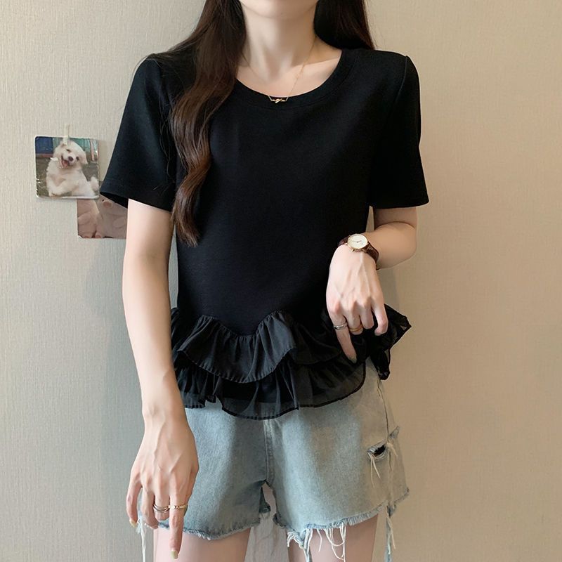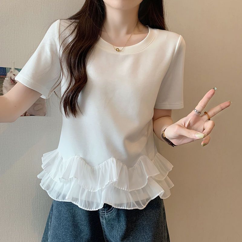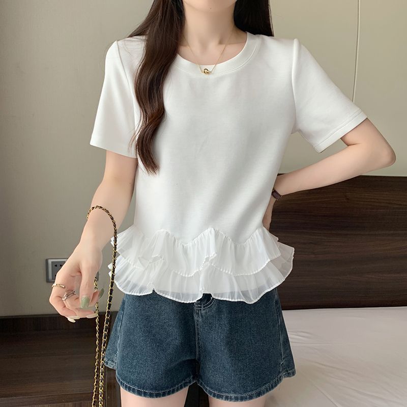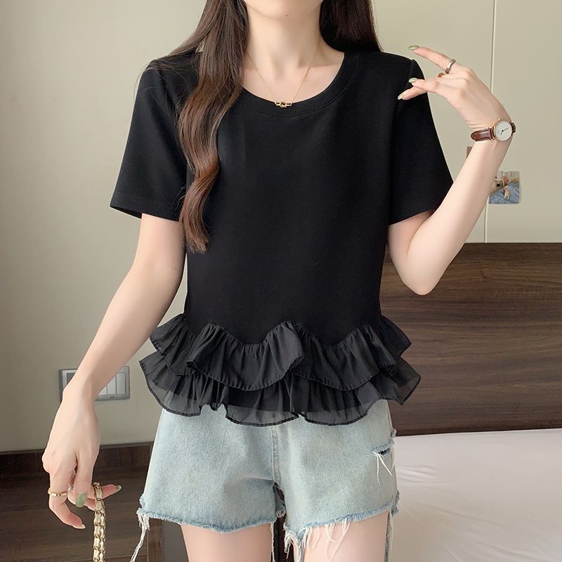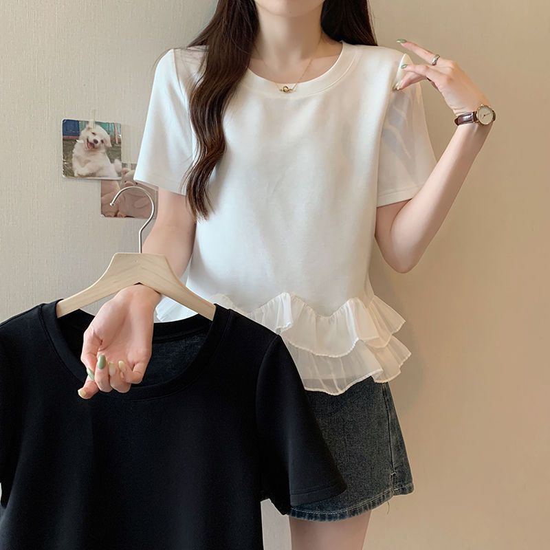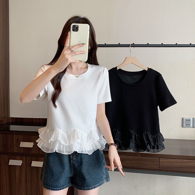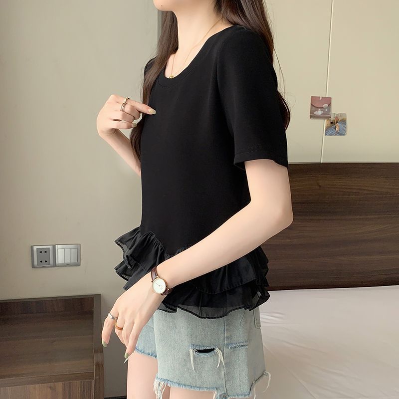 빅사이즈 여성용 러플 스티치 반팔 티셔츠 2026 여름 신상 루즈핏 슬림핏 살보정 플러스사이즈 상의