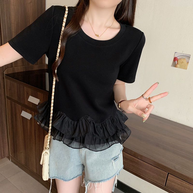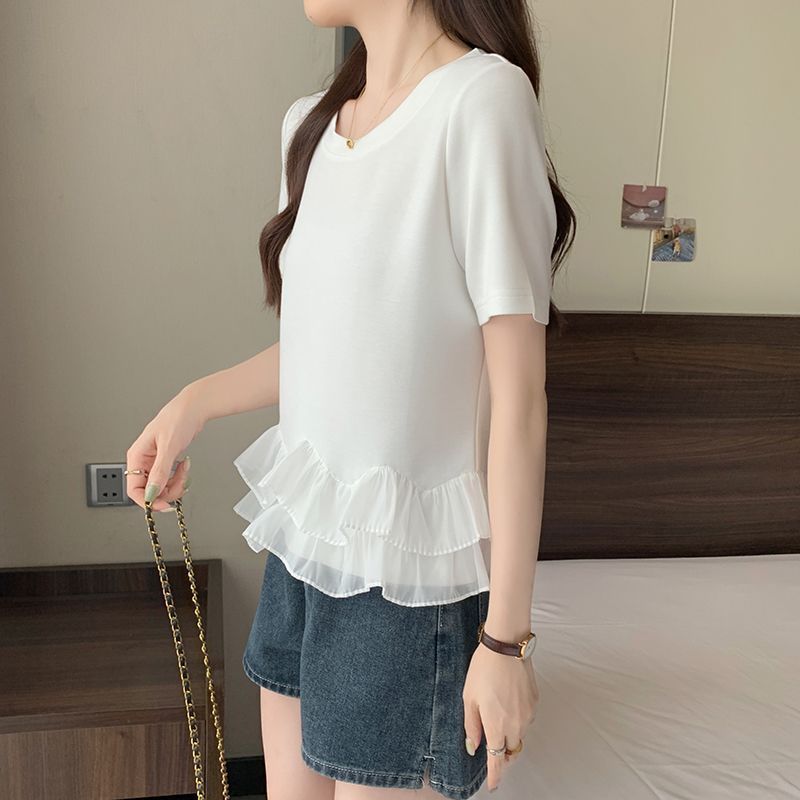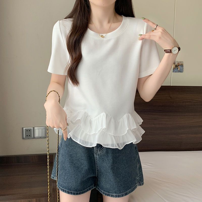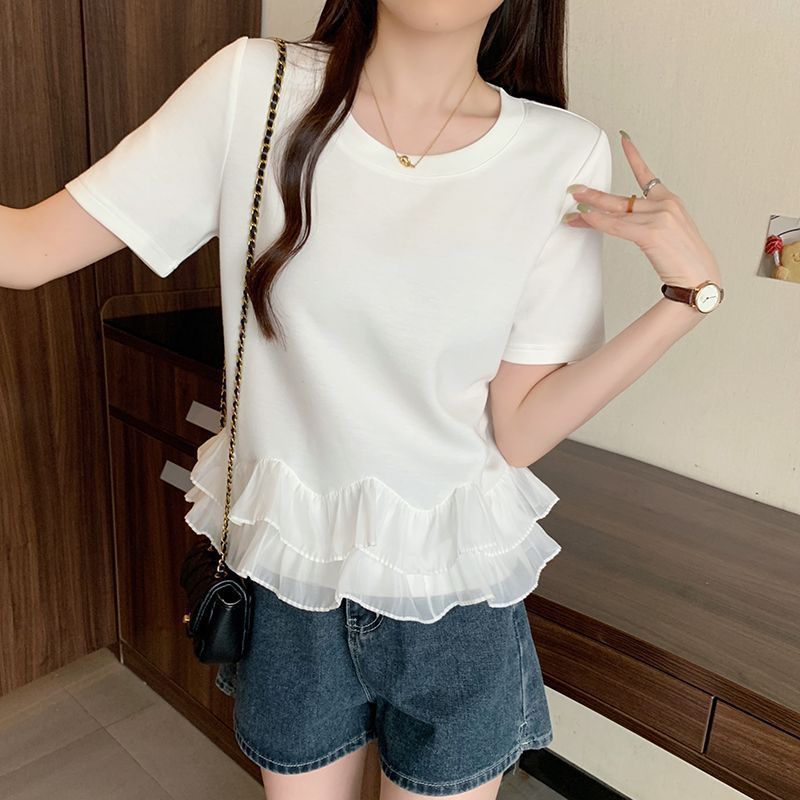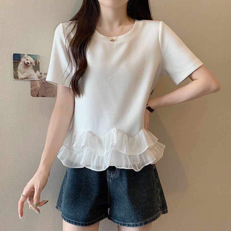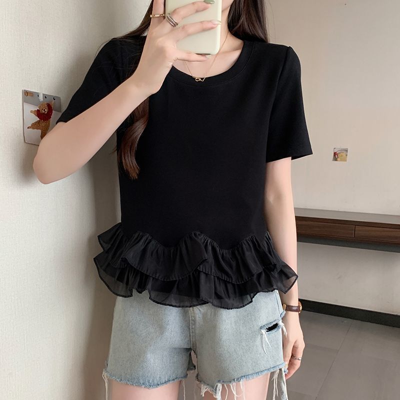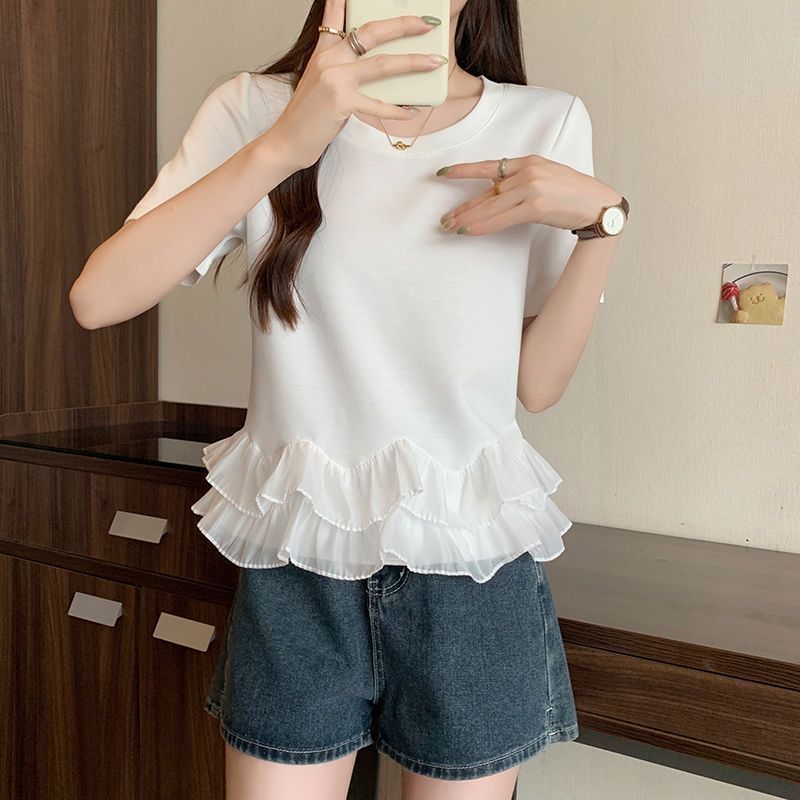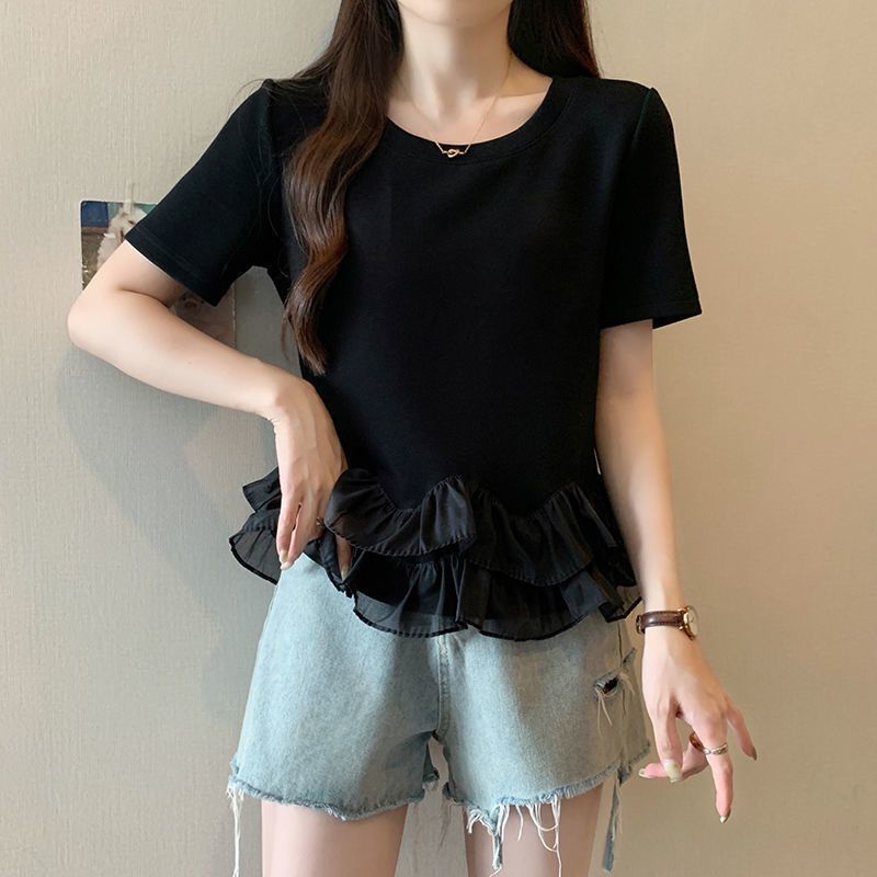 빅사이즈 여성용 러플 스티치 반팔 티셔츠 2026 여름 신상 루즈핏 슬림핏 살보정 플러스사이즈 상의