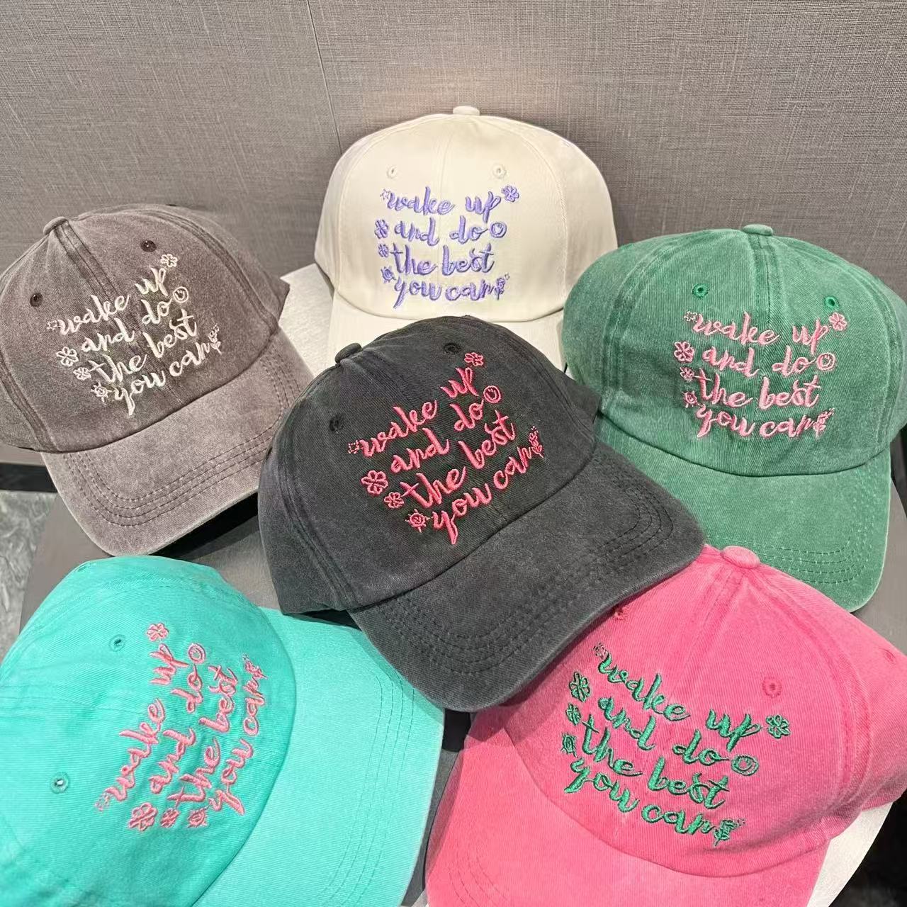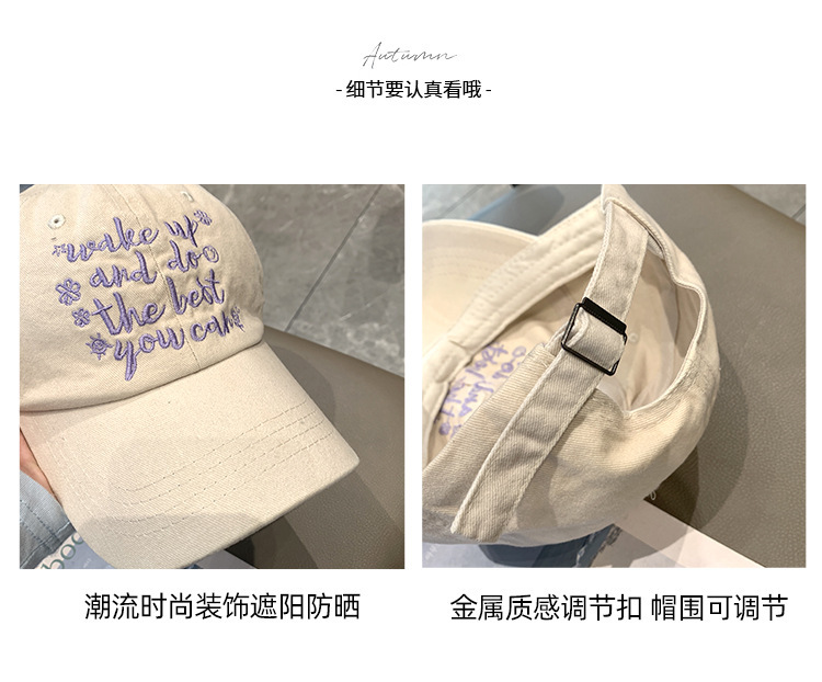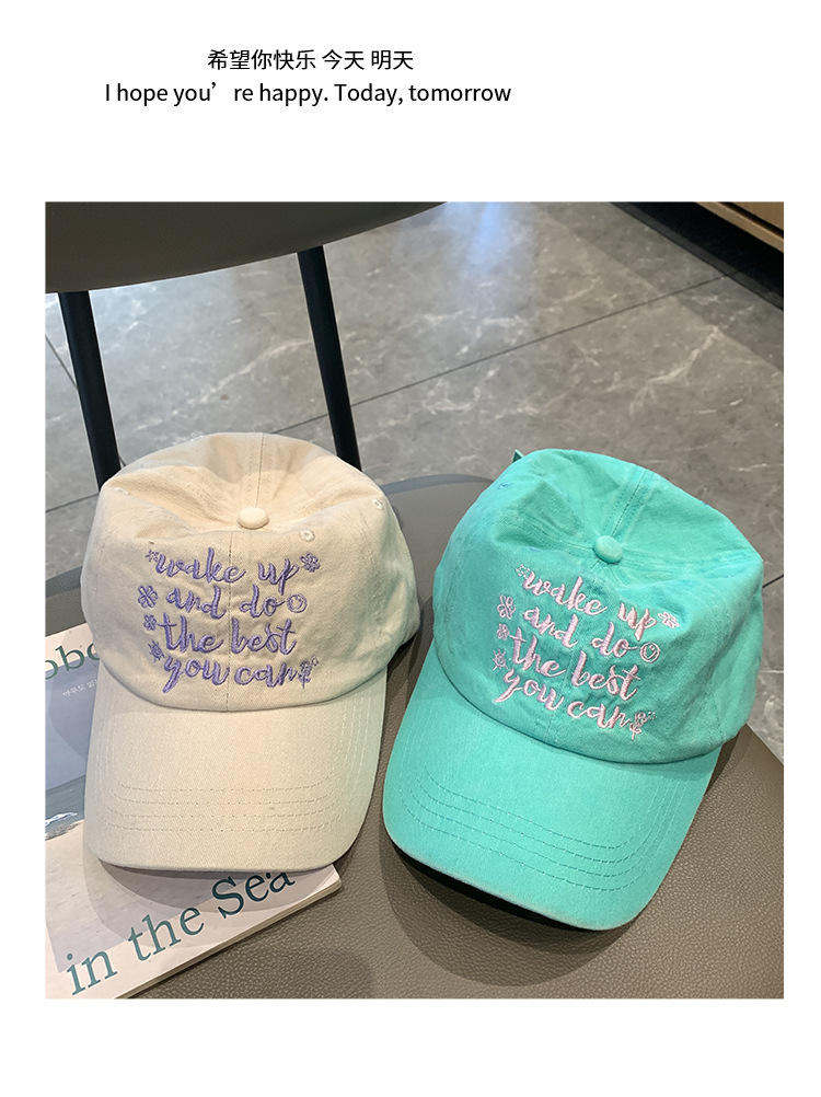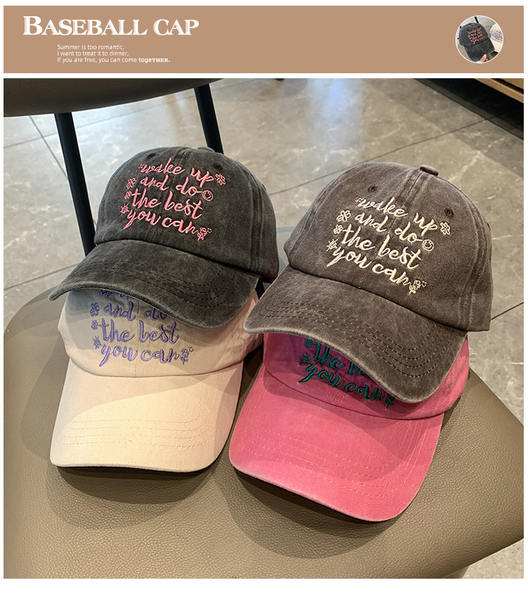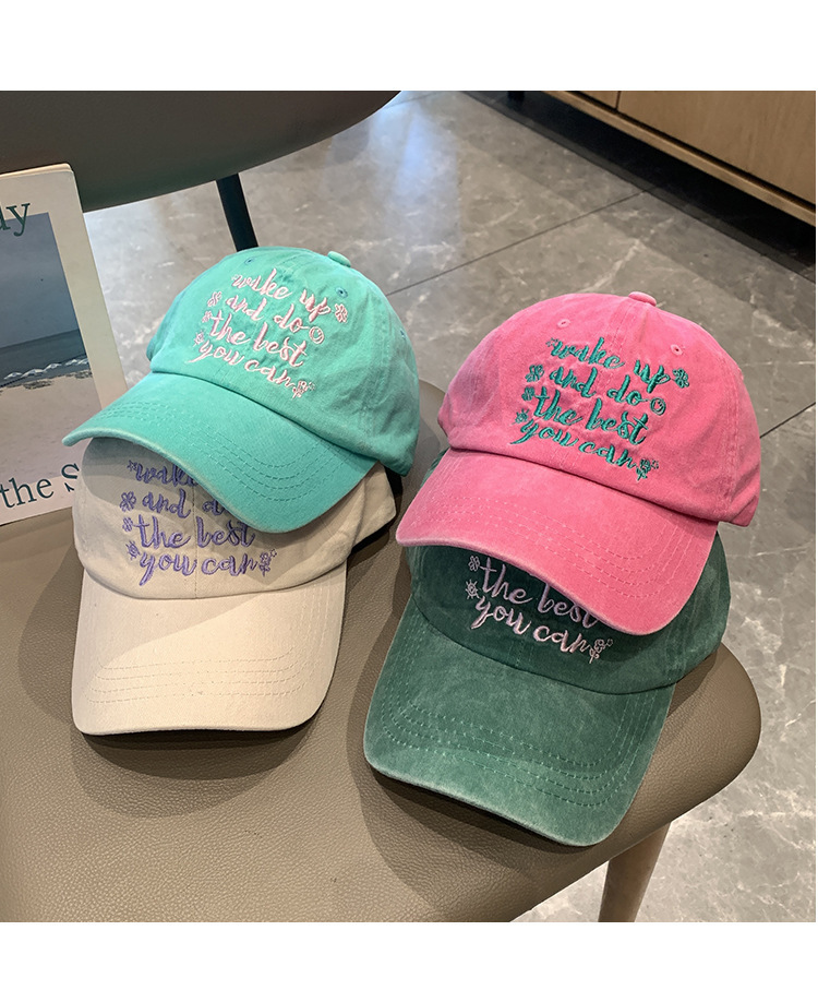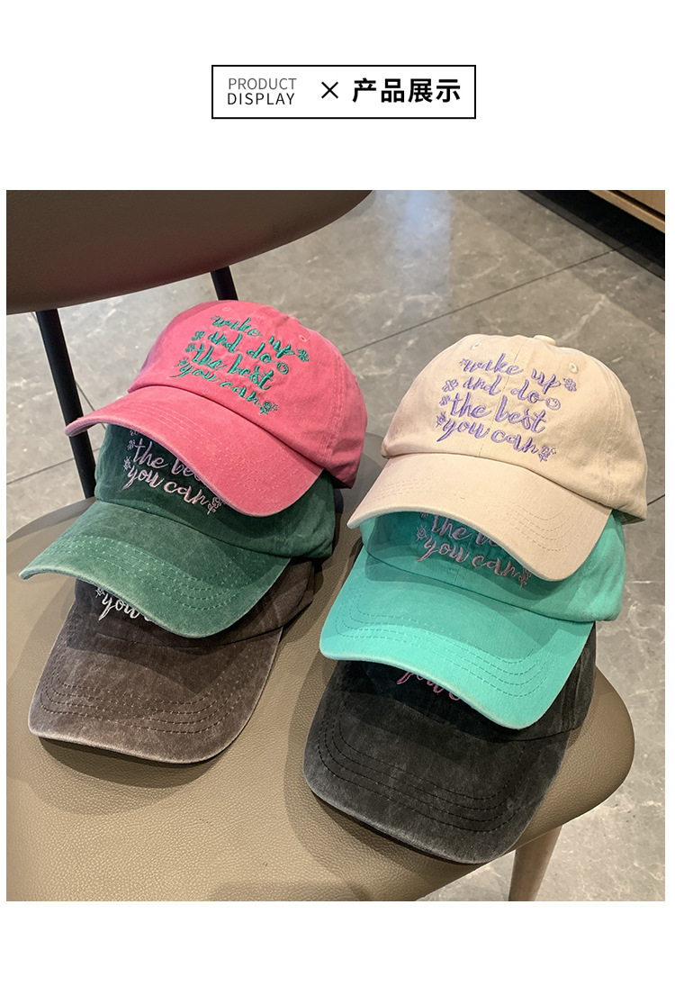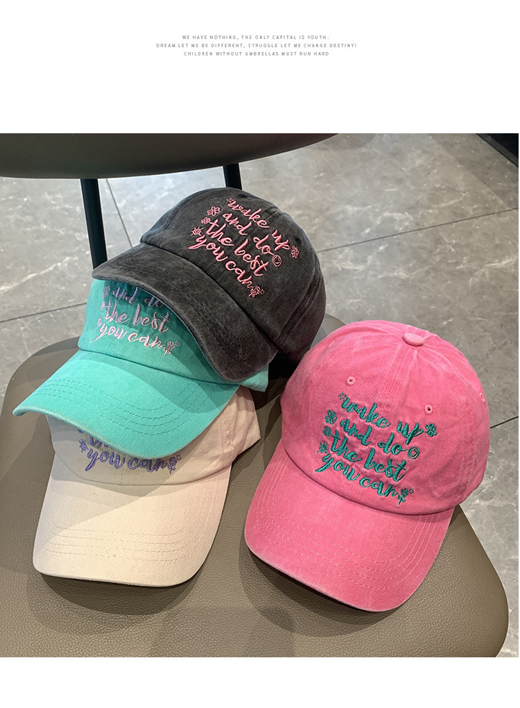 跨境水洗字母刺绣棒球帽网红ins显脸小街头鸭舌帽女防晒遮阳帽子