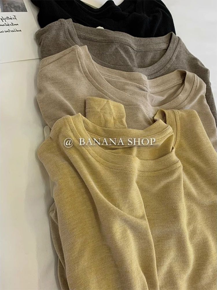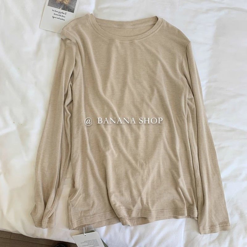 가을 겨울 신상품 리오셀 텐셀 울 라운드 넥 긴팔 티셔츠 신상 기본 다용도 솔리드 컬러 니트 바닥 셔츠