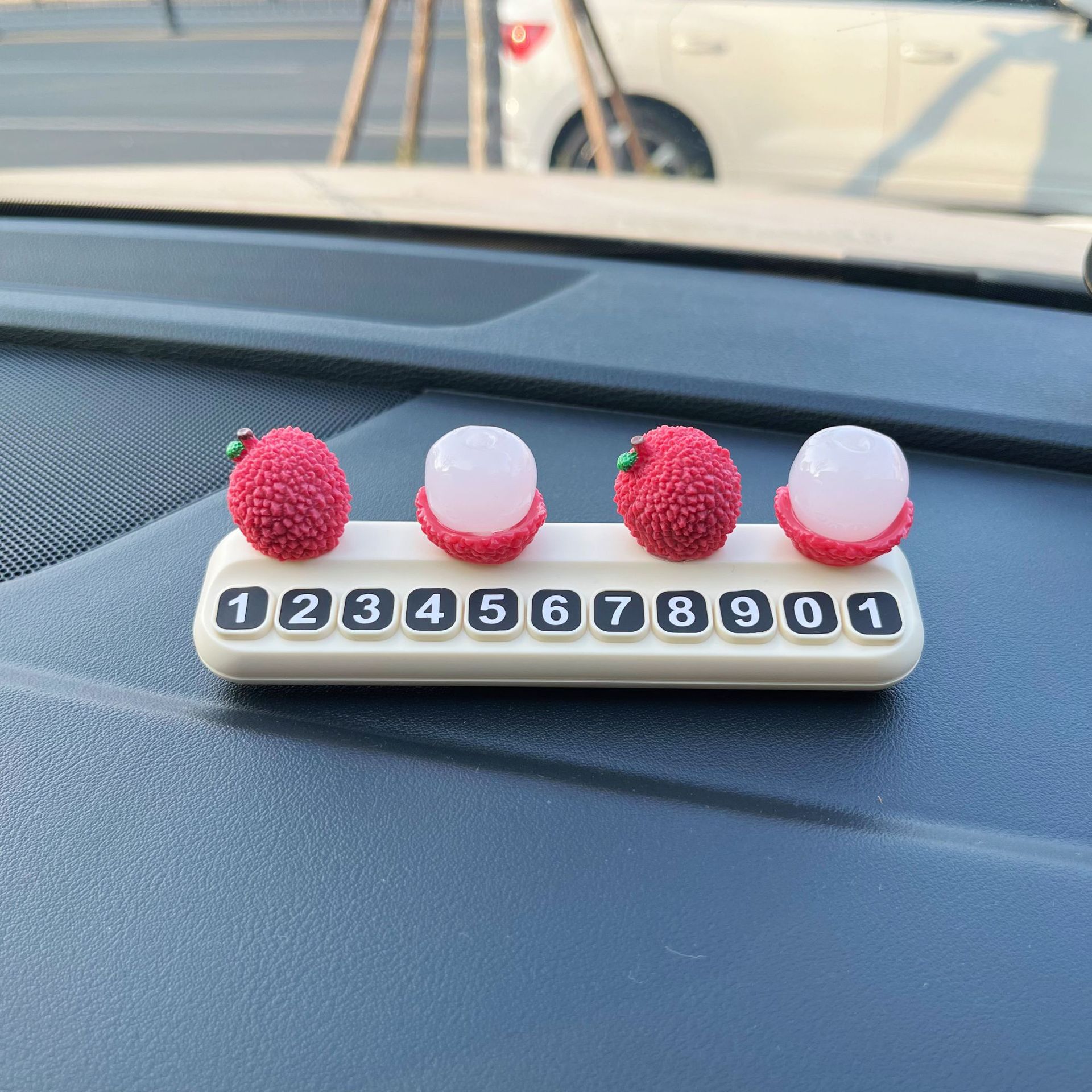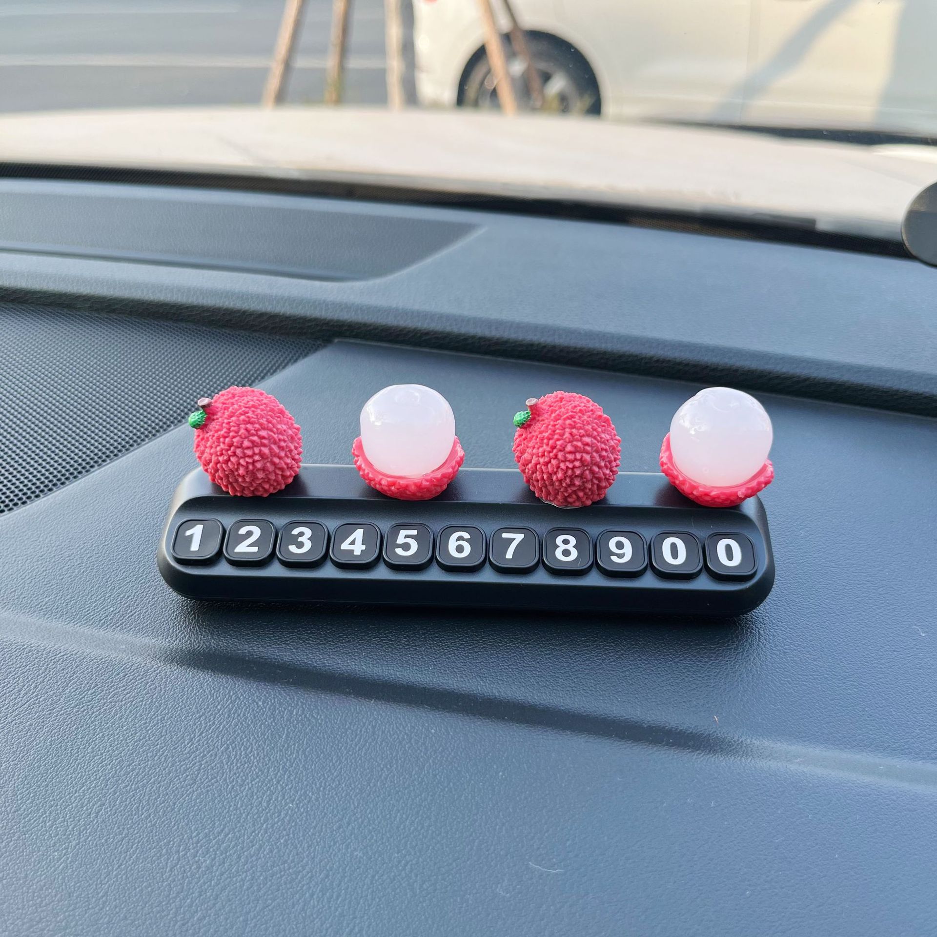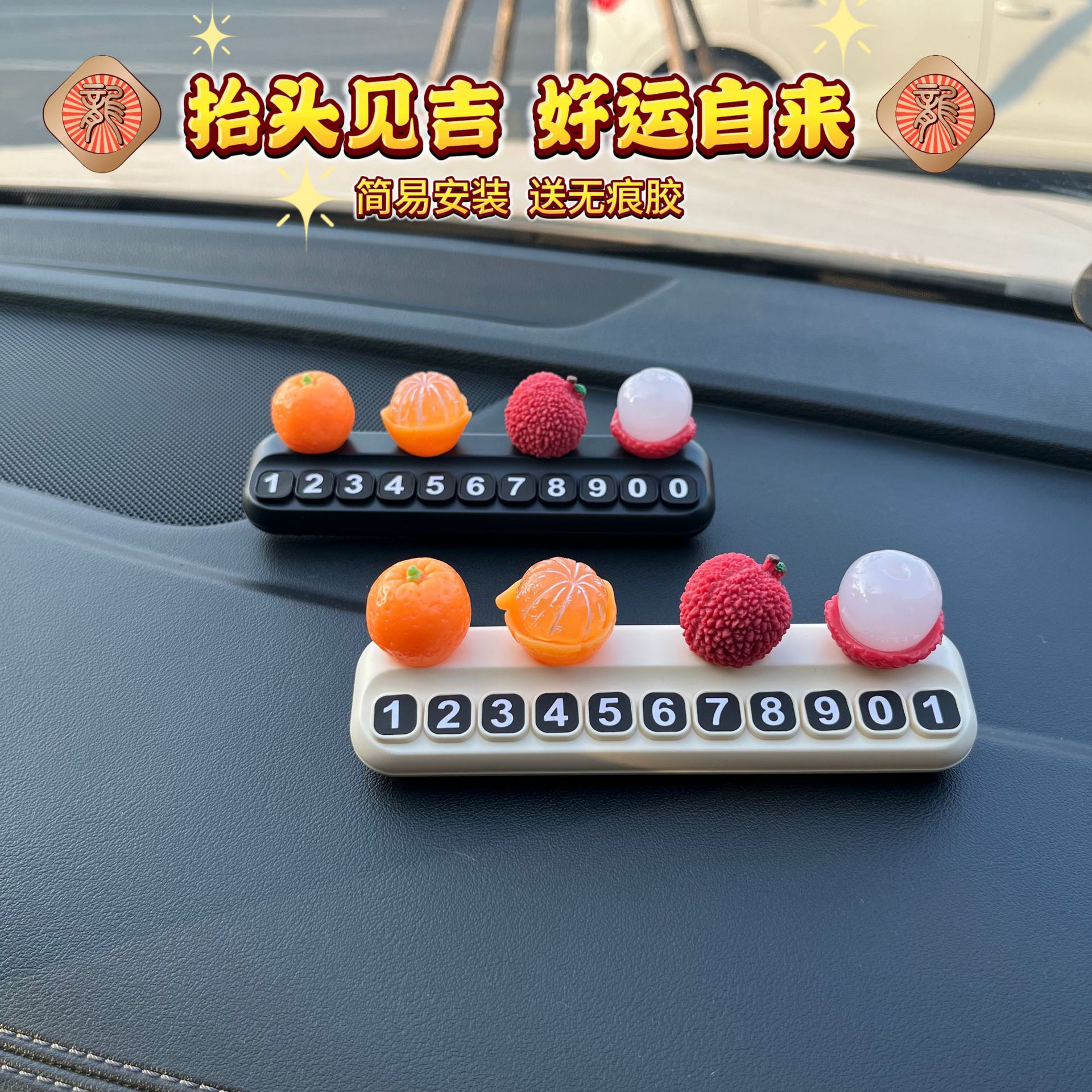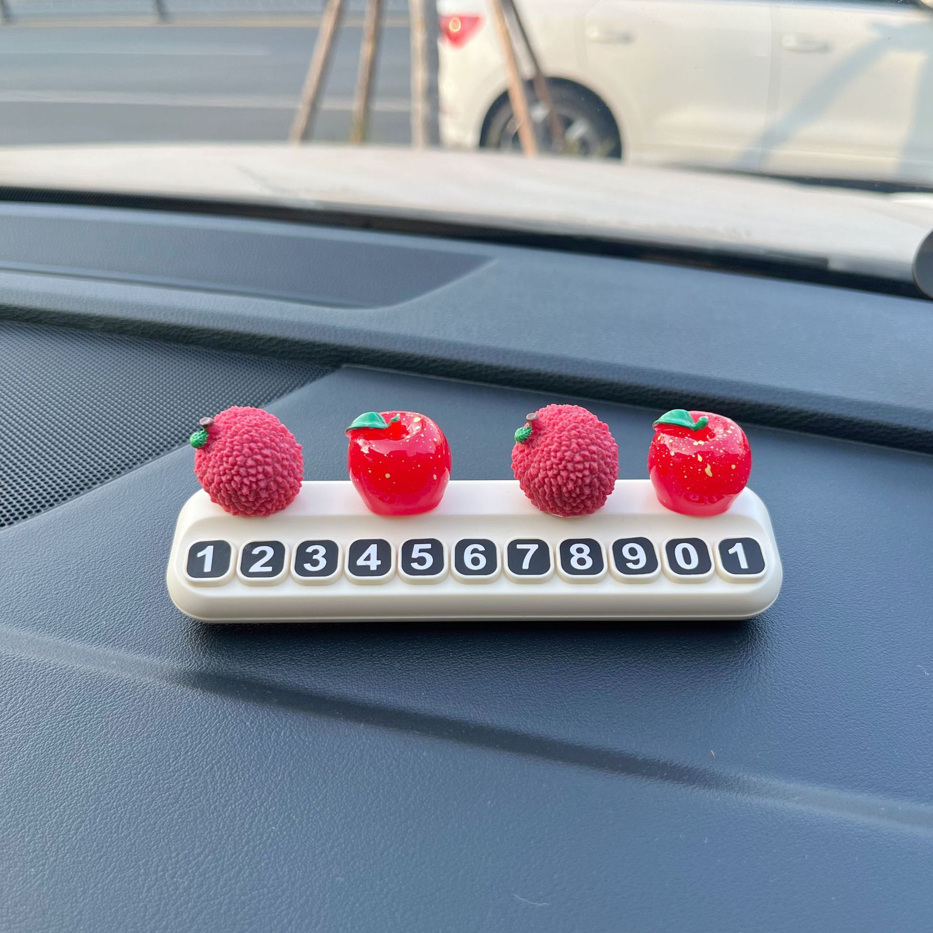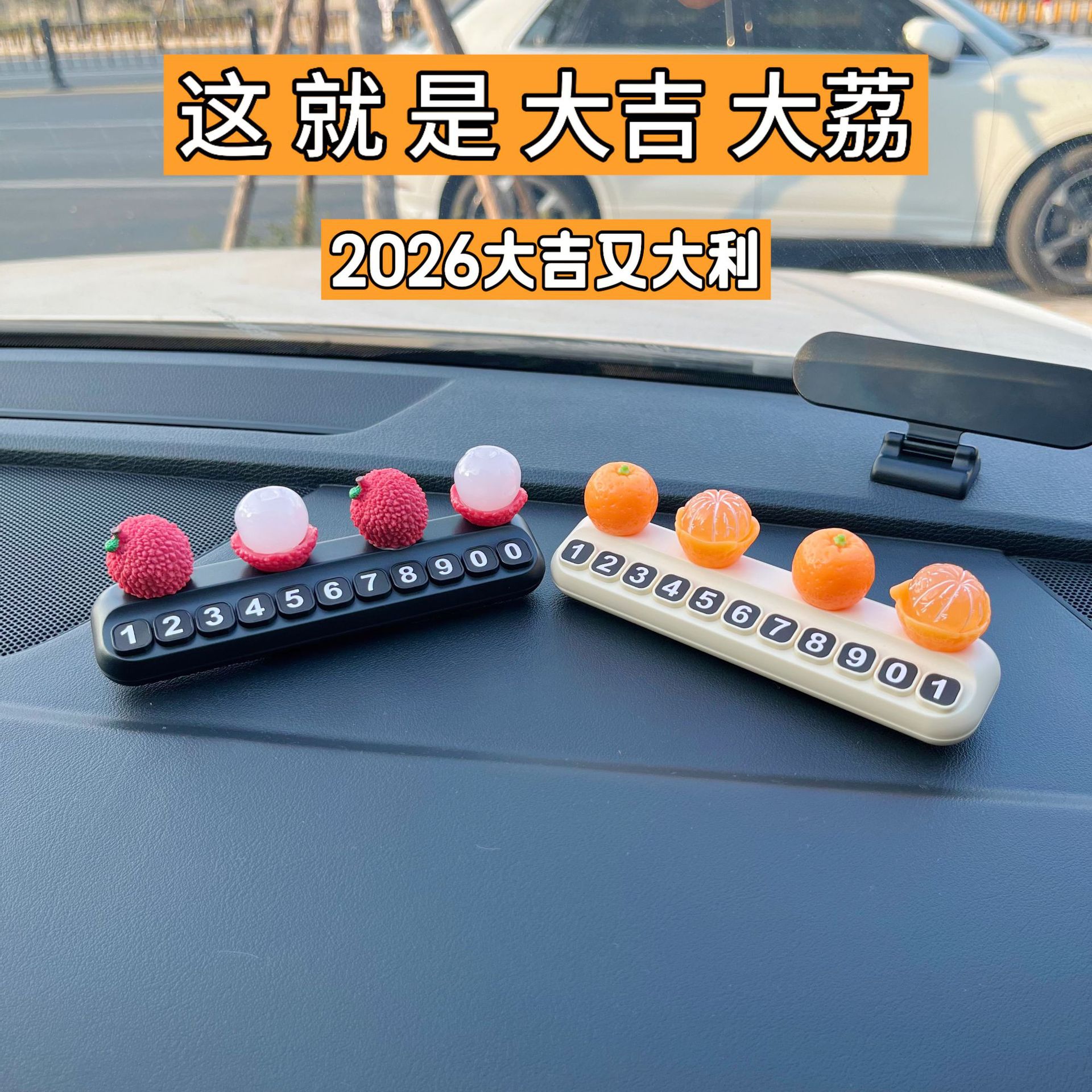 挪车电话牌大吉大利荔枝水果临时停车号码牌车载创意汽车装饰摆件
