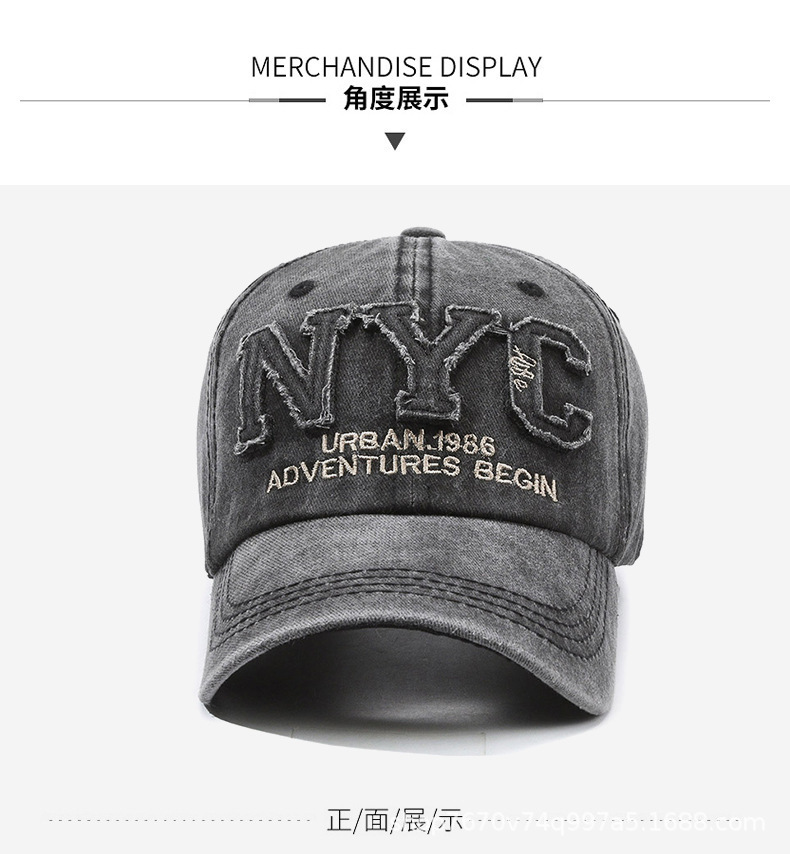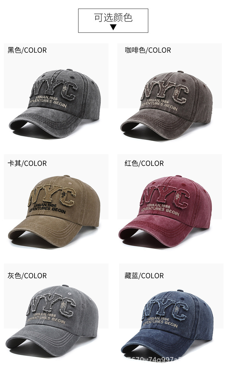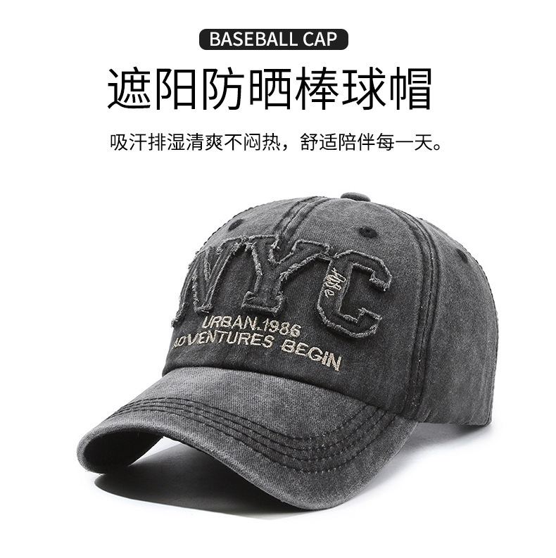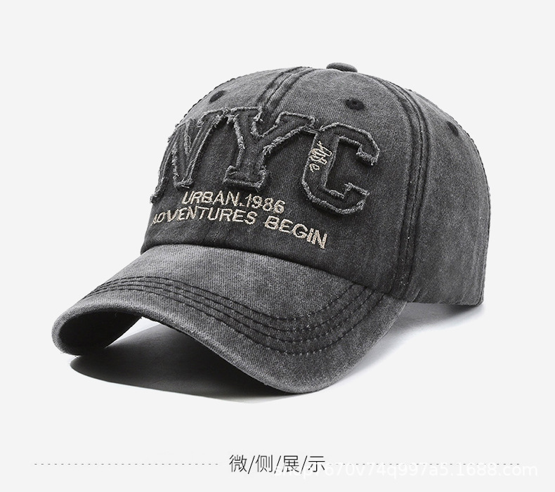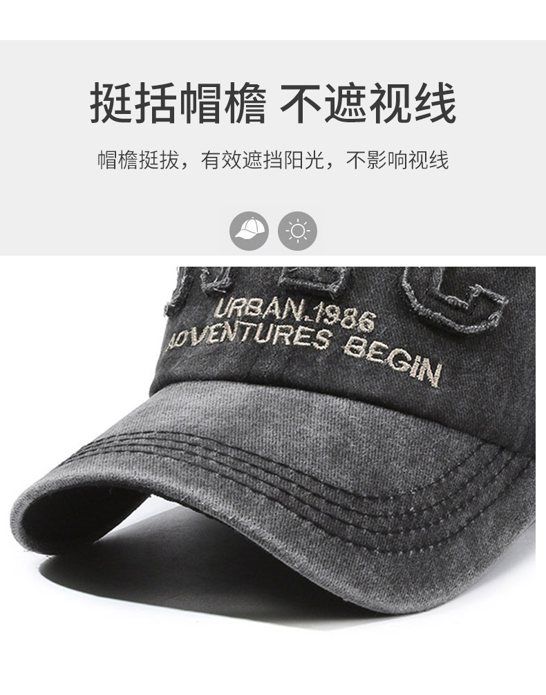帽子男水洗牛仔棒球帽显脸小大帽檐复古鸭舌帽女运动休闲钓鱼帽子
