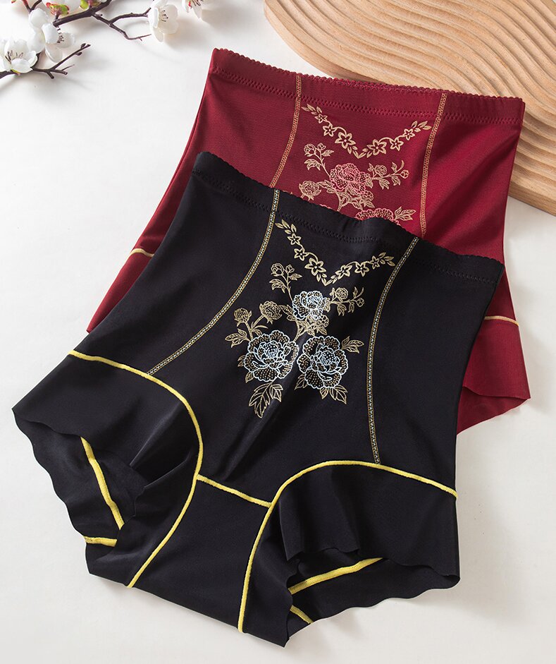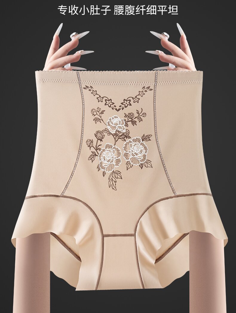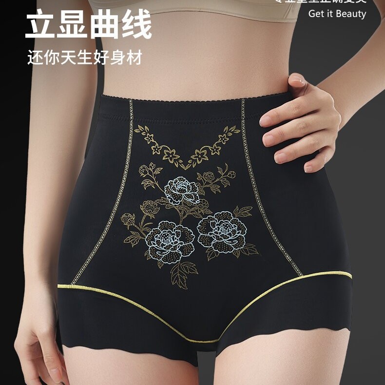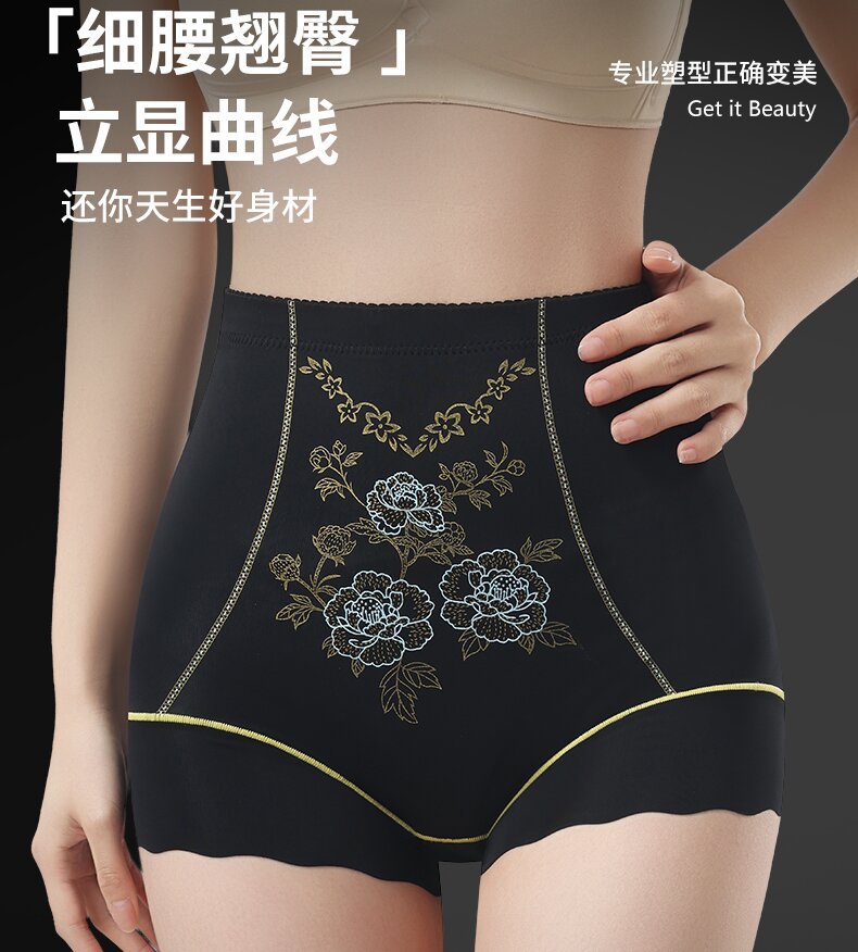 直播新款大码无痕高腰提臀收腹裤绣花雕透气塑形塑身美体安全内裤