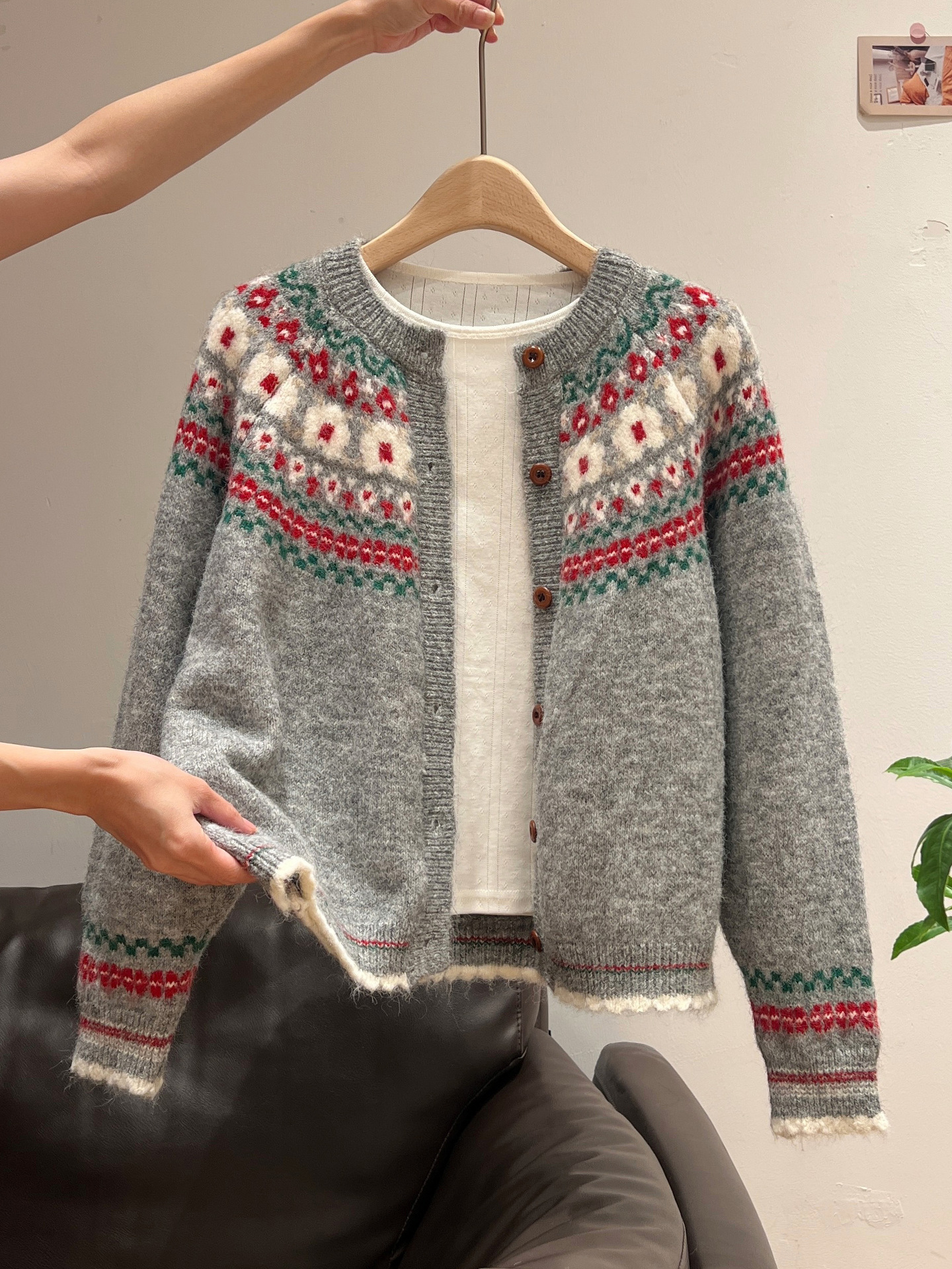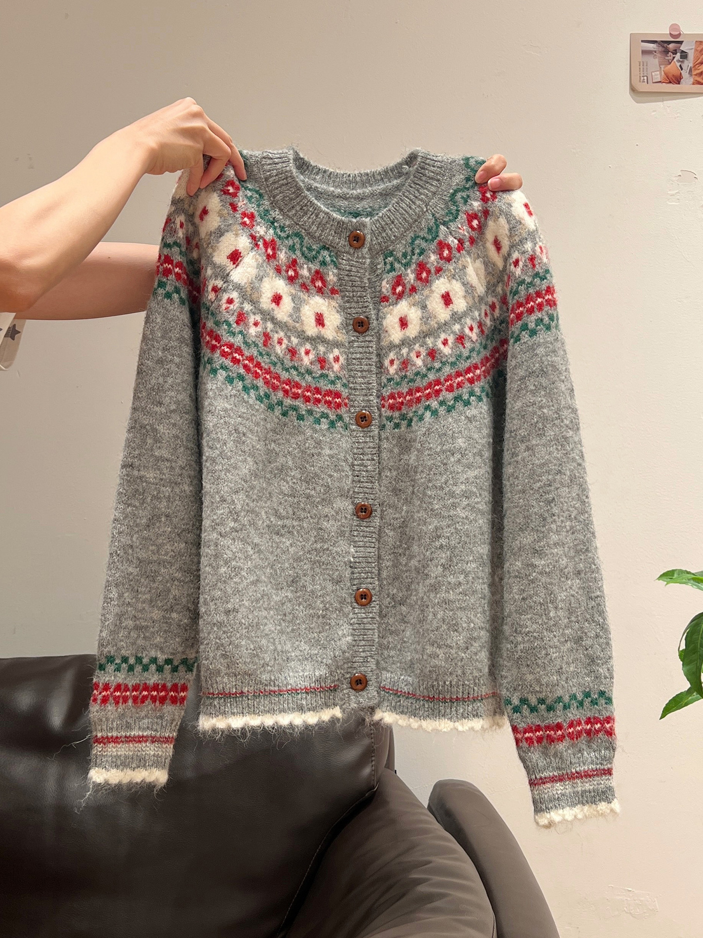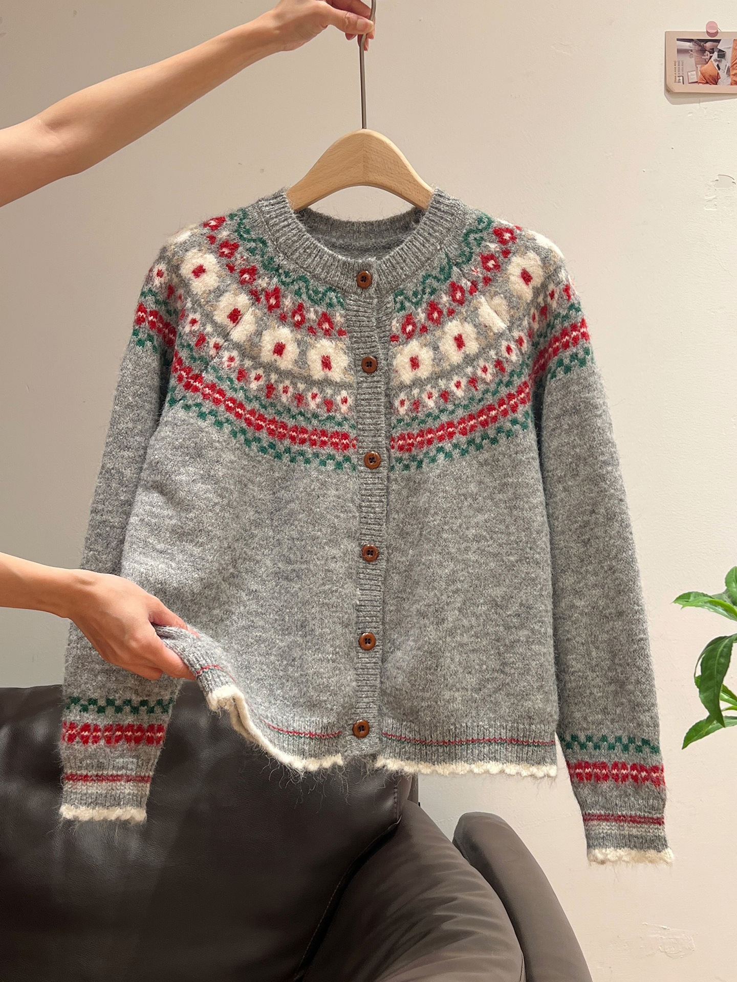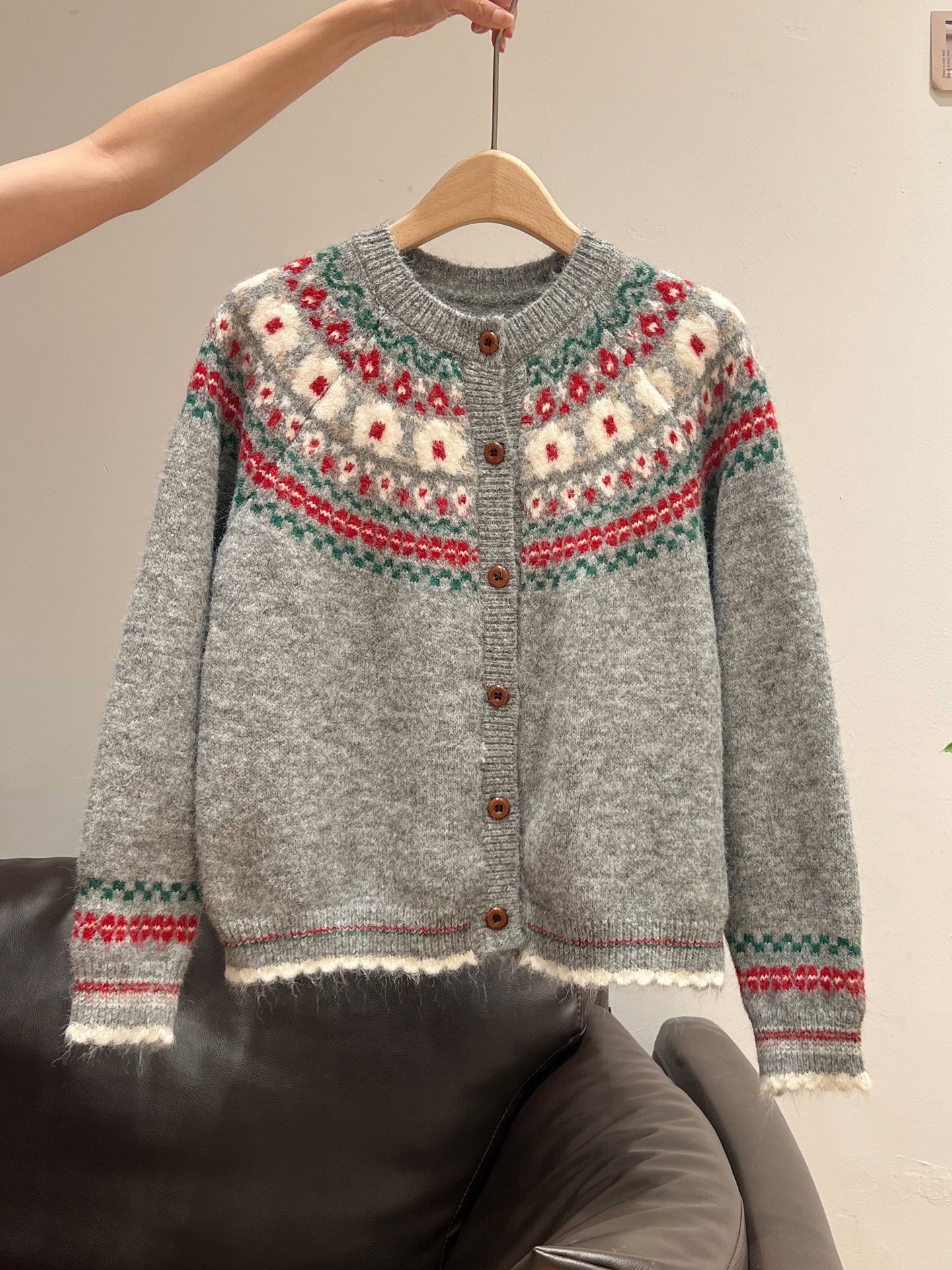 官图仿羊绒针织设计感开衫外套潮上衣女秋冬提花圆领保暖毛衣