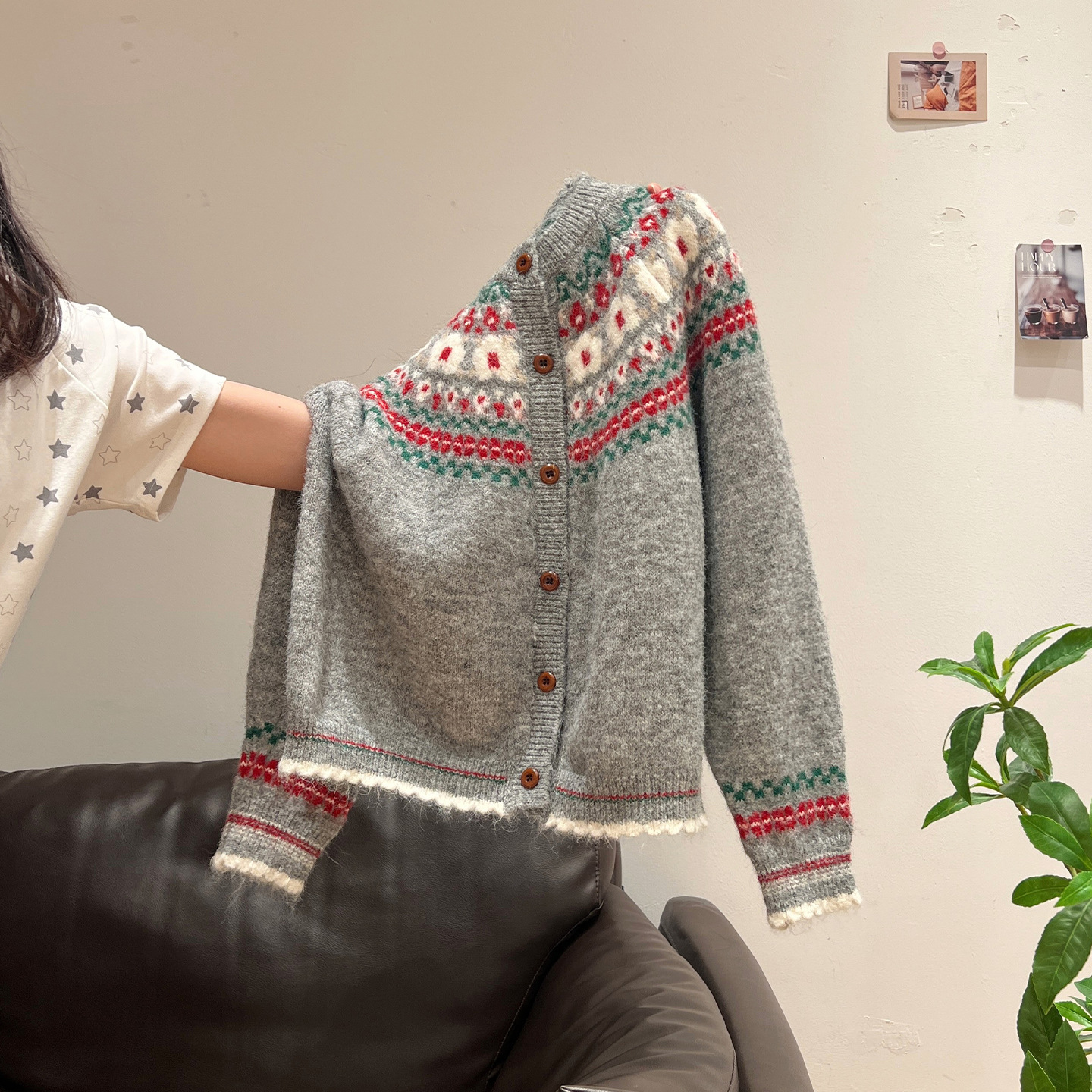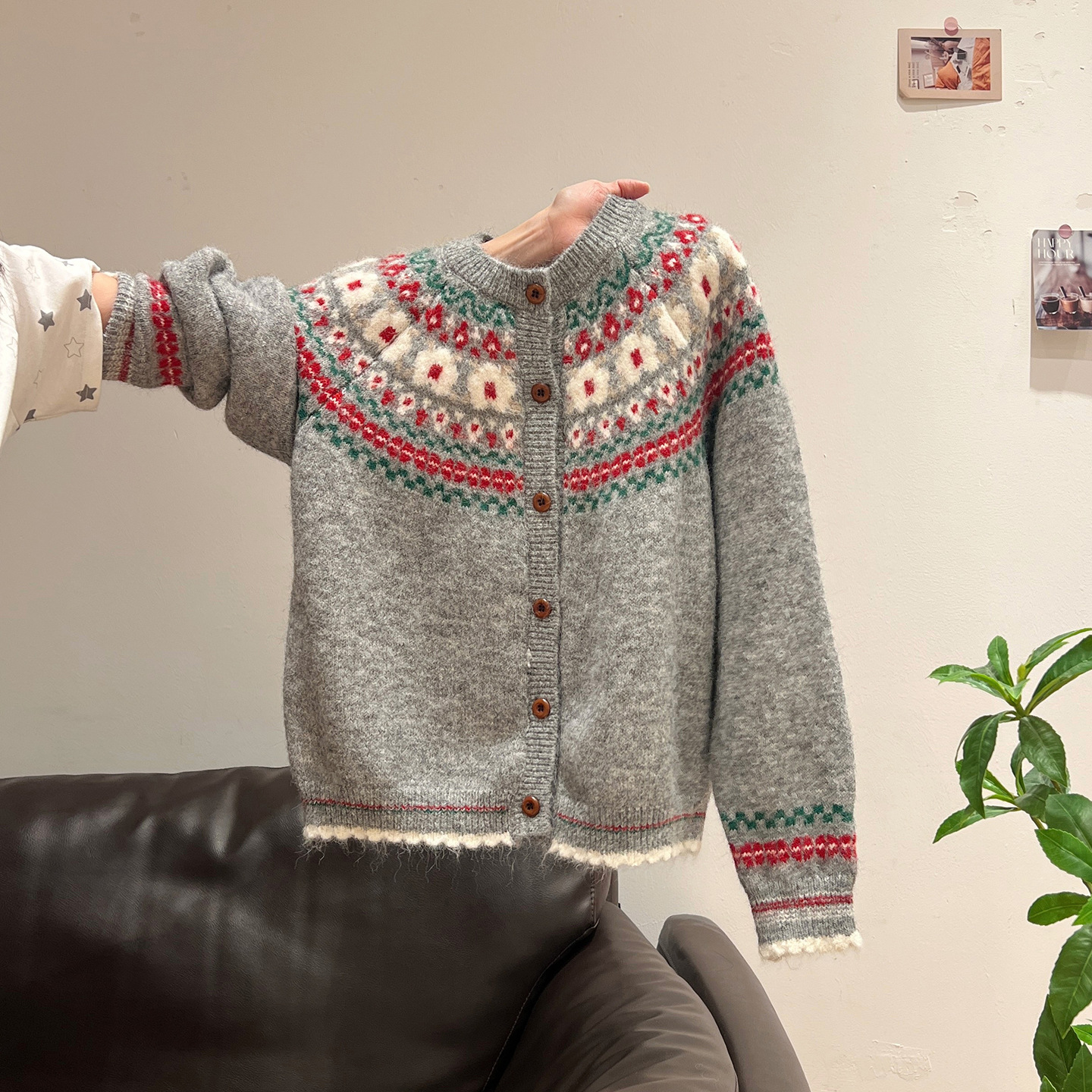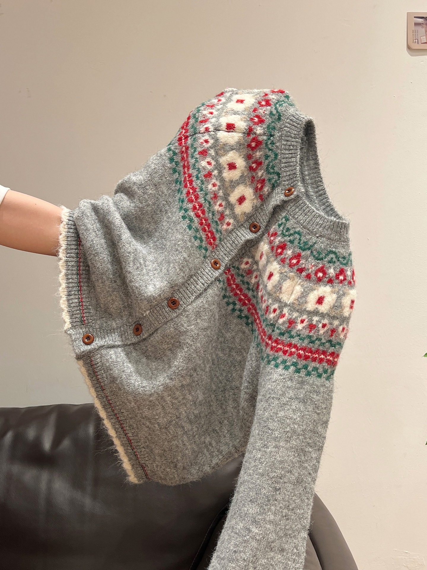 官图仿羊绒针织设计感开衫外套潮上衣女秋冬提花圆领保暖毛衣