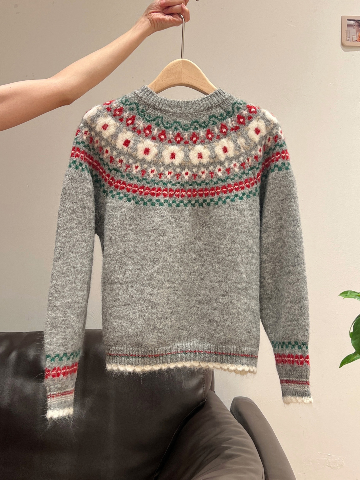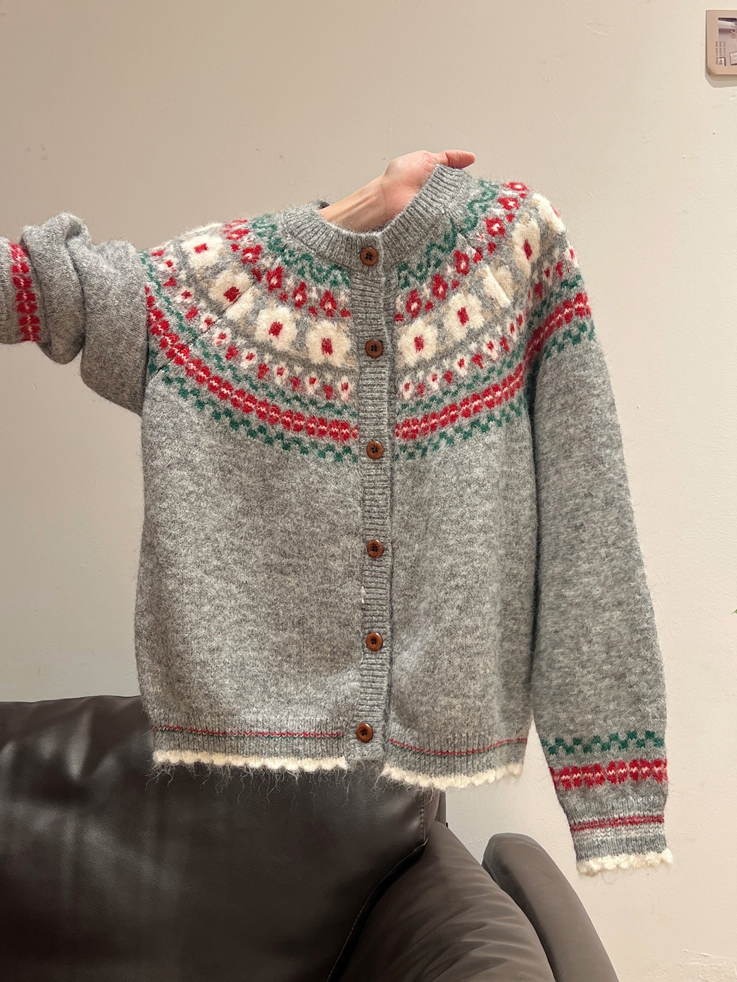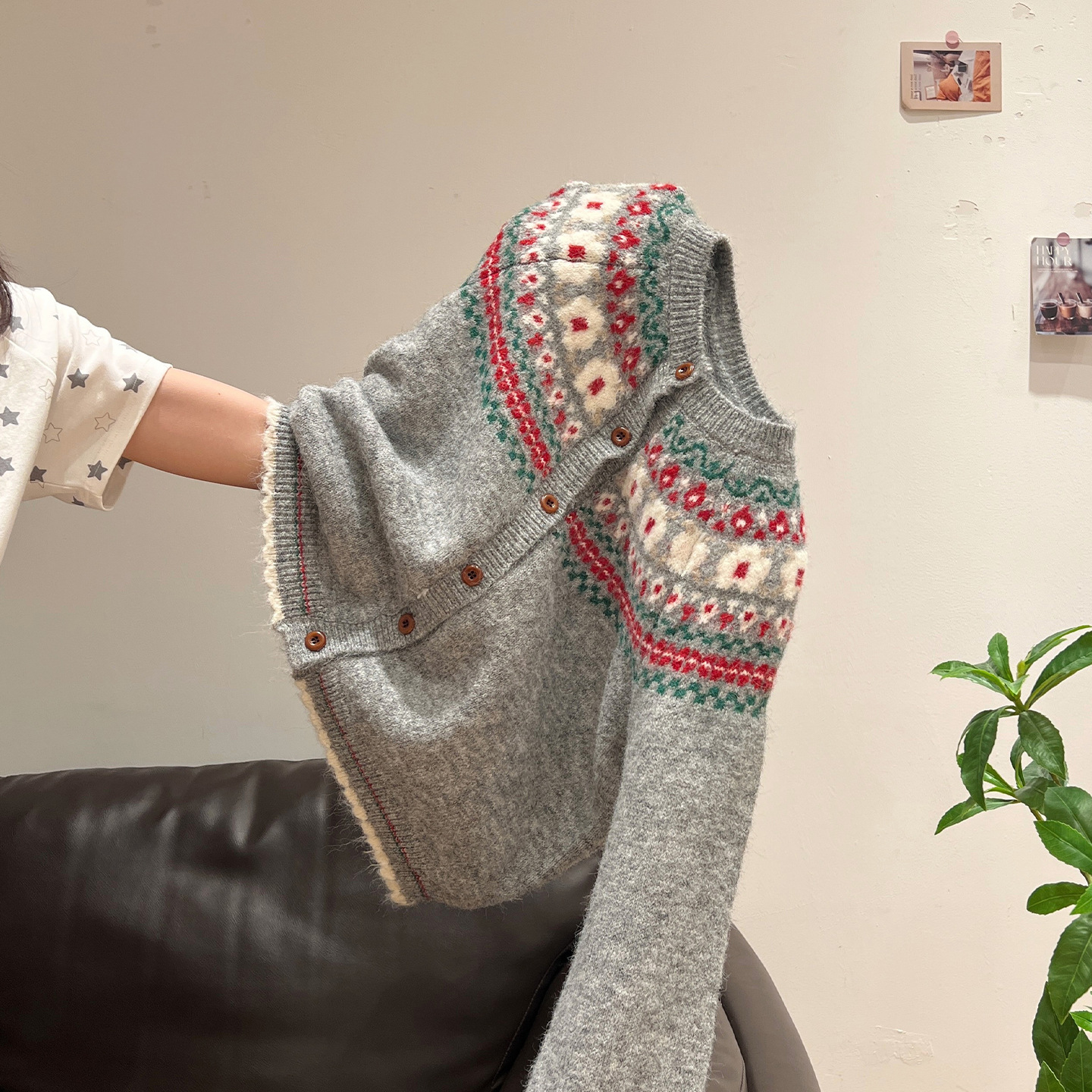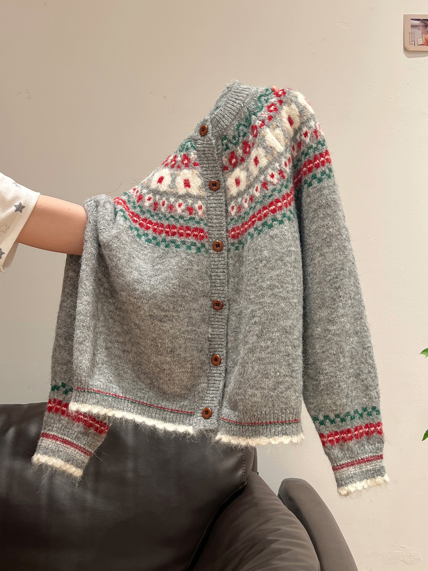官图仿羊绒针织设计感开衫外套潮上衣女秋冬提花圆领保暖毛衣