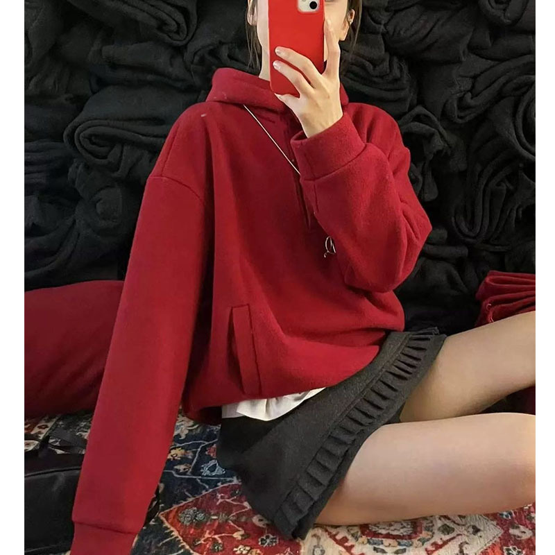 连帽羊绒长袖卫衣女2025秋冬新款韩版时尚氛围感洋气百搭加厚上衣