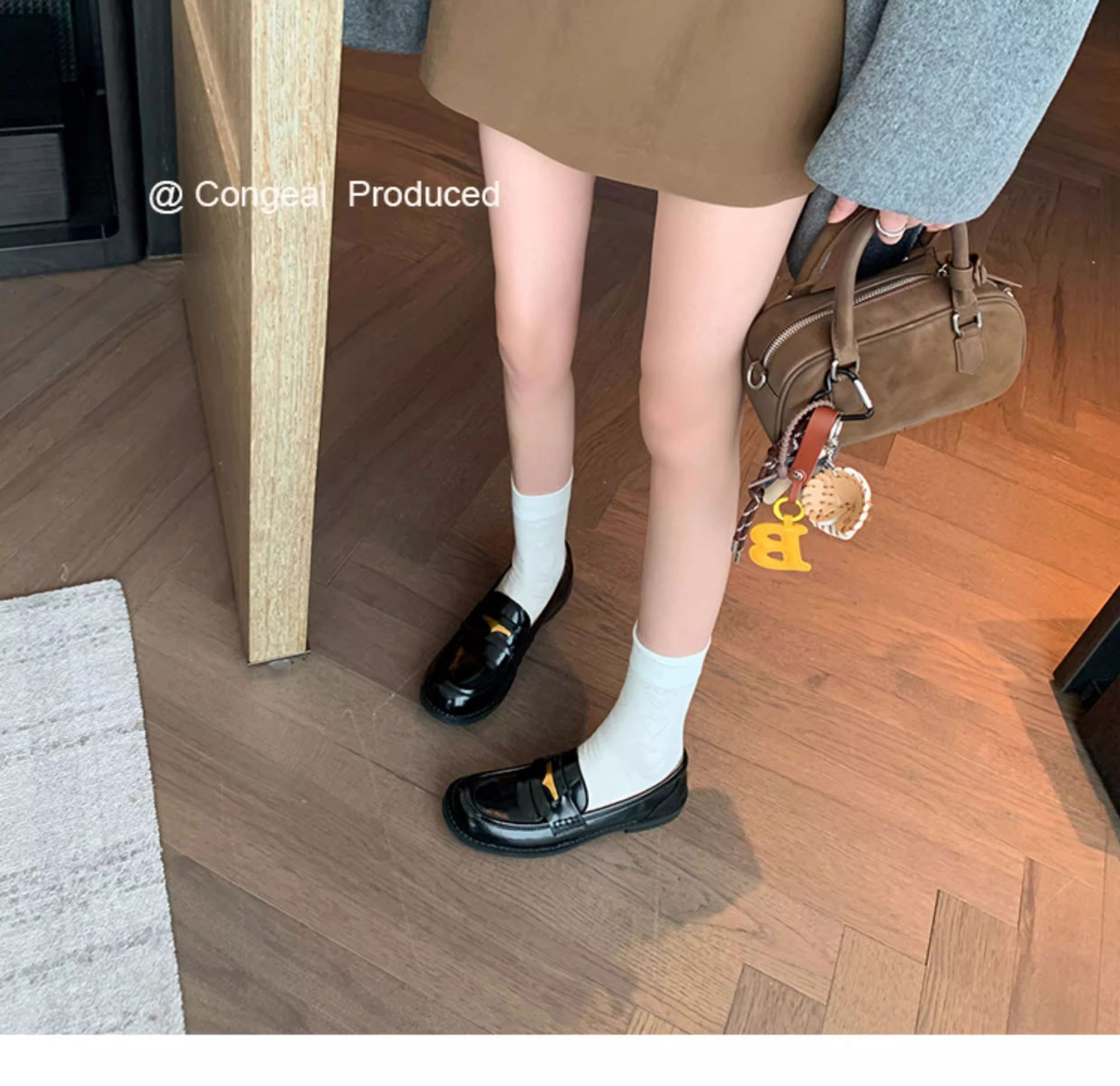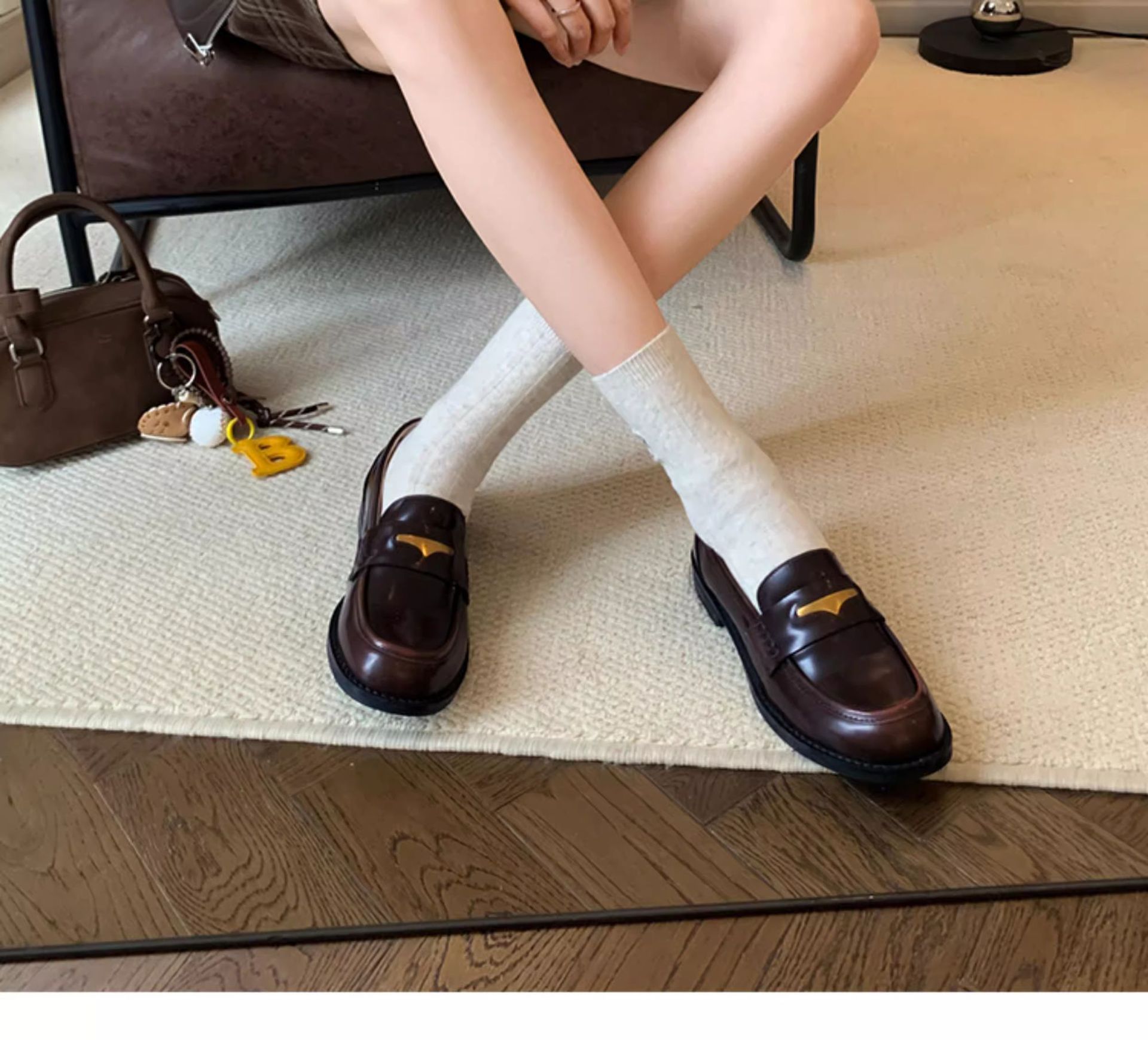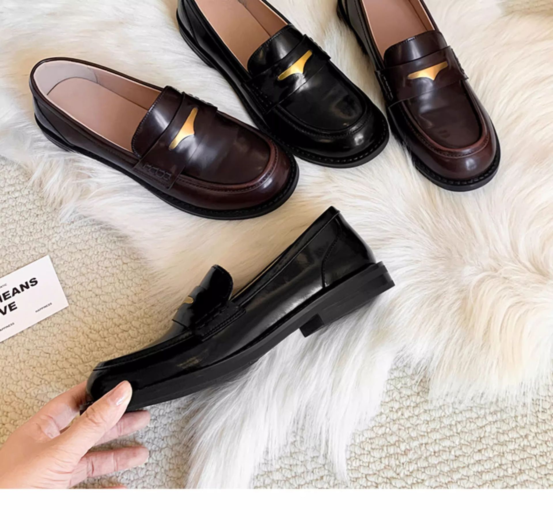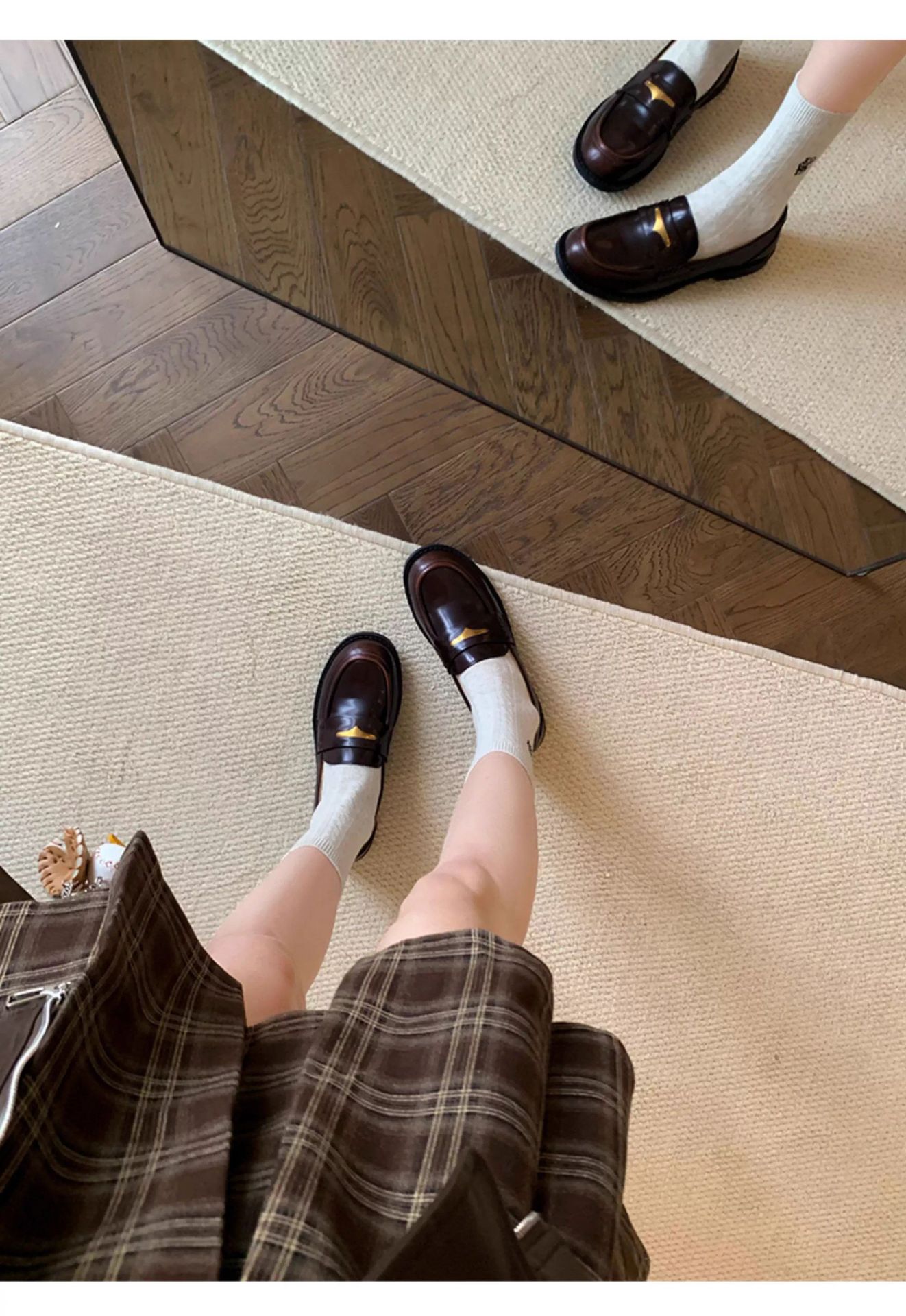 复古圆头擦色乐福鞋女厚底2025新款一脚蹬粗跟单鞋百搭英伦小皮鞋