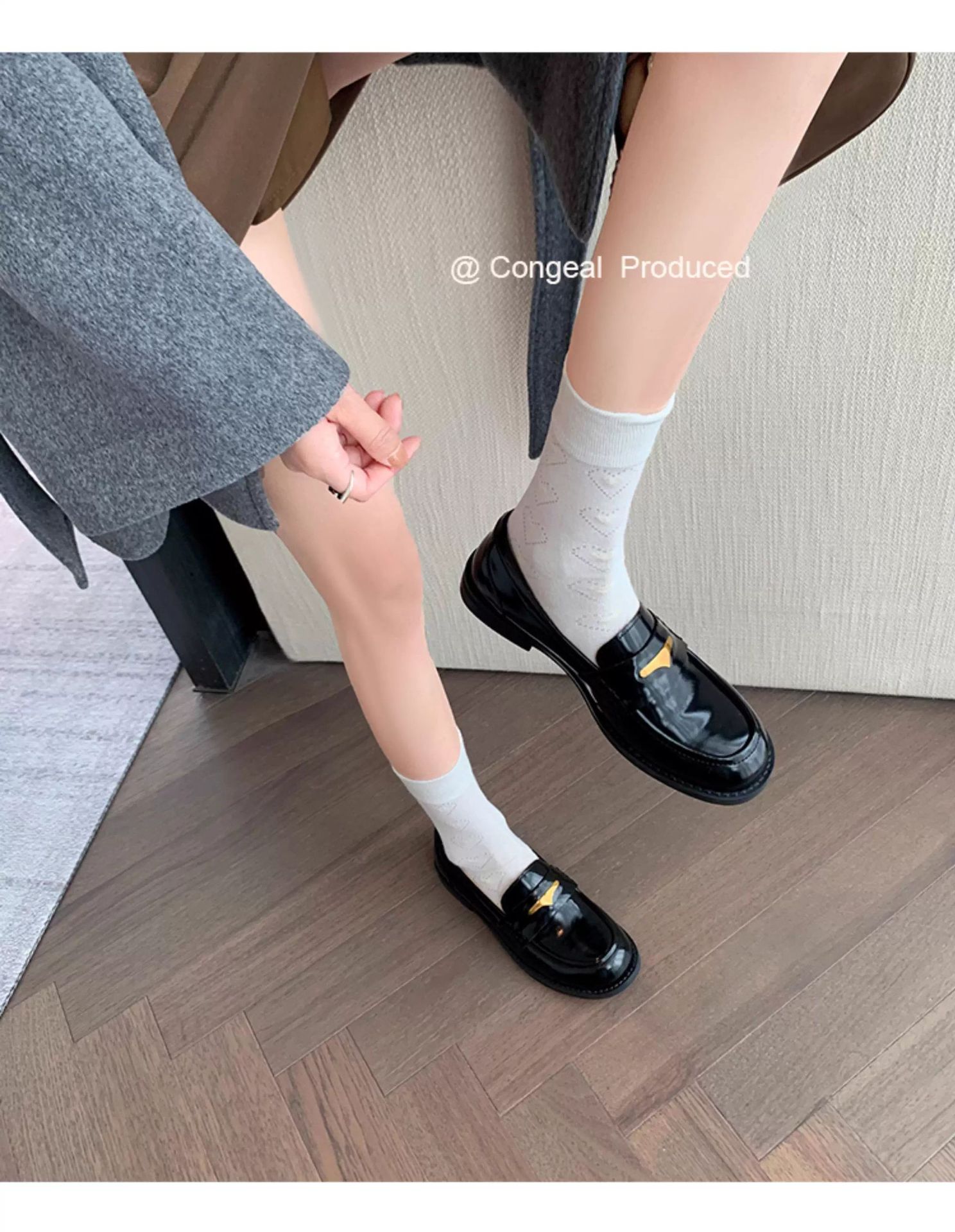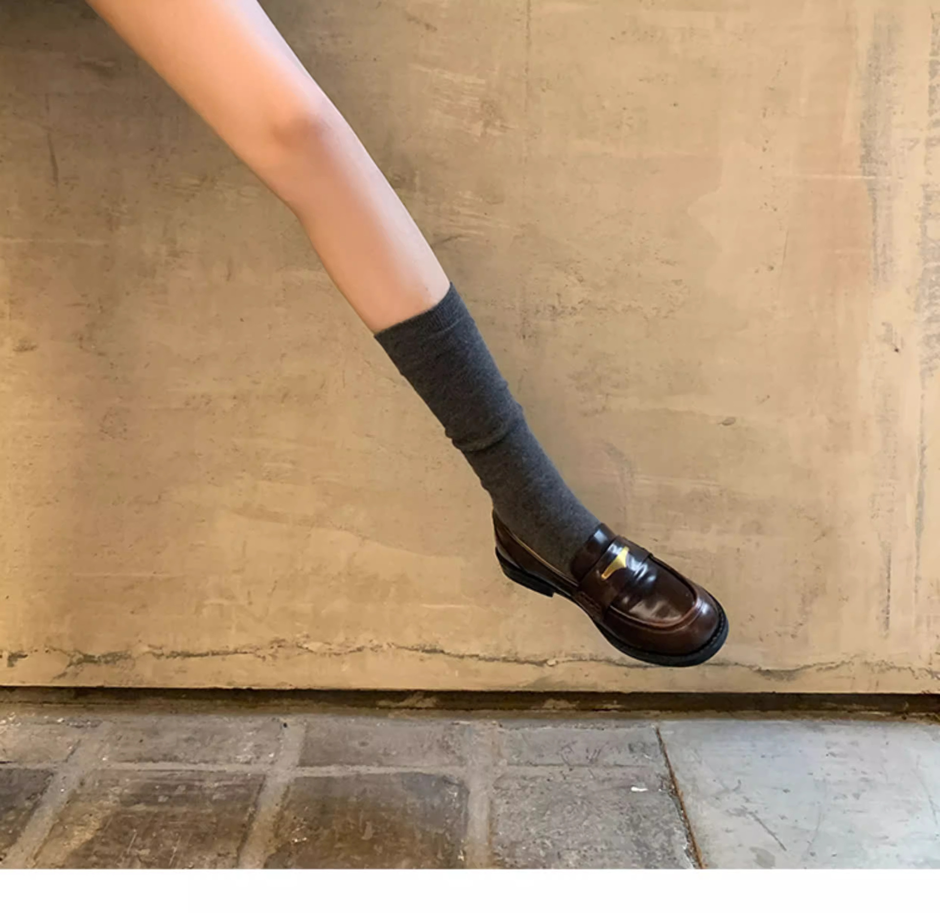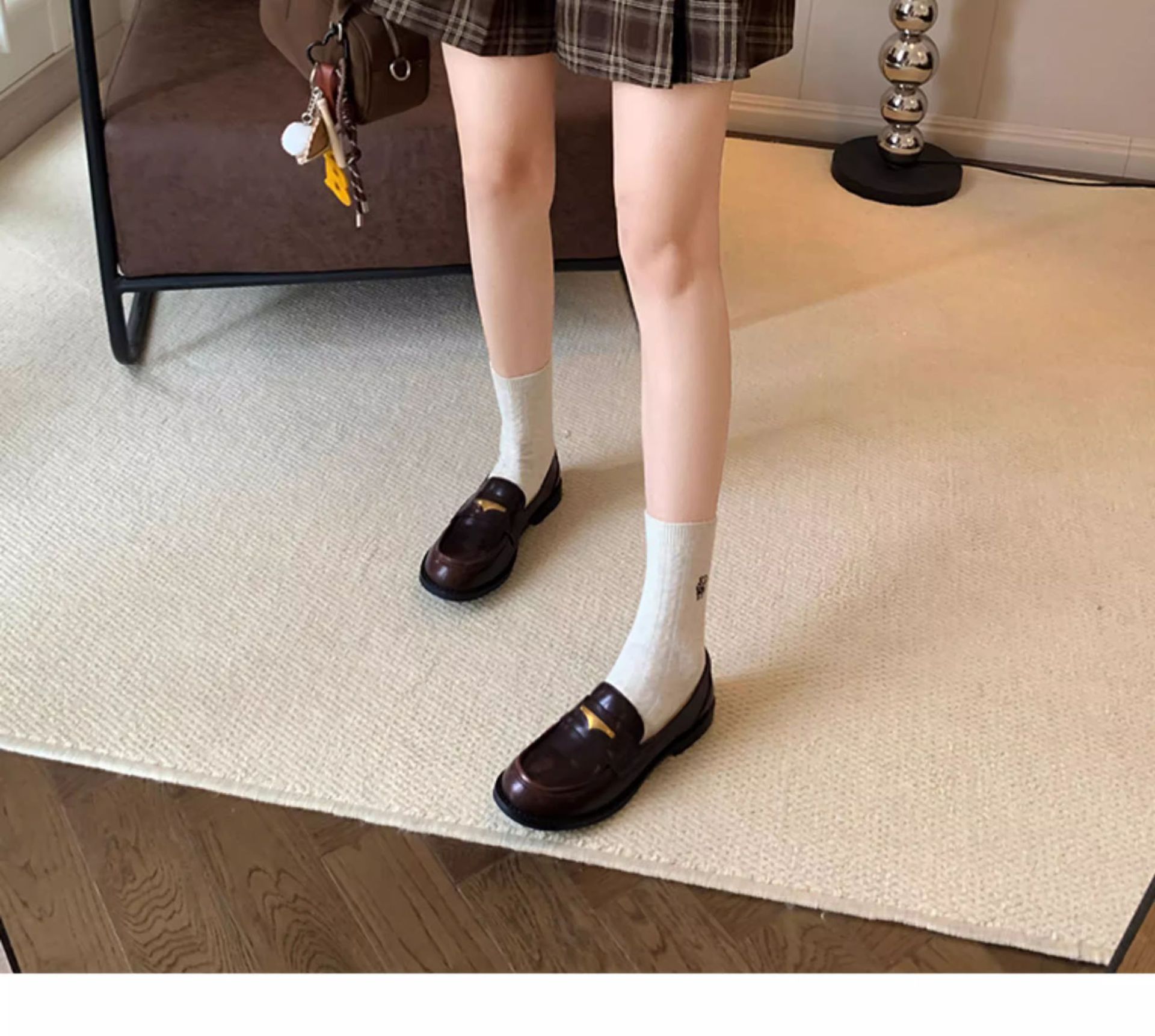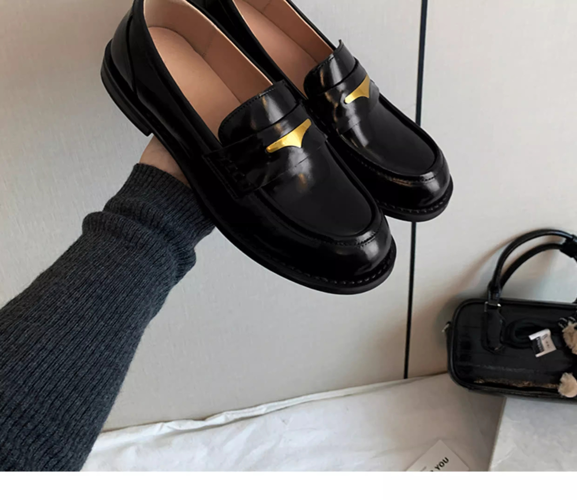 复古圆头擦色乐福鞋女厚底2025新款一脚蹬粗跟单鞋百搭英伦小皮鞋