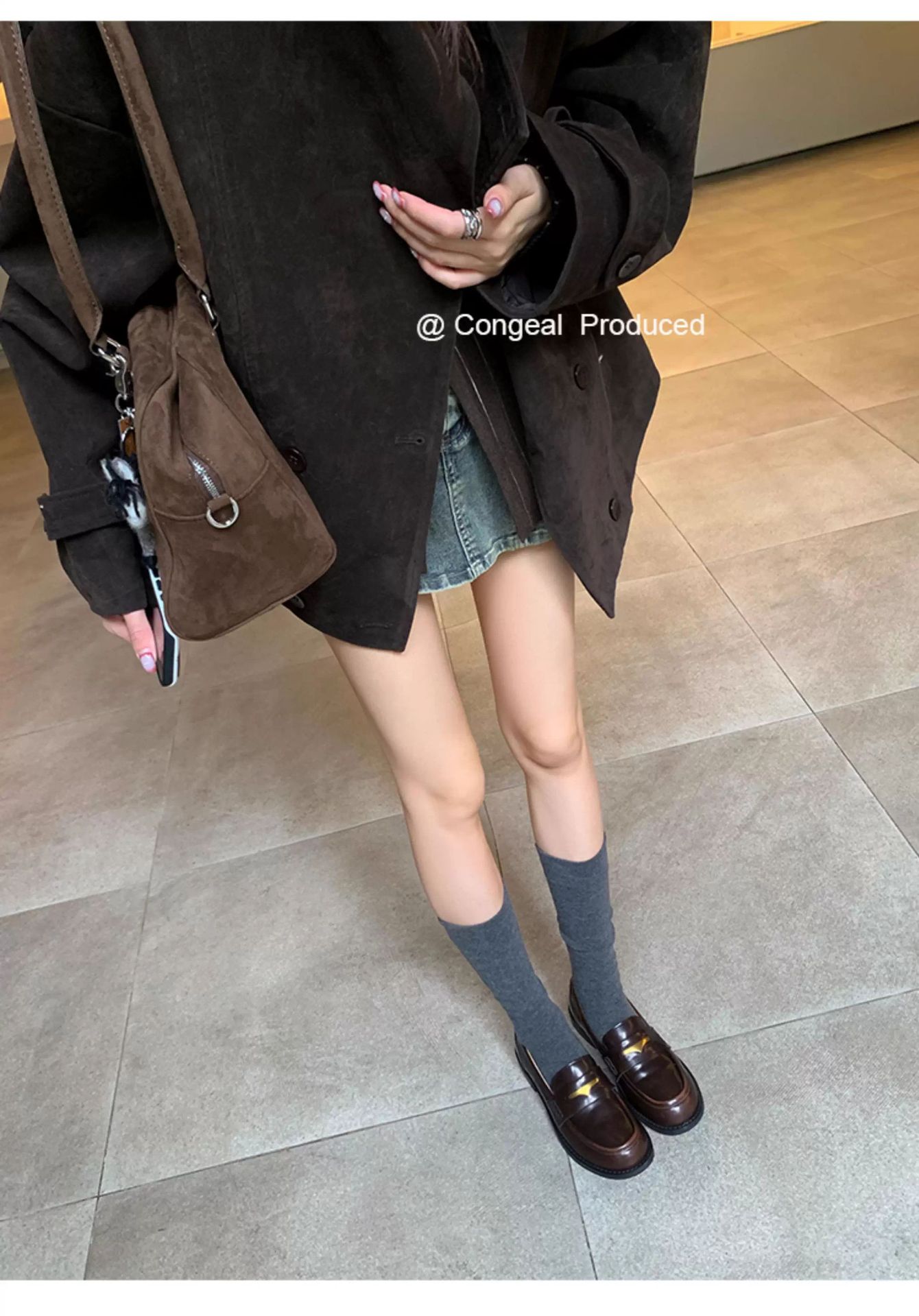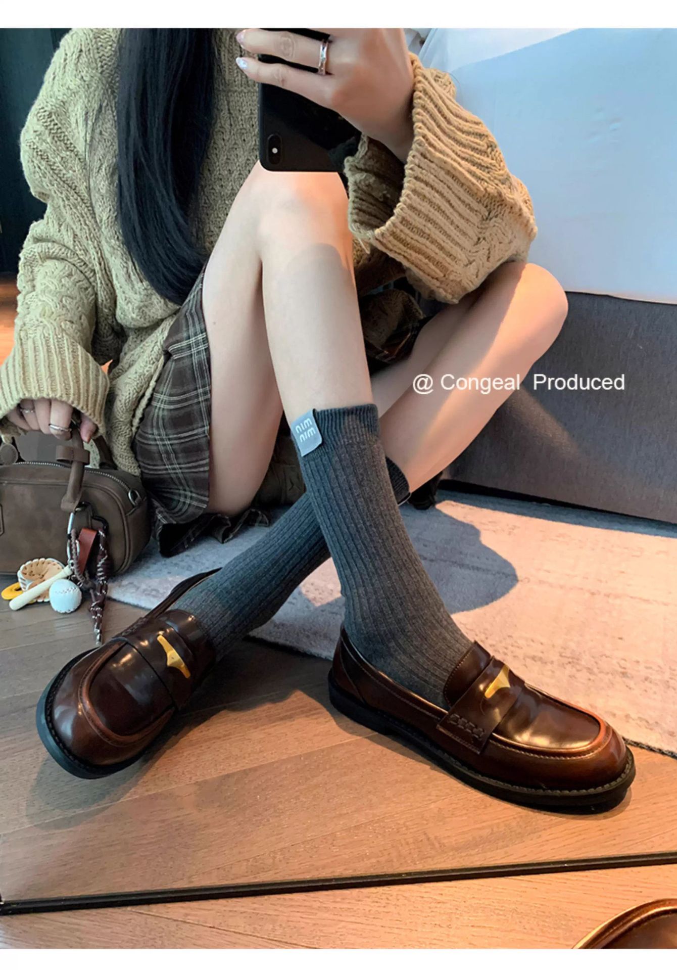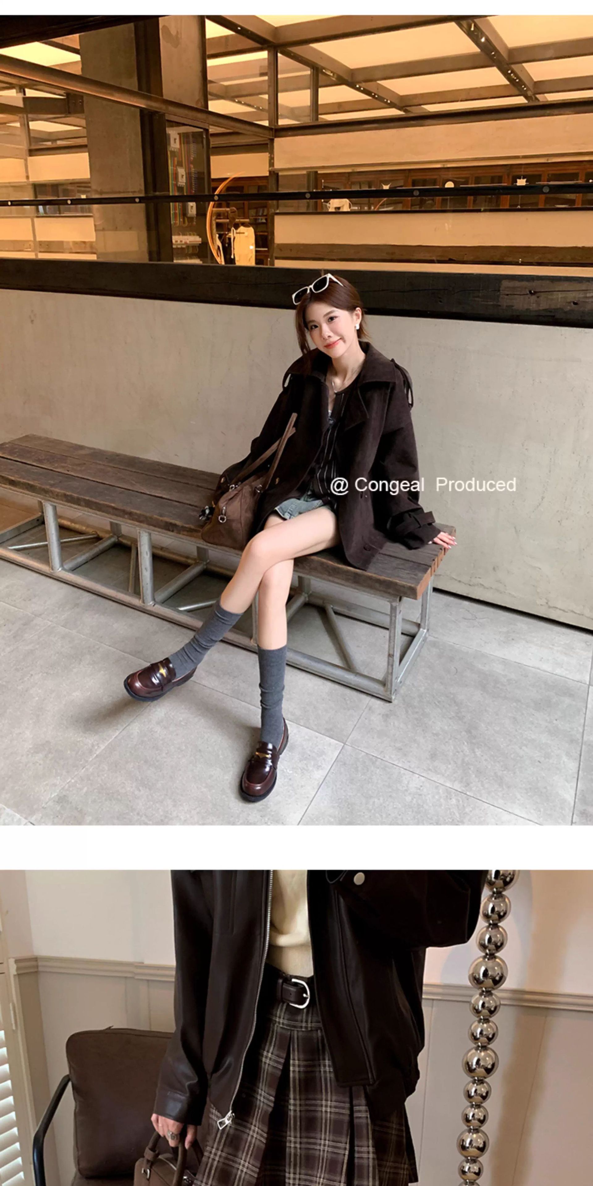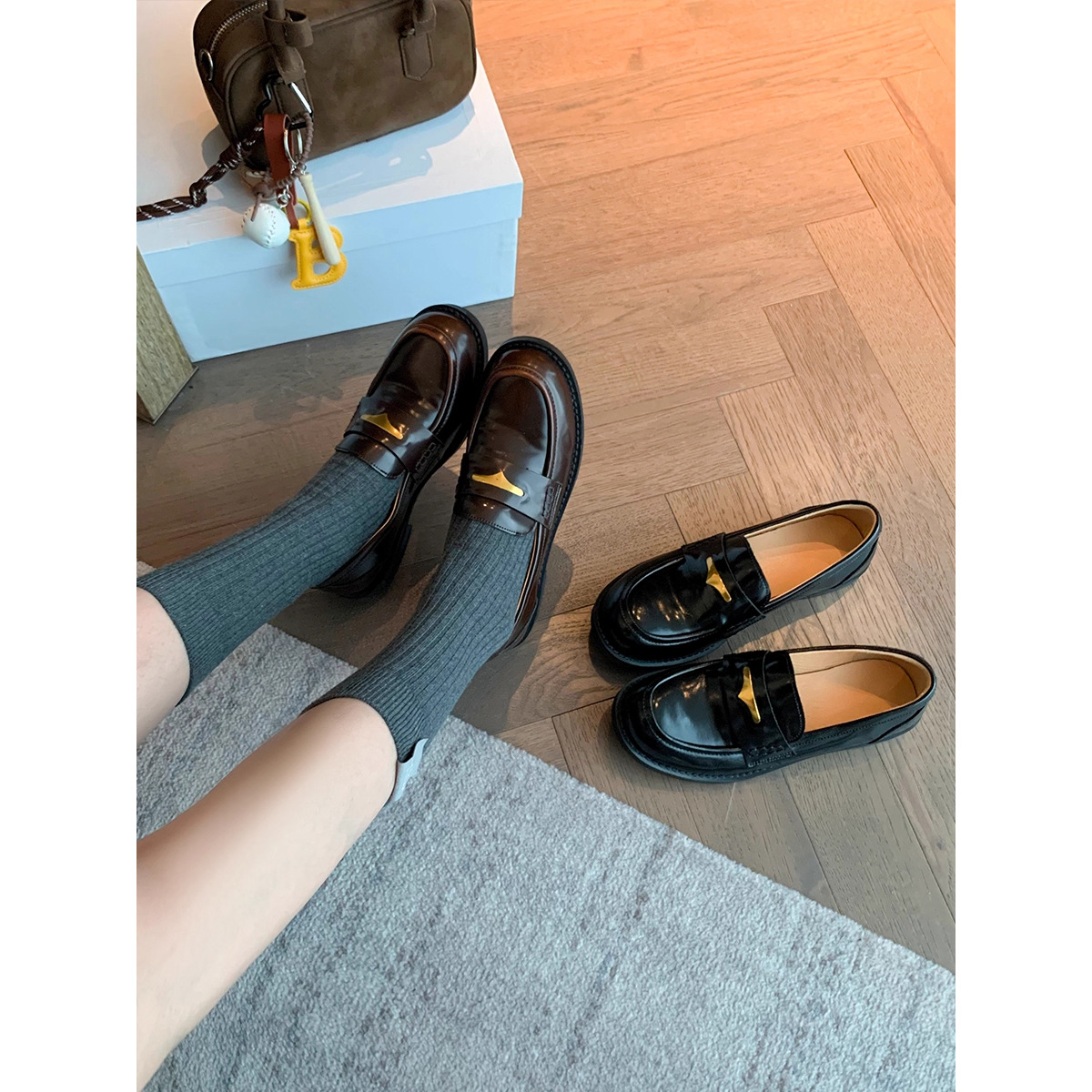 复古圆头擦色乐福鞋女厚底2025新款一脚蹬粗跟单鞋百搭英伦小皮鞋