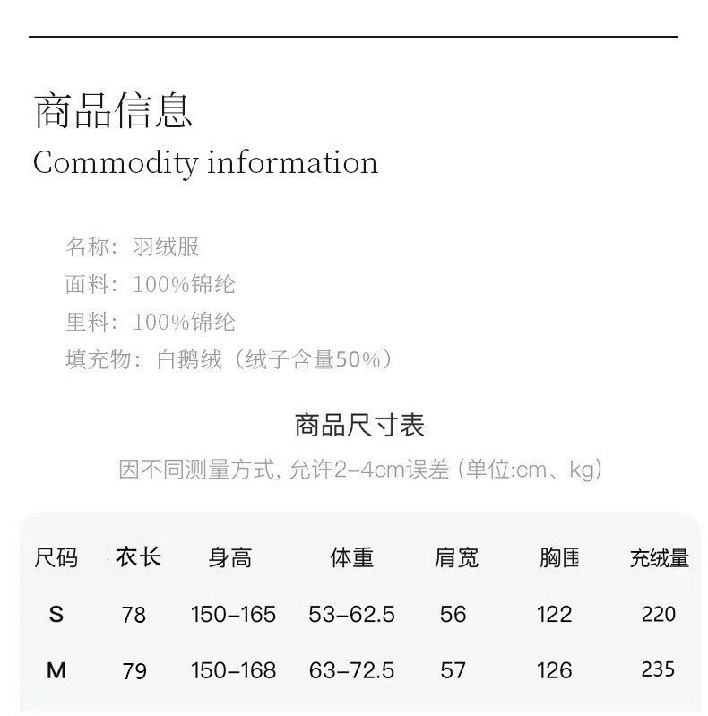 | 填充物 | 白鹅绒 | 含绒量 | 86%~90% |
