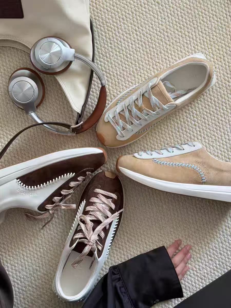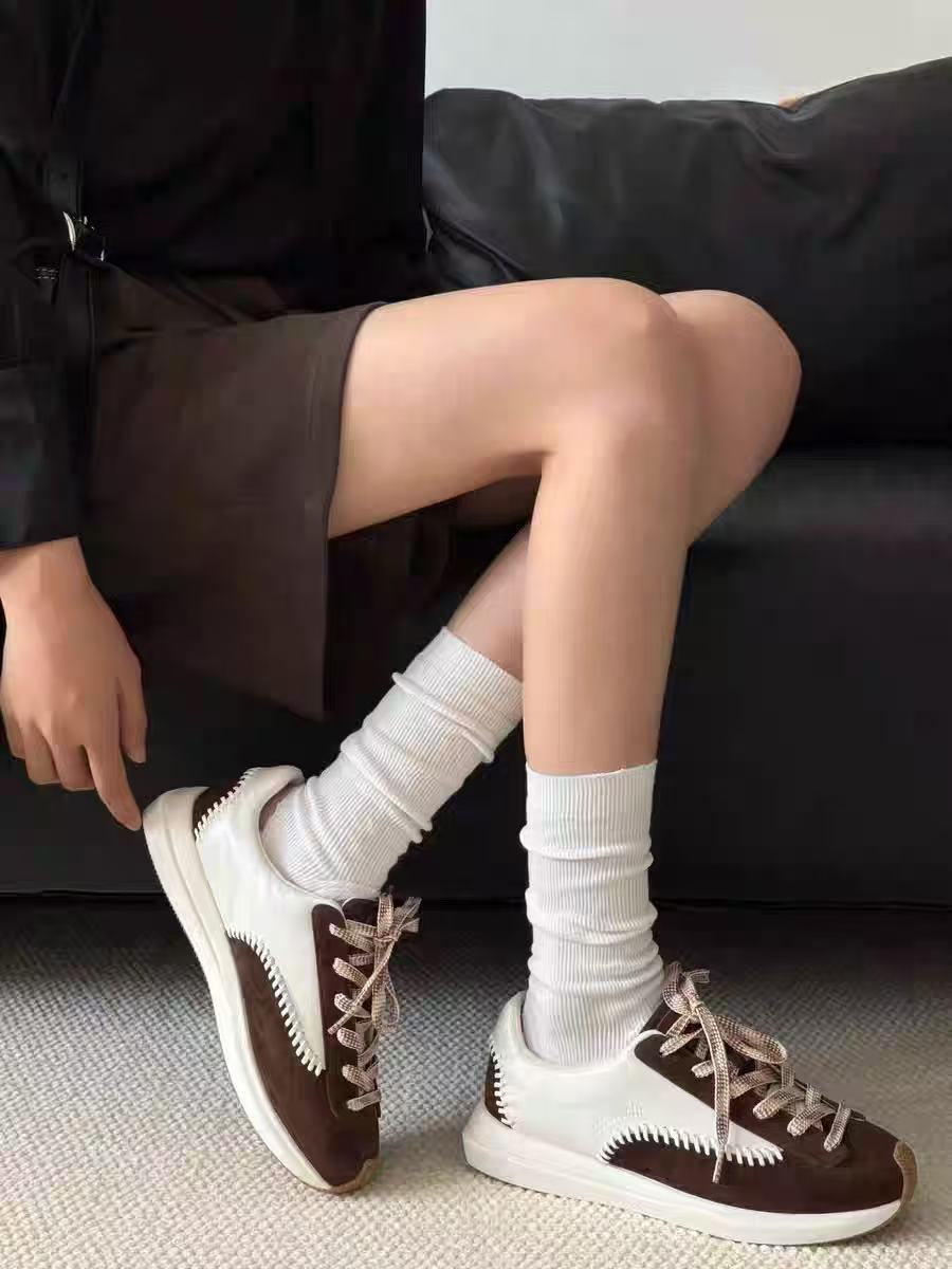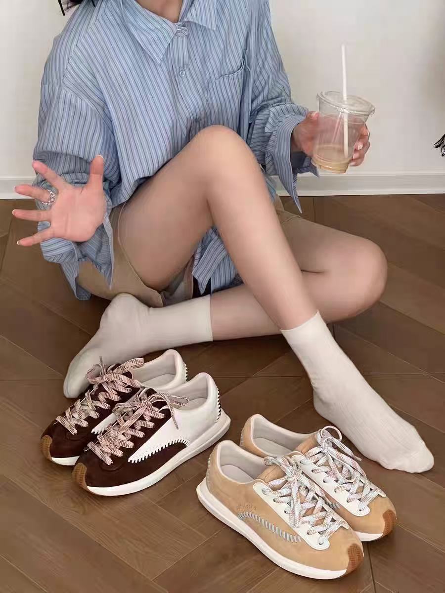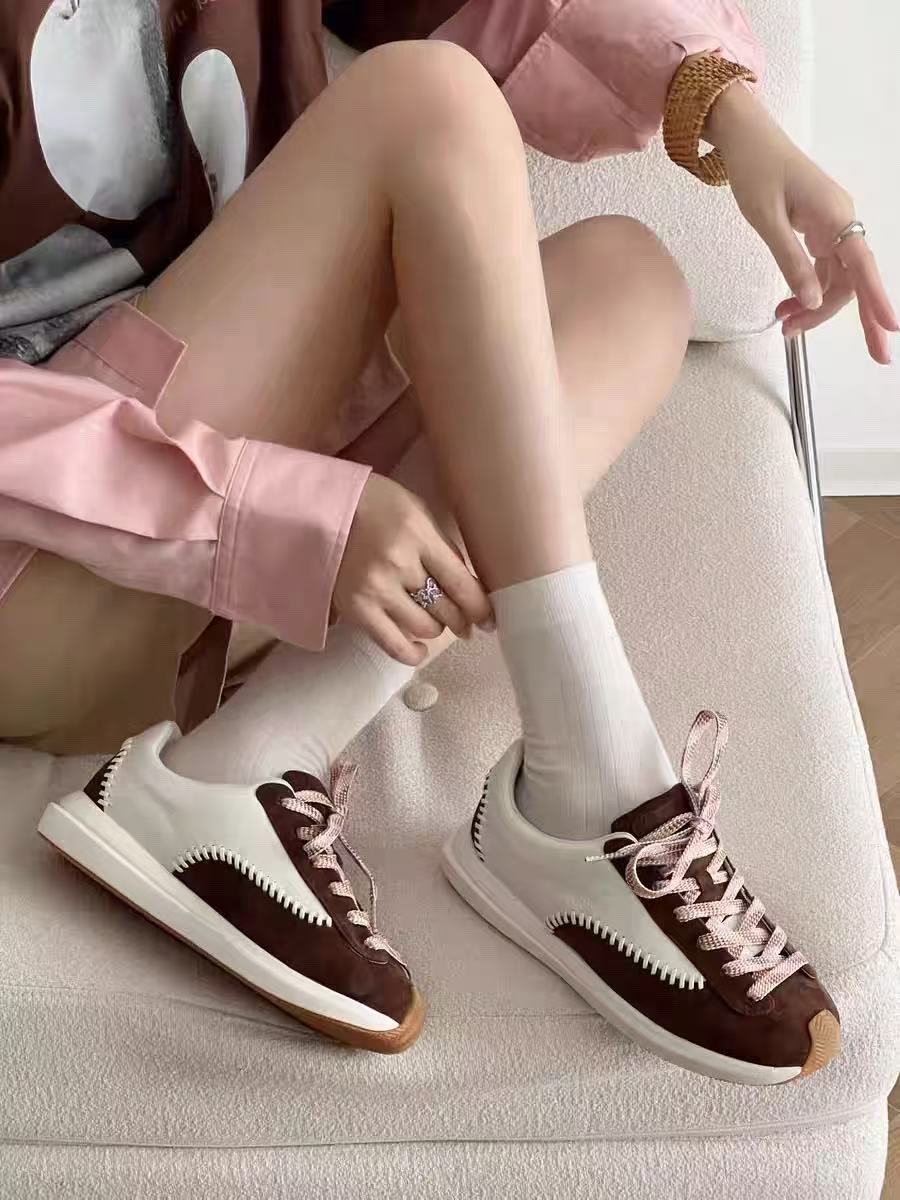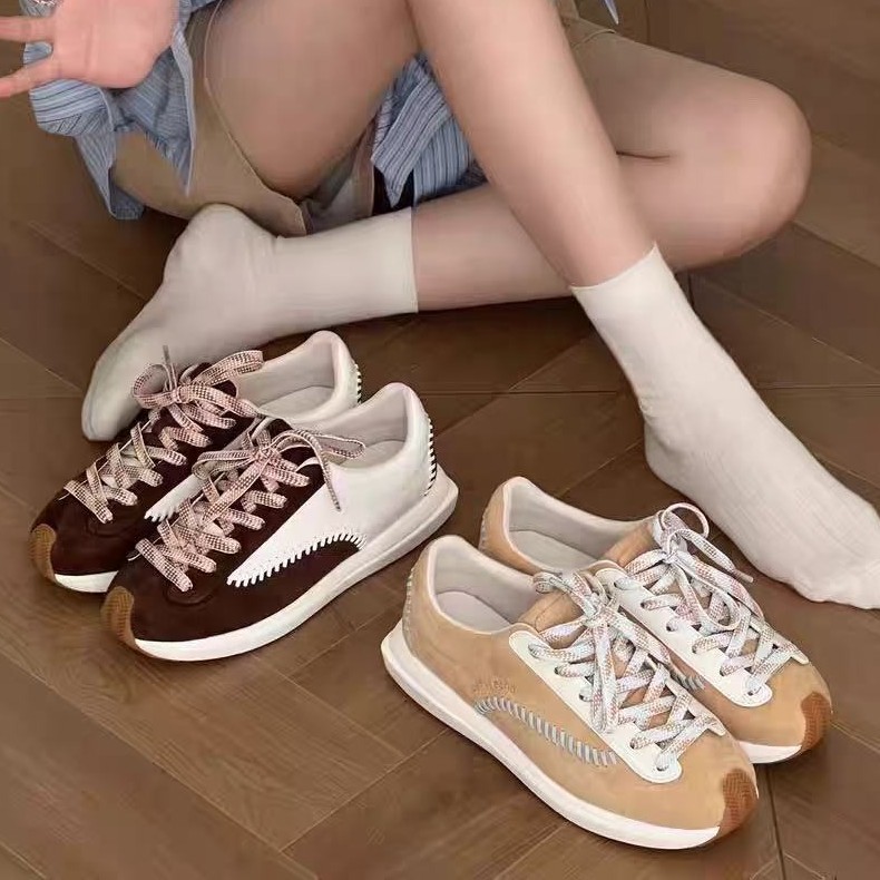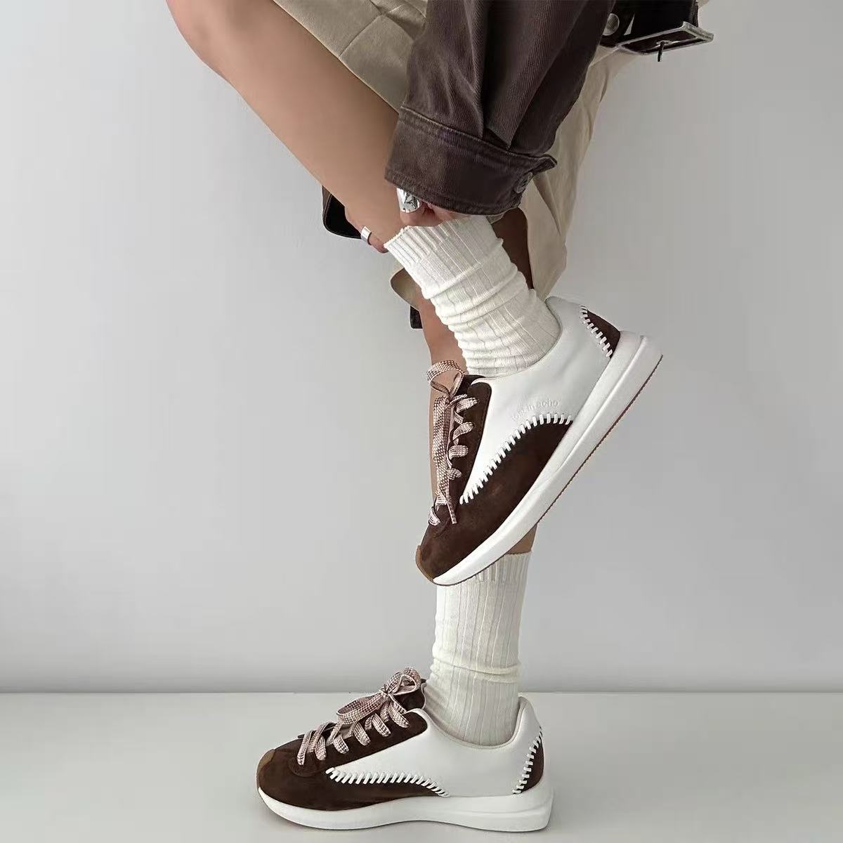 小蛮同款lost in echo秋冬新款复古撞色羊皮超轻厚底棒球阿甘鞋