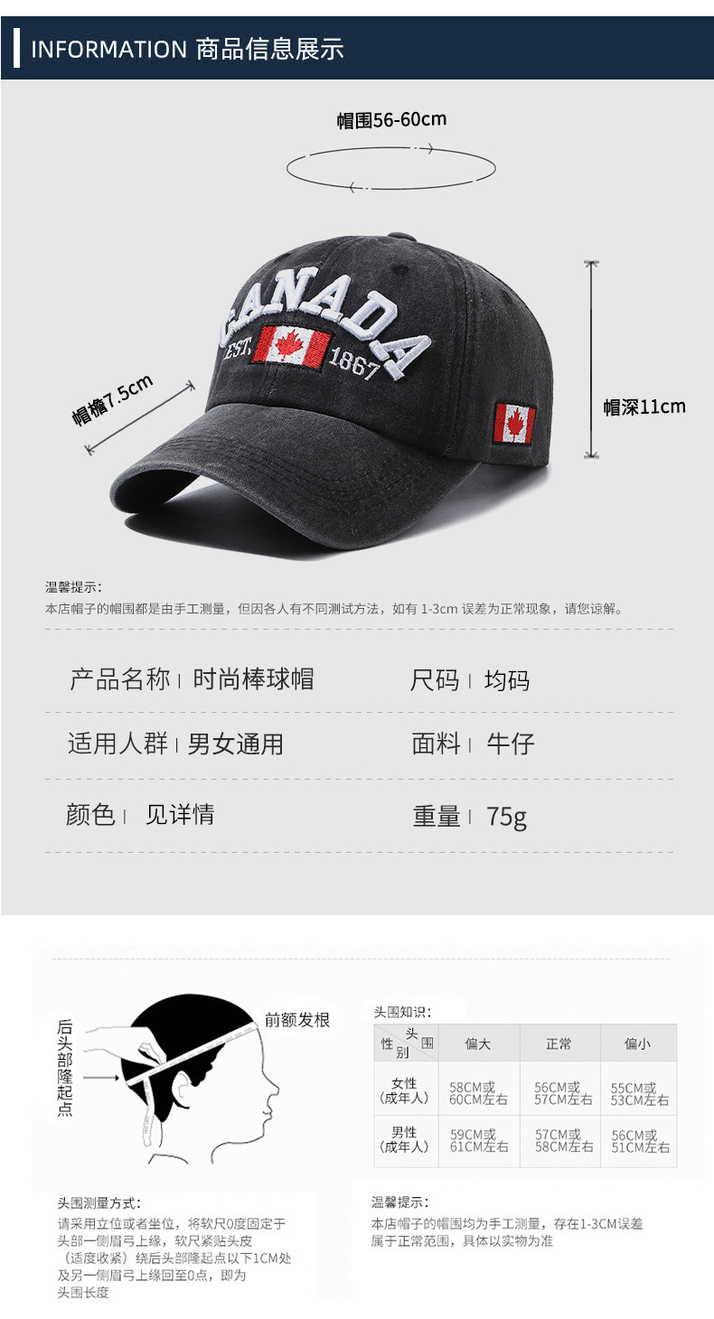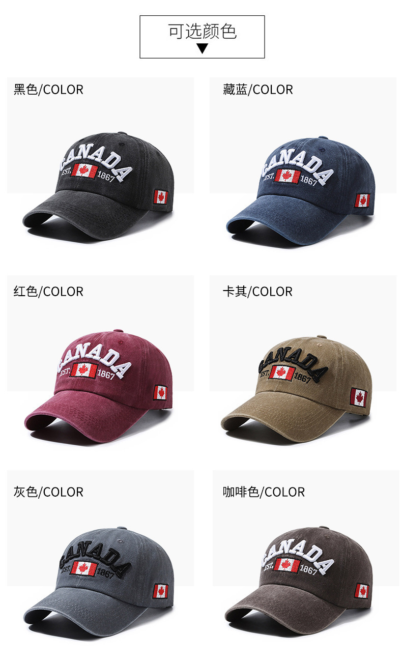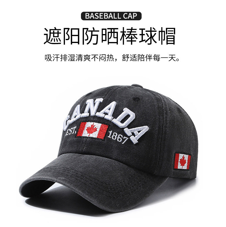 跨境全棉枫叶刺绣棒球帽CANADA情侣鸭舌帽休闲百搭防晒遮阳帽批发