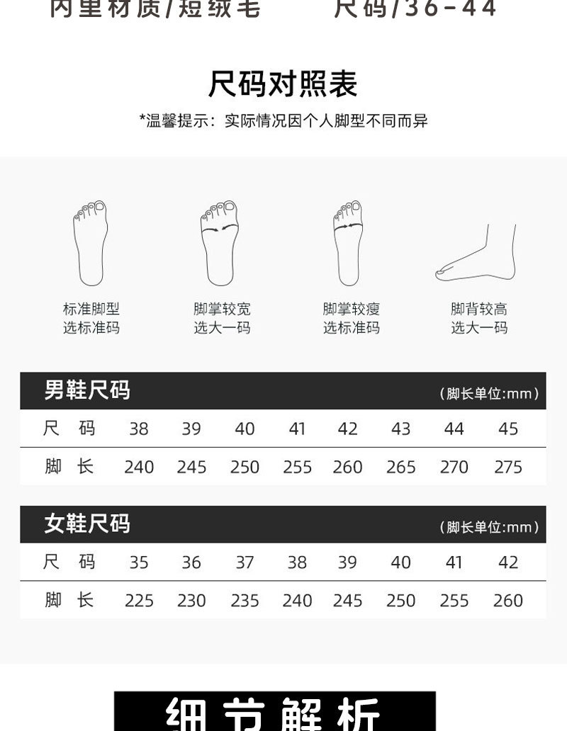 | 内里材质 | 人造短毛绒 | 开口深度 | 浅口(7cm以下) |