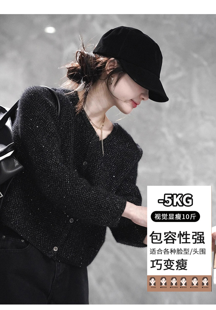 出口韩国翻毛皮平顶马术帽大头围复古老钱风贝雷帽画家报童帽短檐