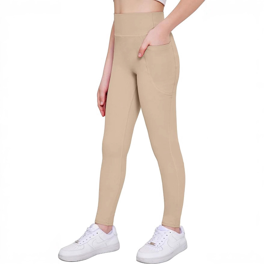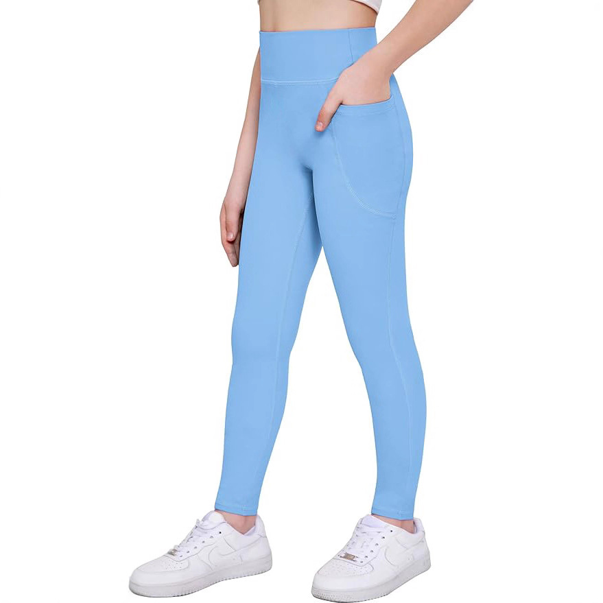 春秋新品女童运动紧身裤儿童舞蹈跑步瑜伽裤高腰带口袋裤子跨境