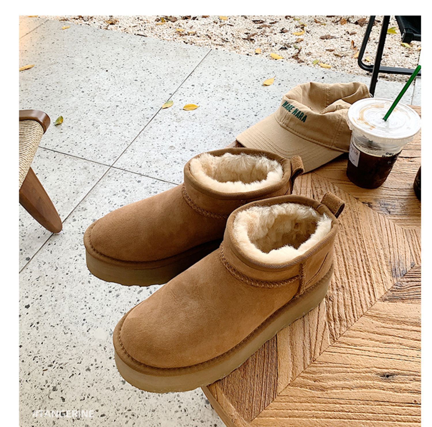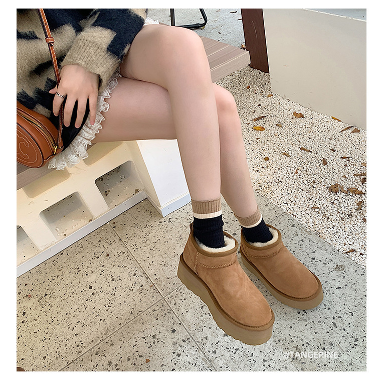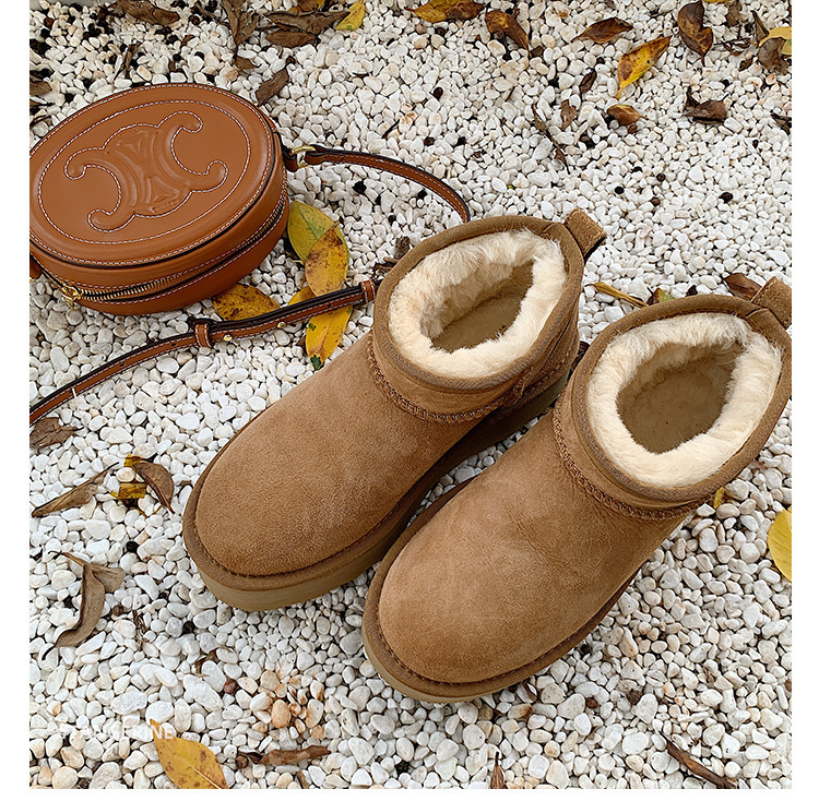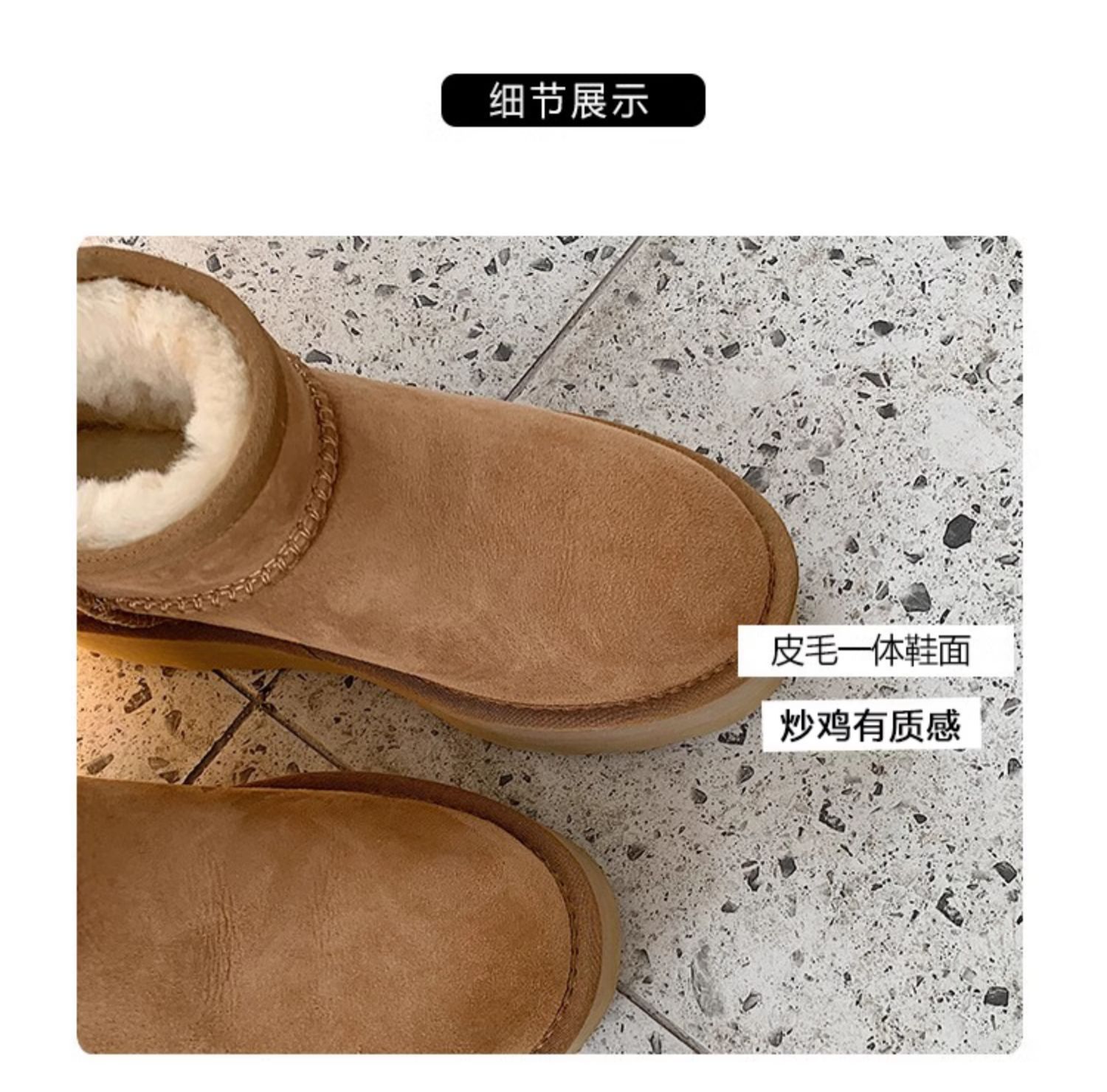 【名创】真皮羊毛雪地靴女厚底加绒冬季短靴东北棉靴桑坡短筒靴子