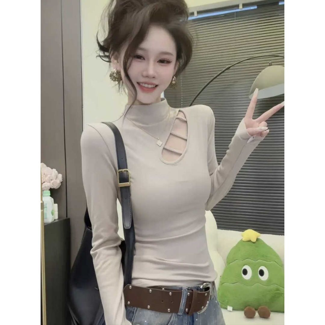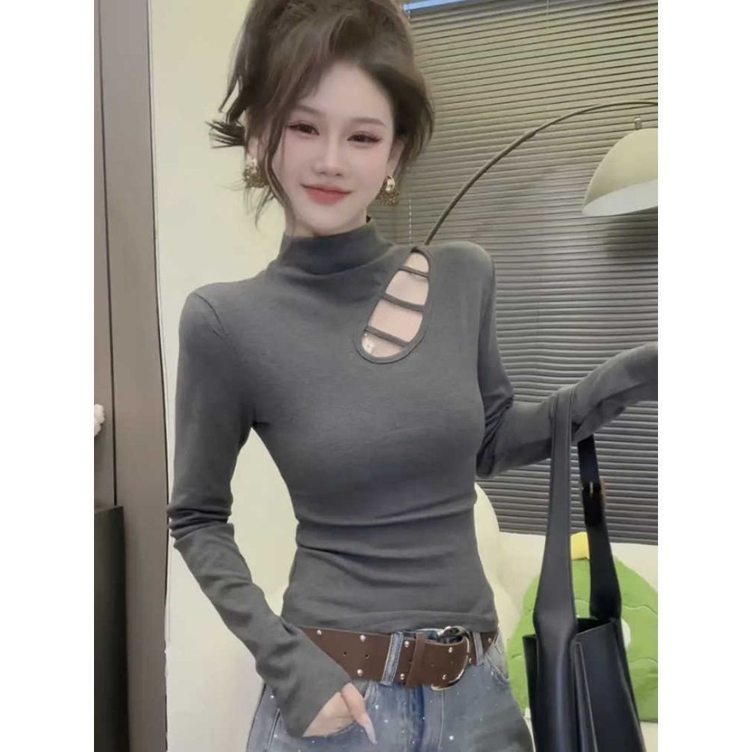 大码德绒韩系镂空设计长袖上衣女秋冬新款宽松显瘦遮肉保暖打底衫