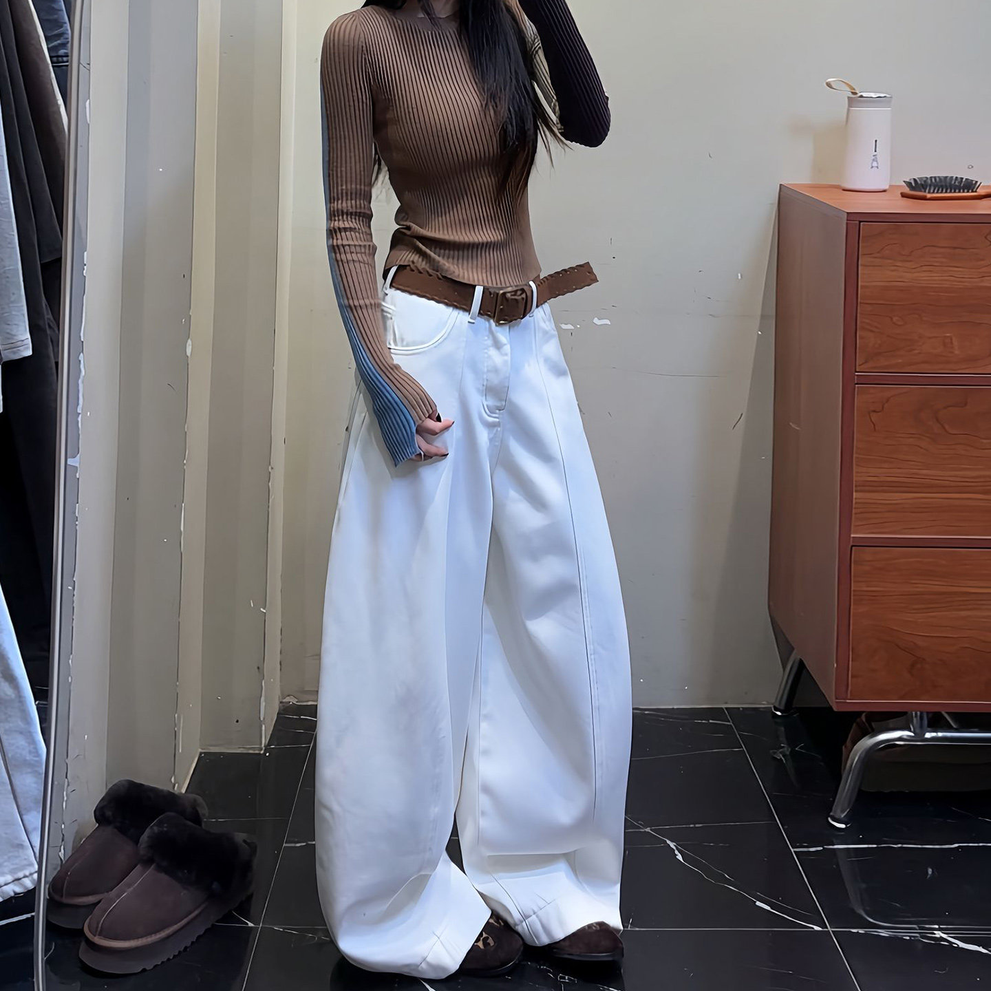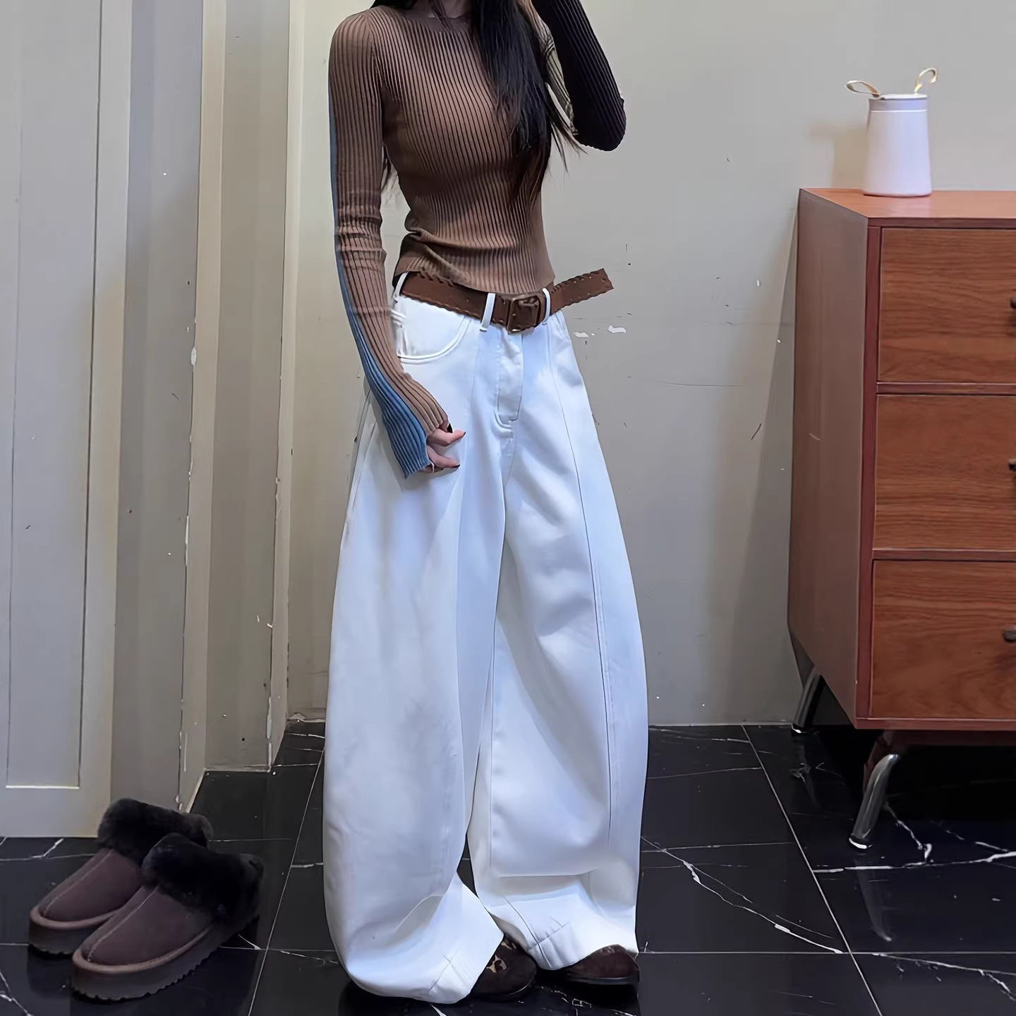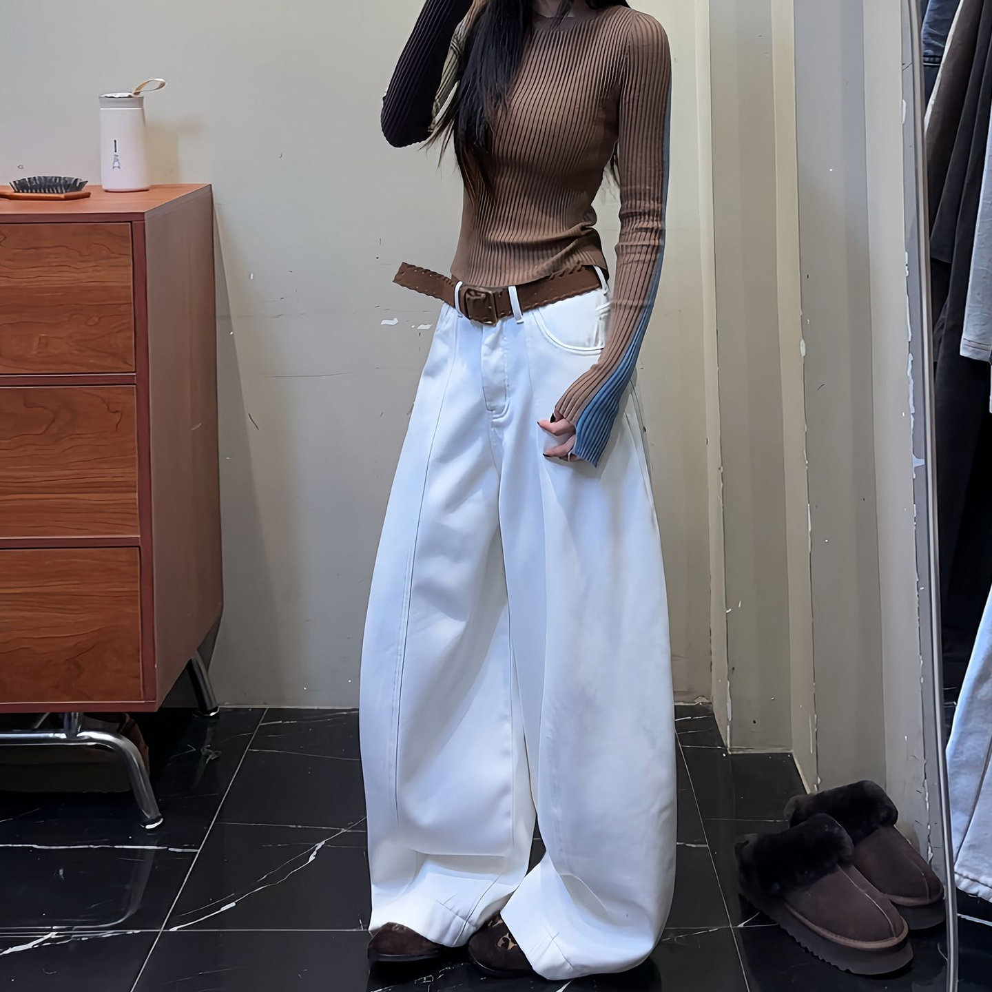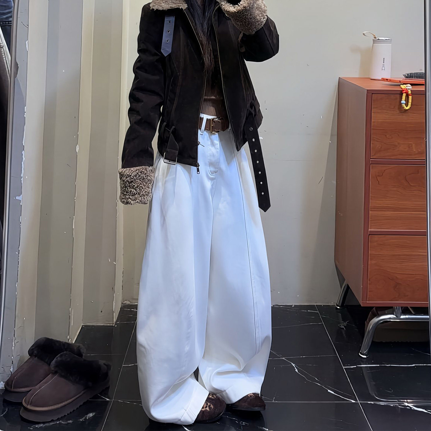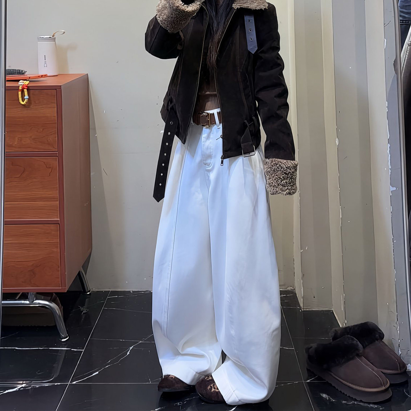 今年流行爆款白色加绒阔腿牛仔裤女2025冬季小个子时尚百搭弯刀裤