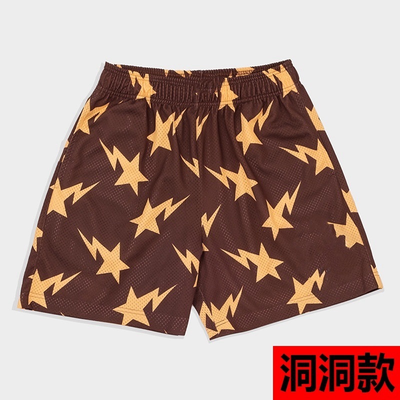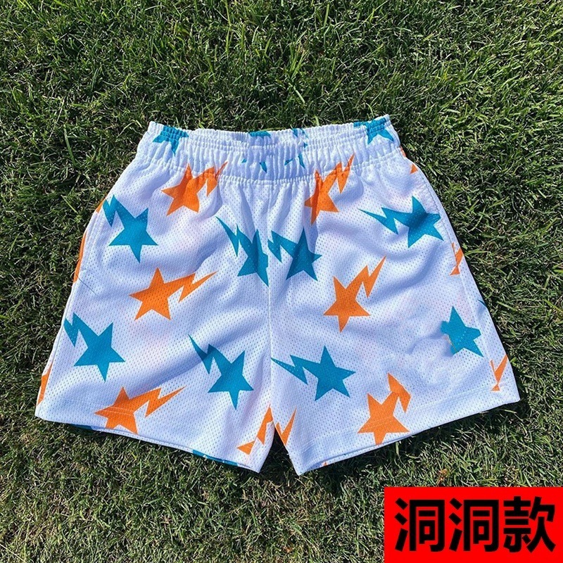 潮牌美式休闲短裤健身男士肌肉运动四分裤潮沙滩裤网眼透气跨境专