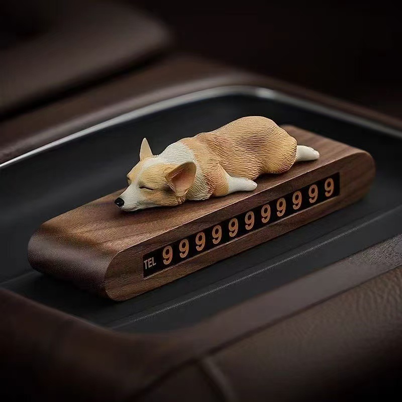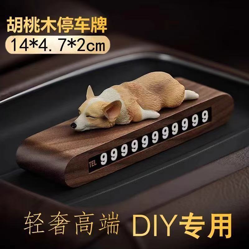 临时停车牌手机号胡桃木挪车电话牌车上可爱复古车载摆件手工diy