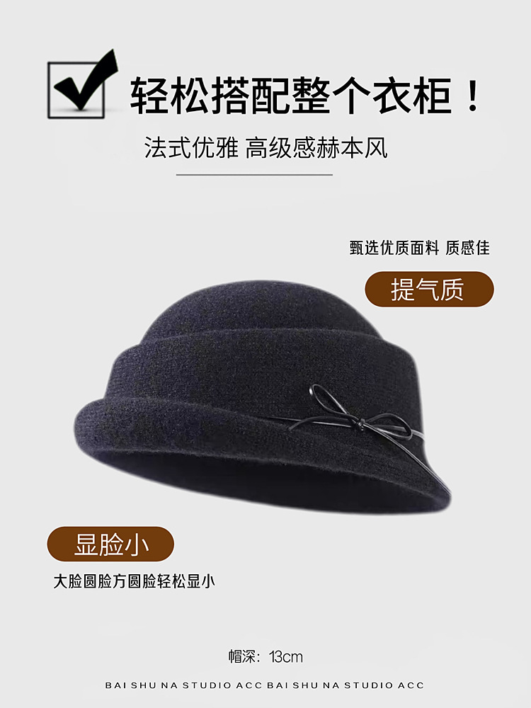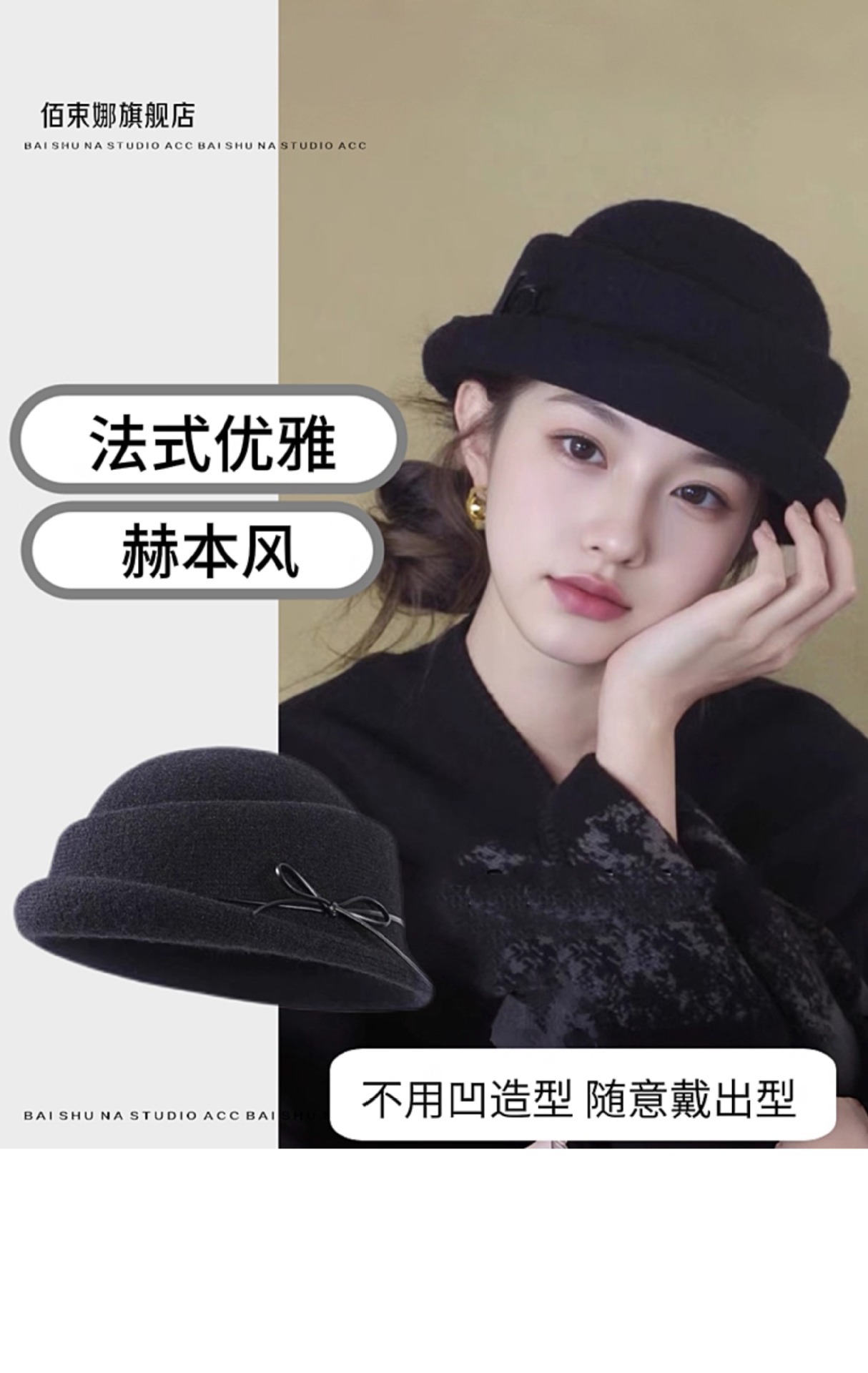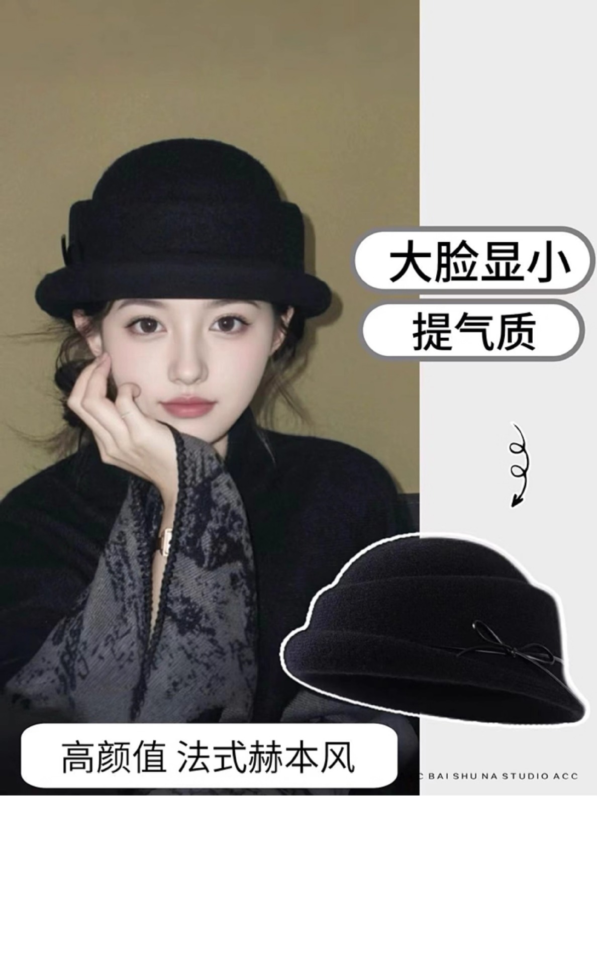 | 帽檐款式 | 无檐 | 颜色 | 千金蝴蝶结-黑色, 千金蝴蝶结-米白 |