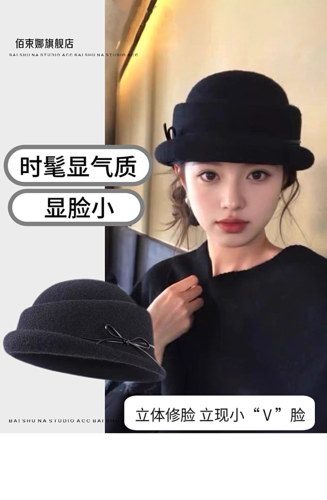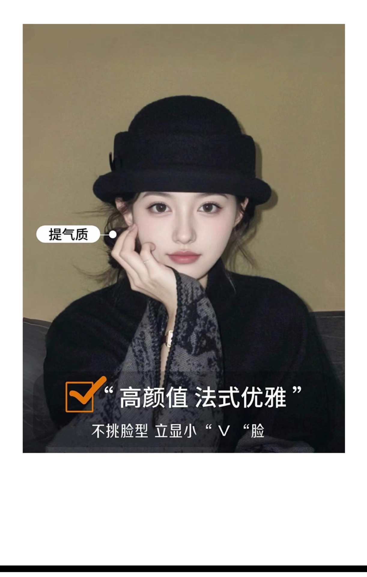 黑色礼帽贝雷帽女2025新款秋冬法式赫本风留洋千金帽子羊毛渔夫帽
