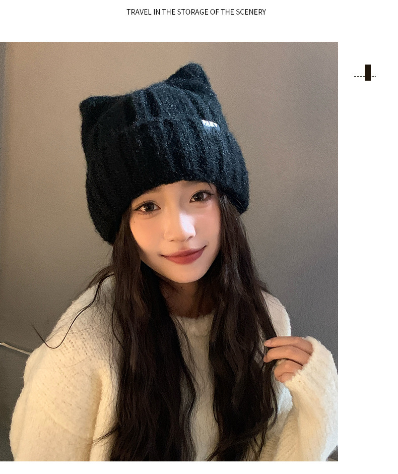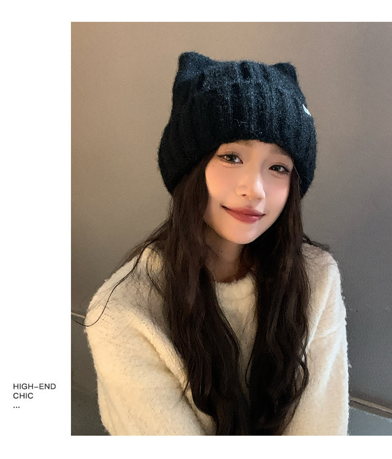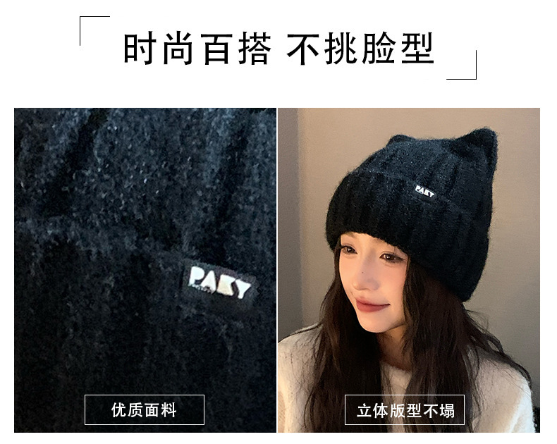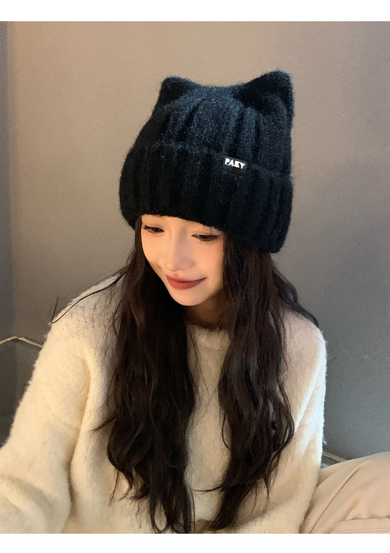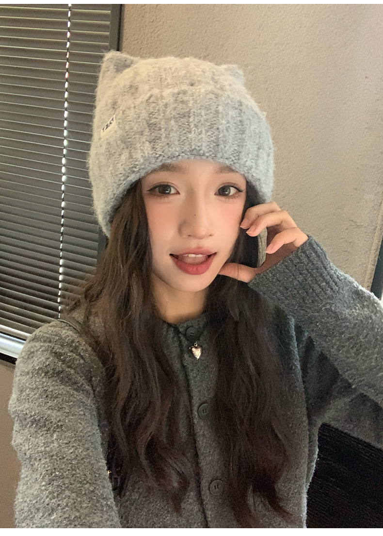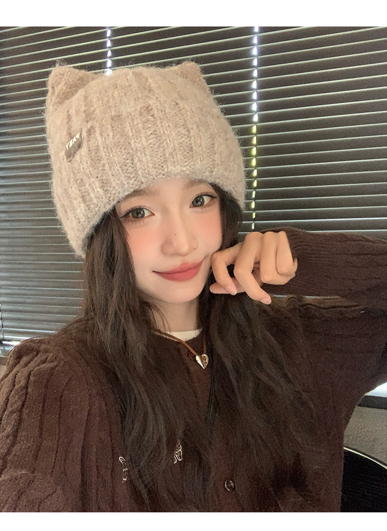 秋冬季加绒猫耳韩版保暖毛线帽新款大头围显脸小护耳帽针织帽子女