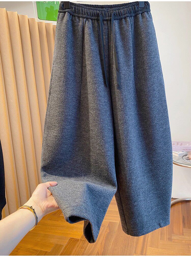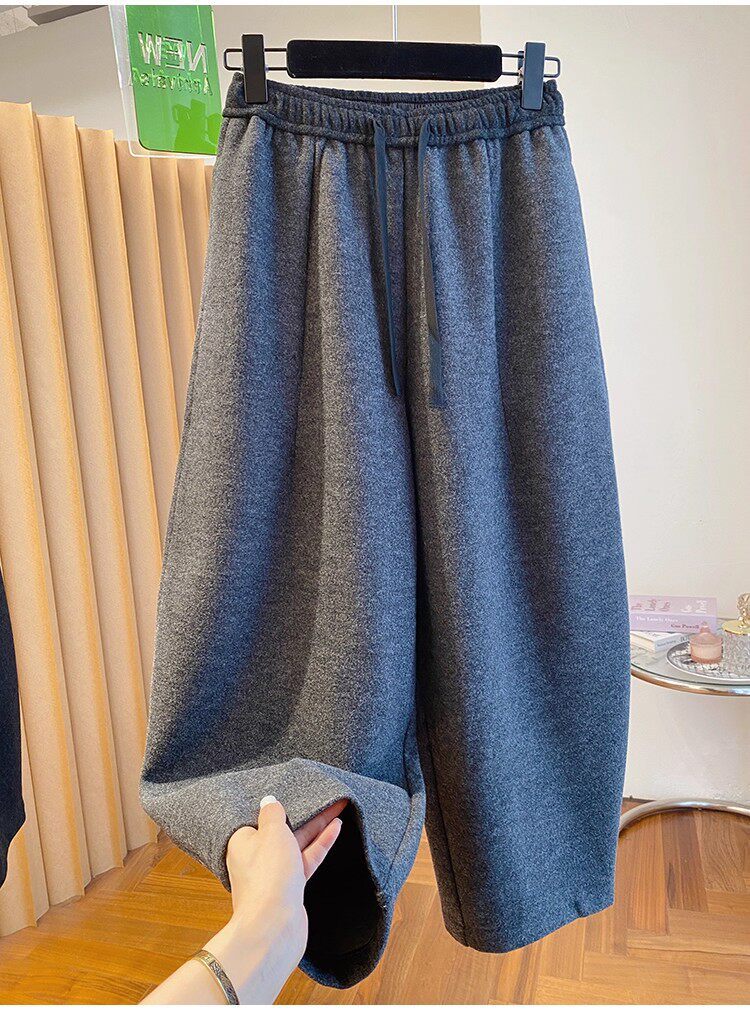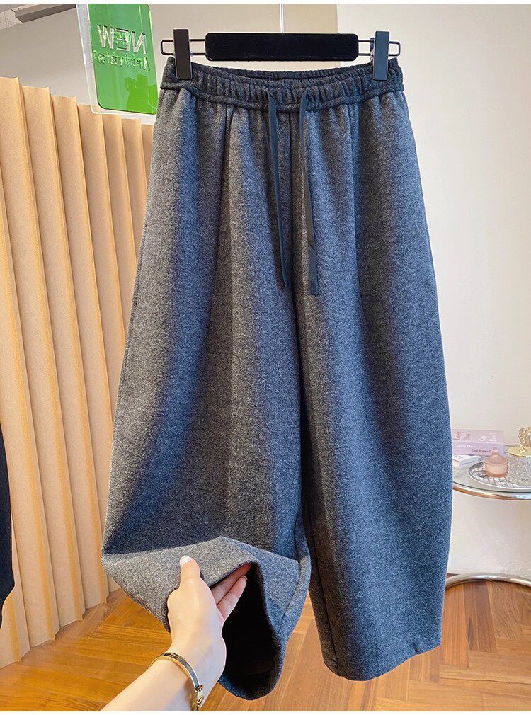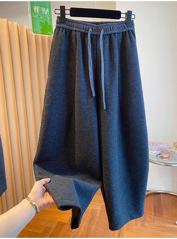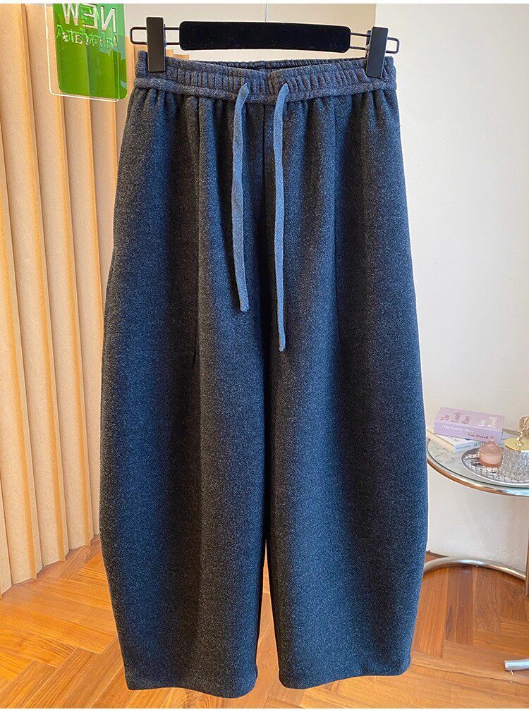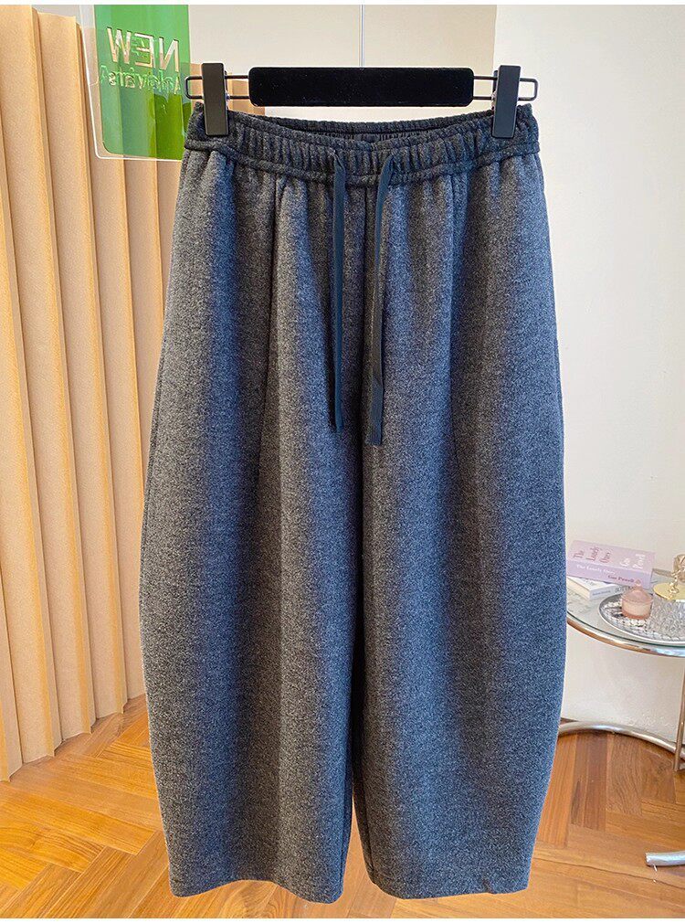 秋冬季加大码200斤灰色九分裤女宽松百搭休闲潮垂感弯刀遮肉裤