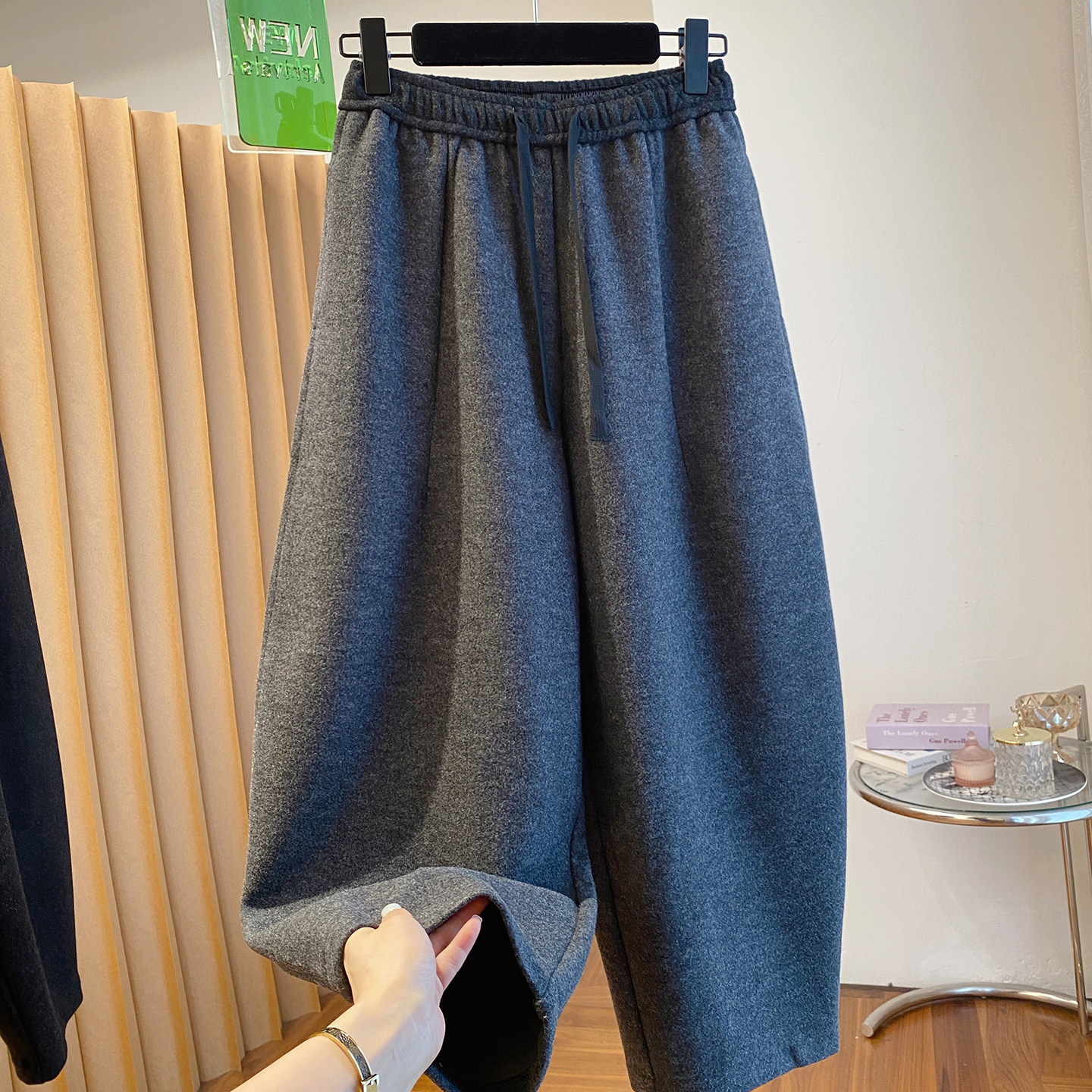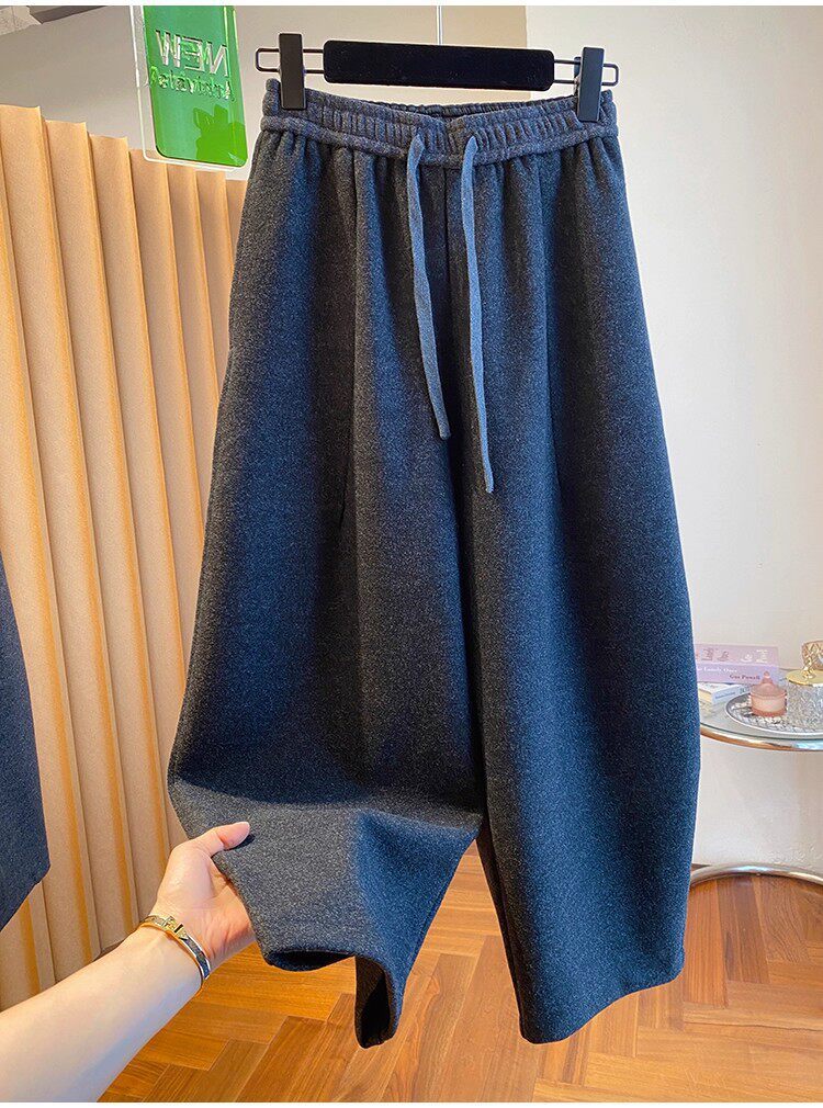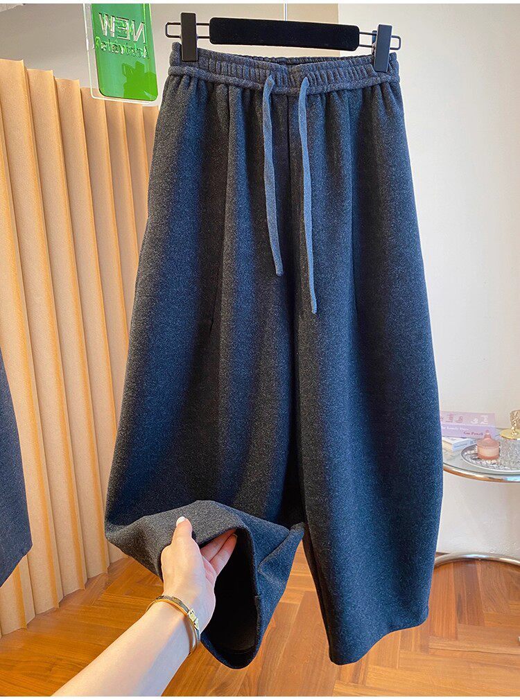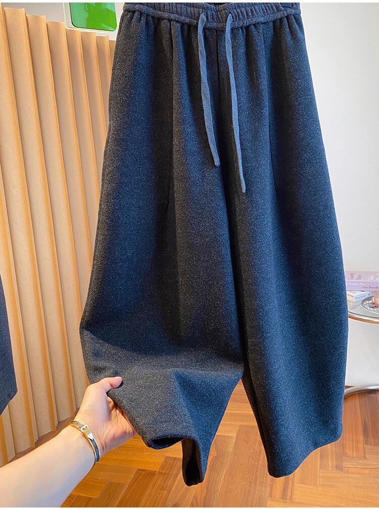 秋冬季加大码200斤灰色九分裤女宽松百搭休闲潮垂感弯刀遮肉裤