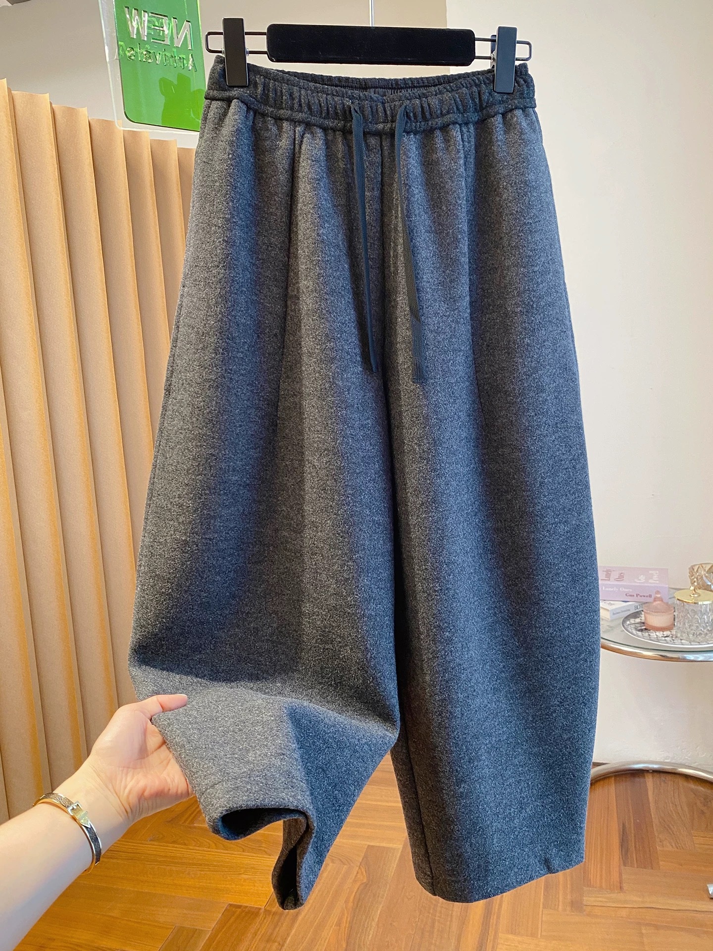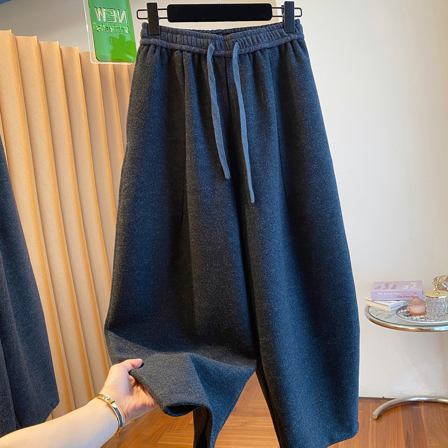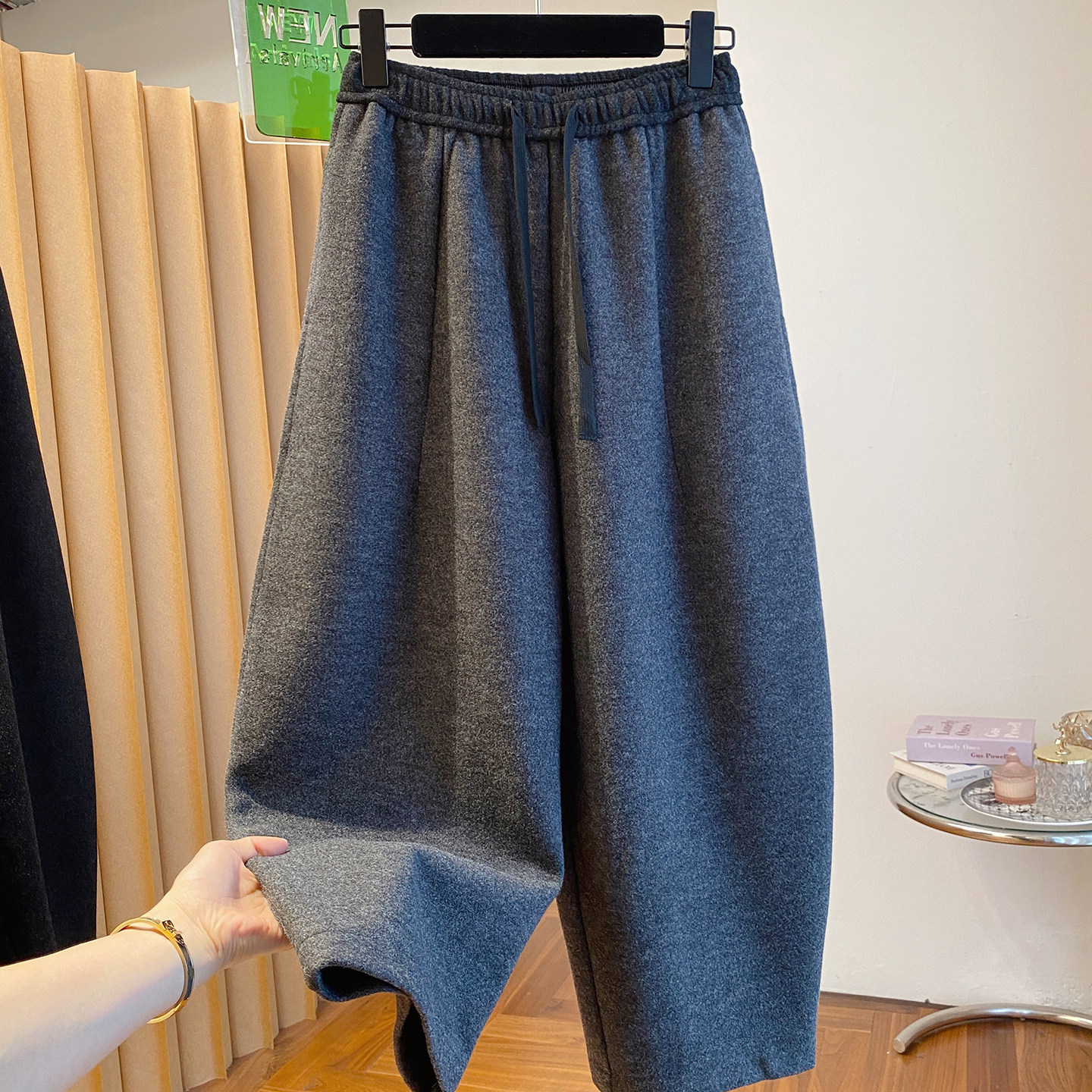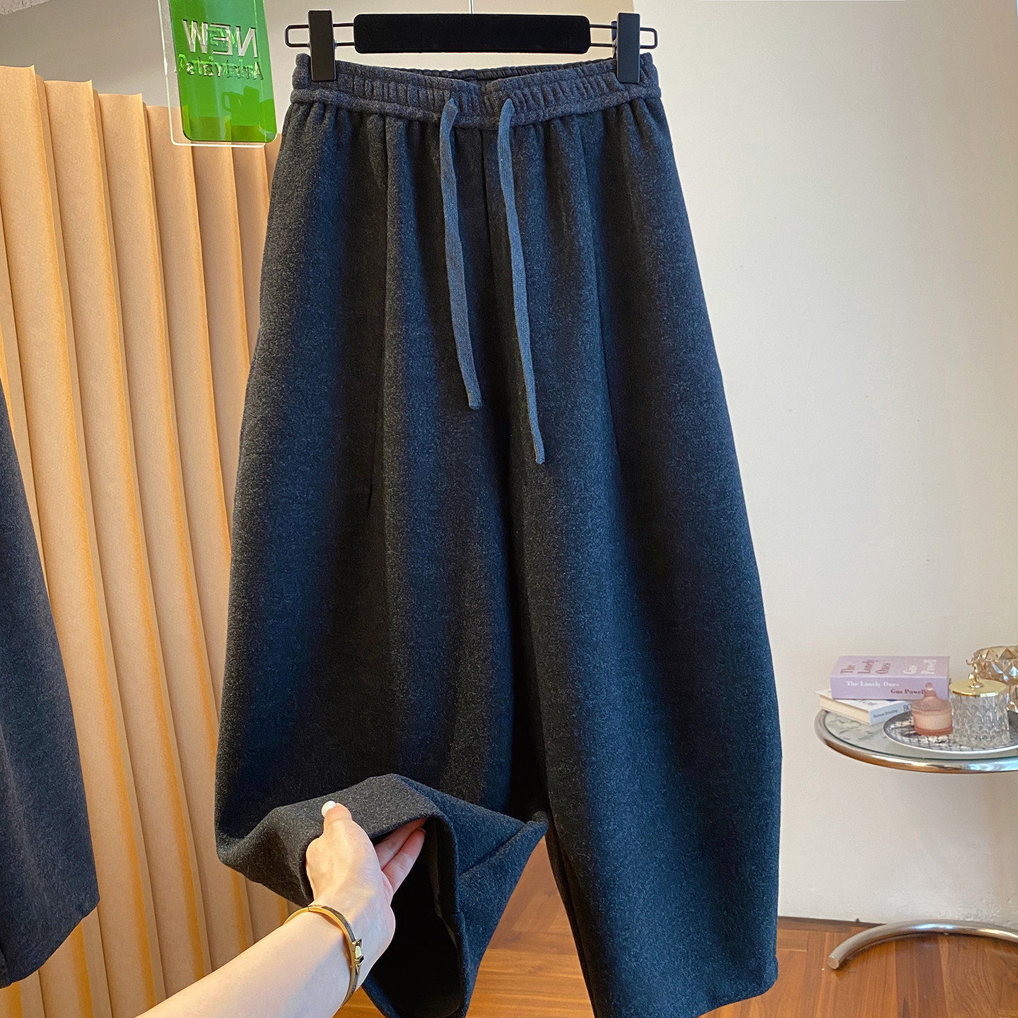 秋冬季加大码200斤灰色九分裤女宽松百搭休闲潮垂感弯刀遮肉裤