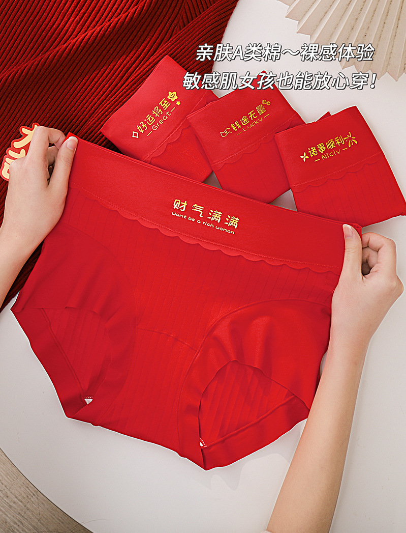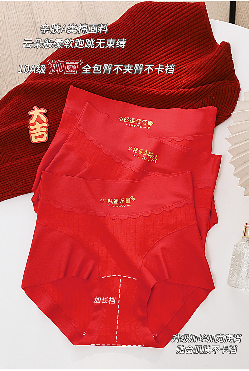 本命年红色内裤纯棉女士大码10a抗菌高腰舒适纯棉裆三角马年2026