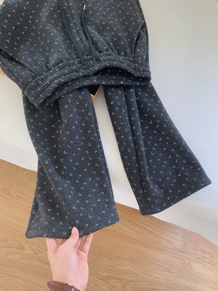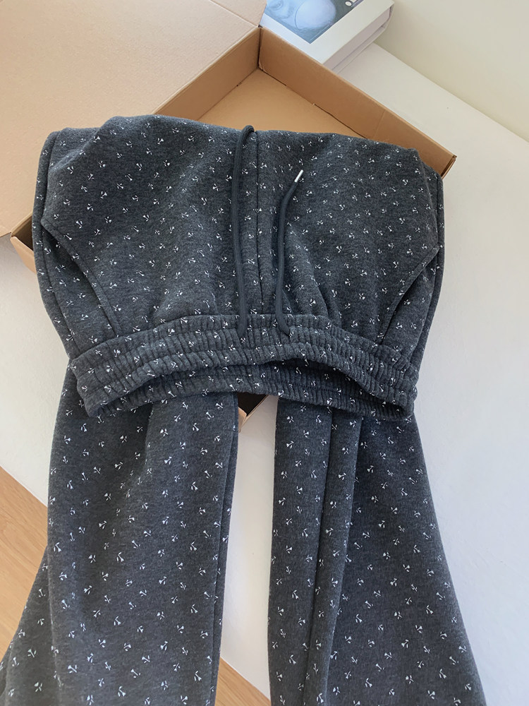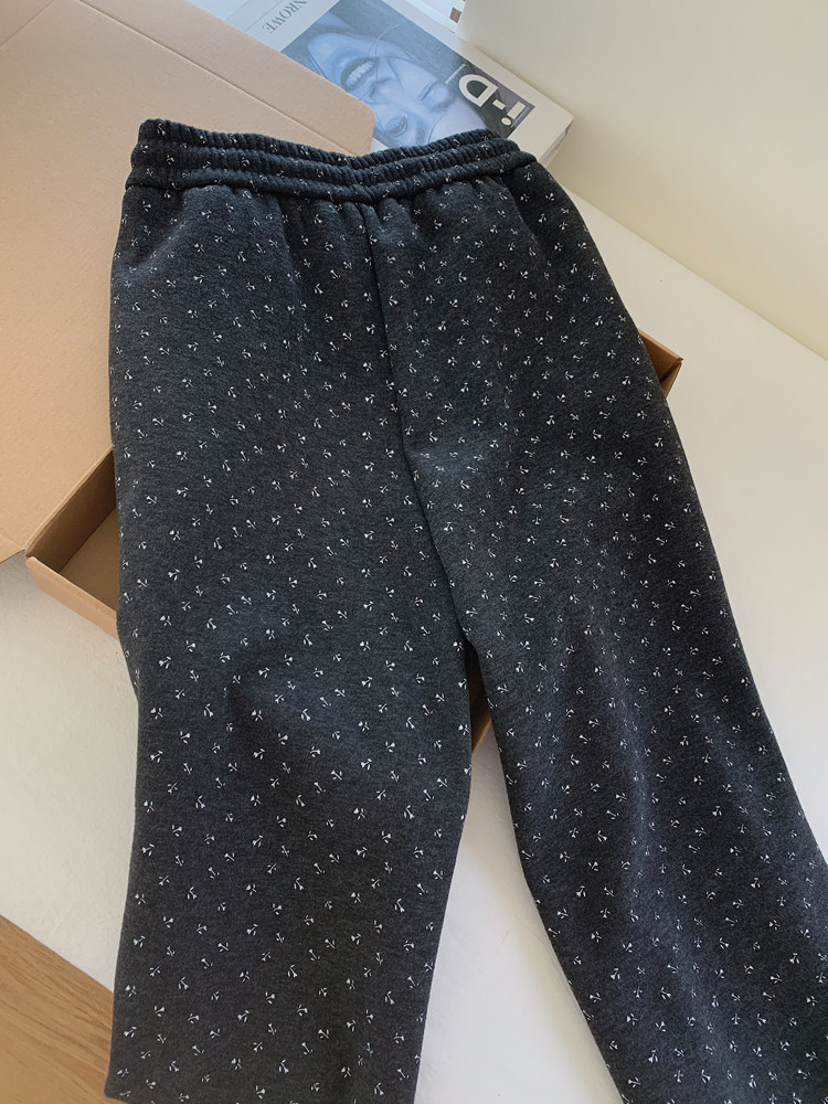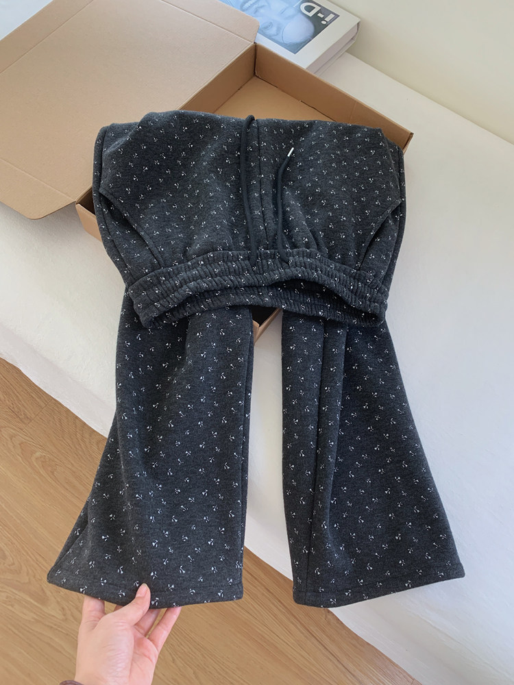 秋冬加大码200斤深灰色碎花休闲百搭加绒加厚休闲运动直筒卫裤女