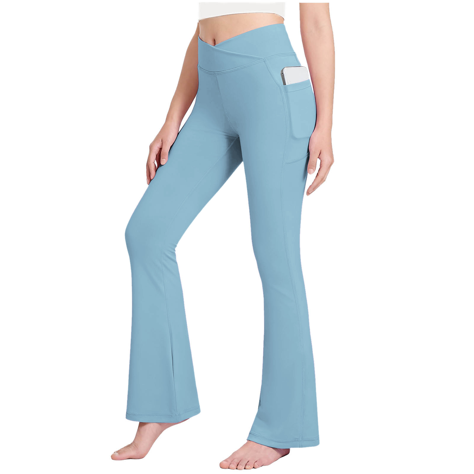 跨境春秋新品女童高腰交叉休闲瑜伽喇叭裤儿童带口袋运动裤舞蹈裤