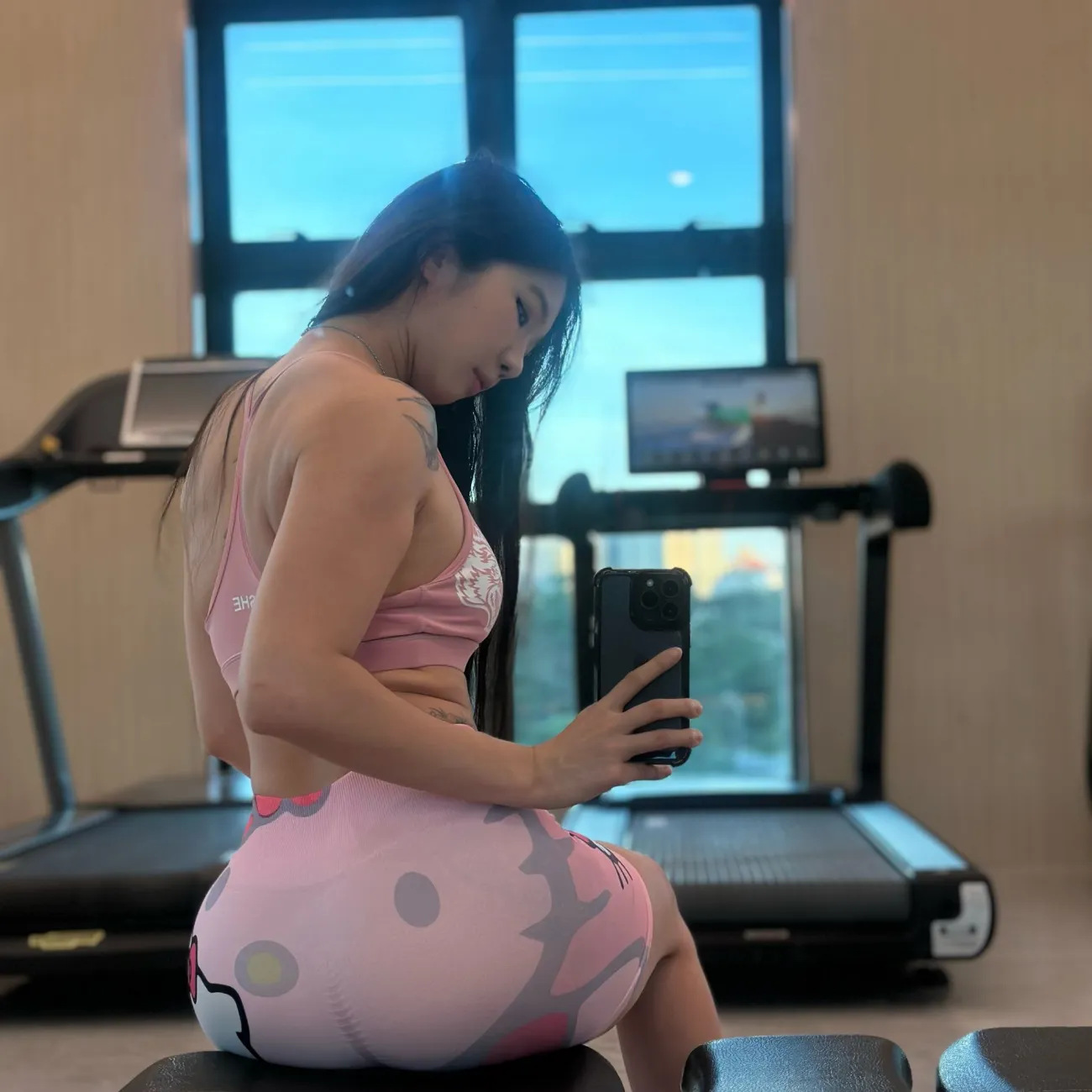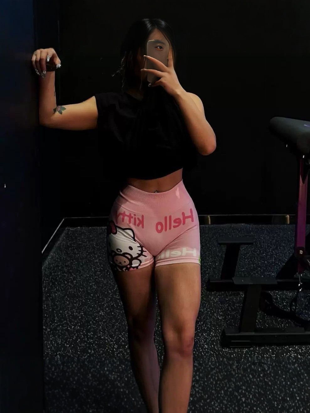 Kitty双面印花高腰健身短裤女紧身显瘦瑜伽跑步运动辣妹款