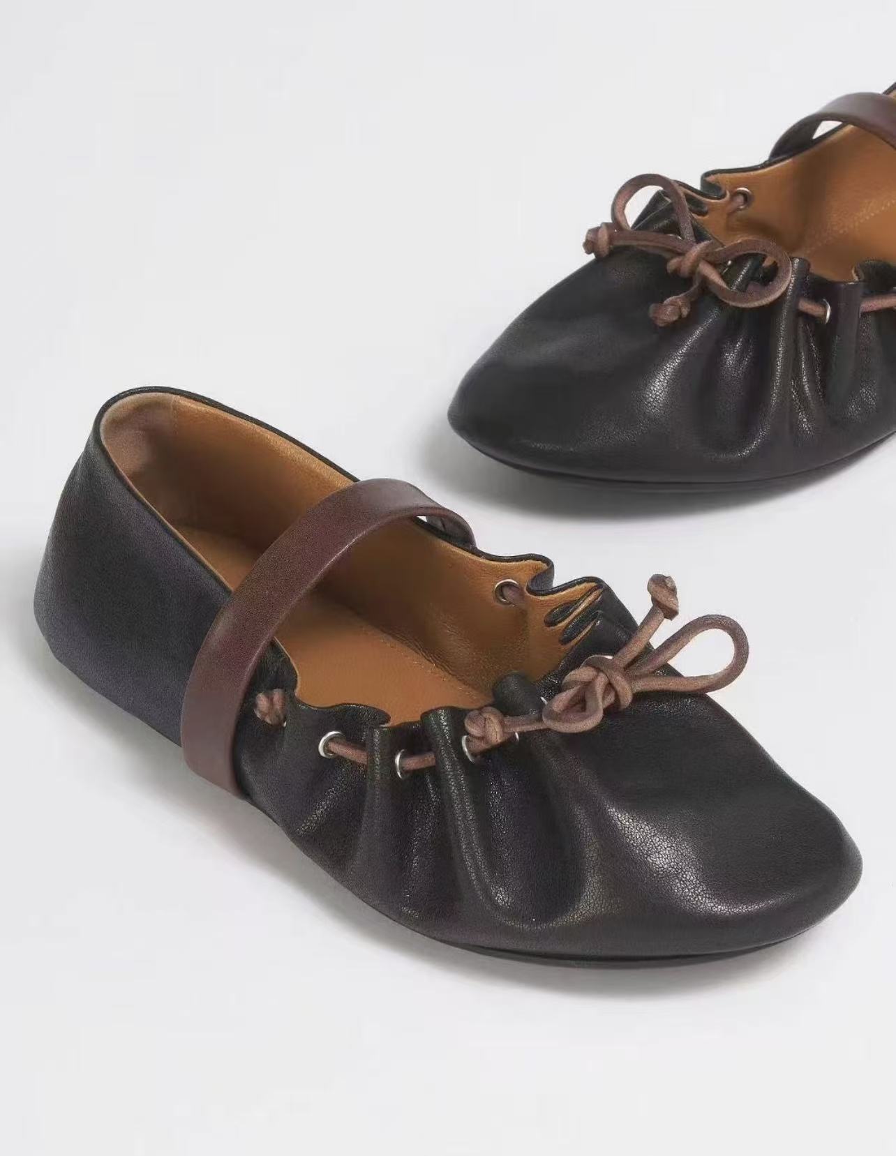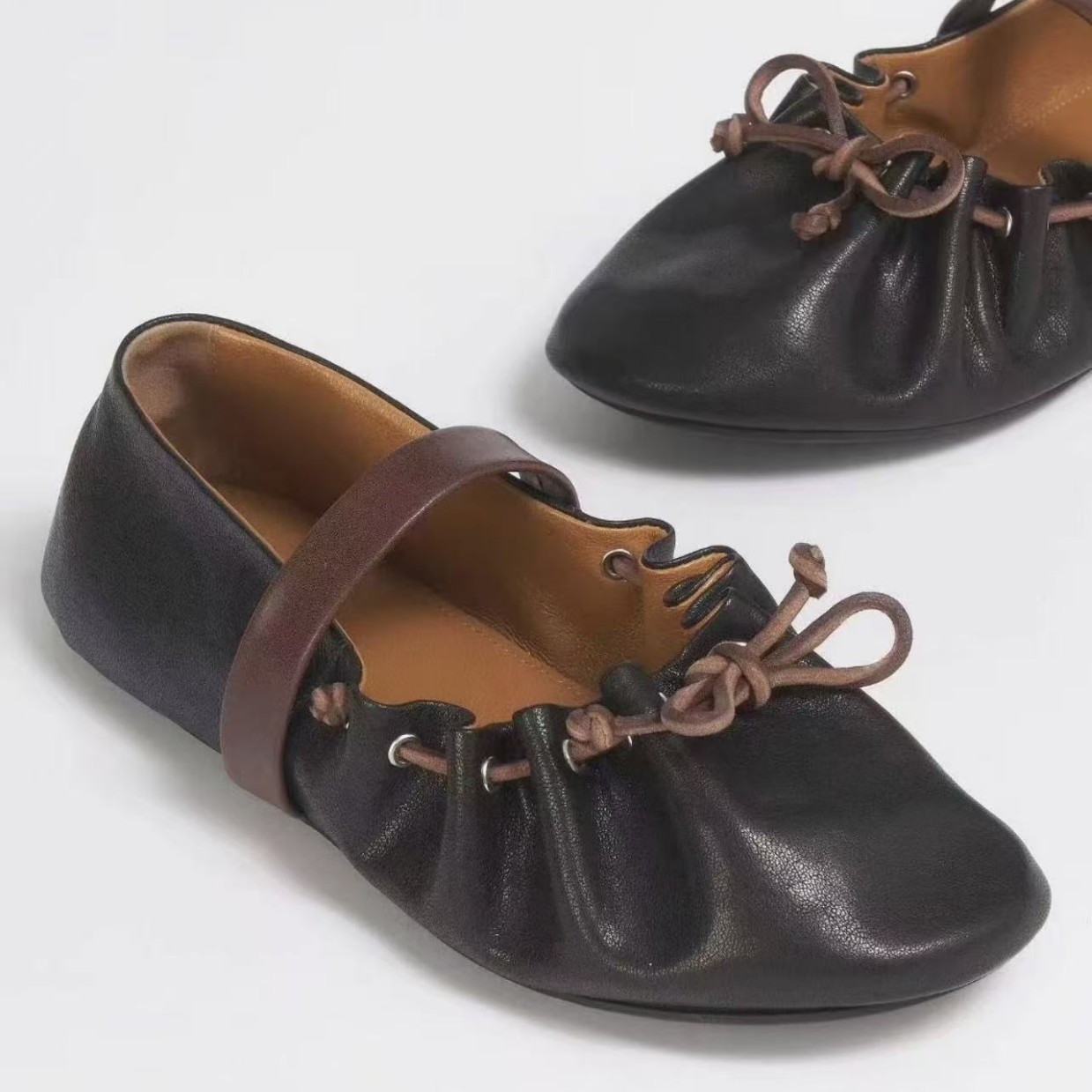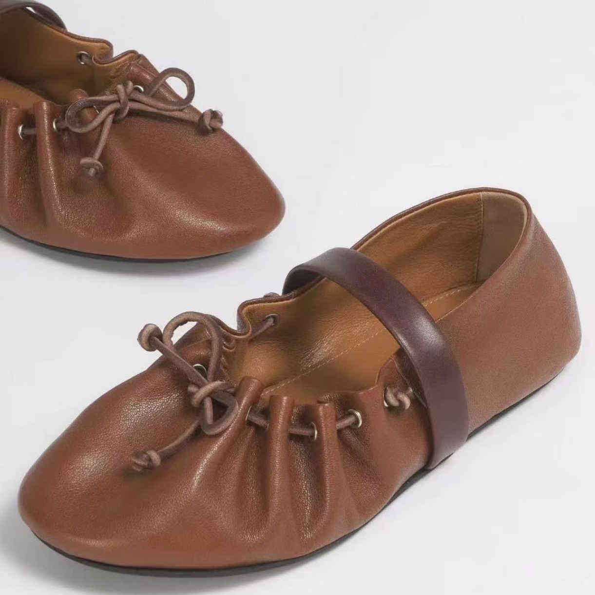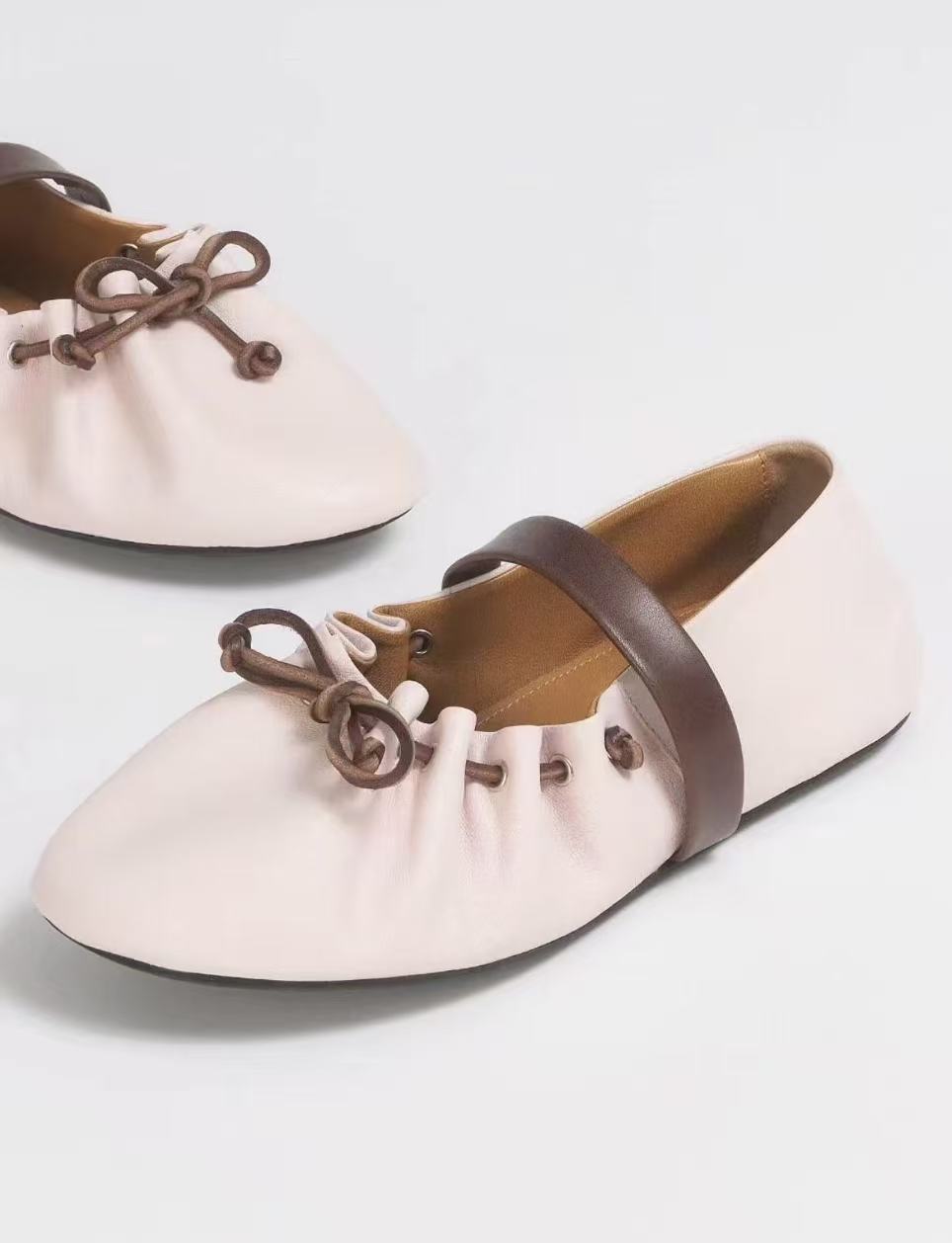 高版小众新款蝴蝶结芭蕾舞鞋女平底真皮褶皱可调一字带玛丽珍单鞋