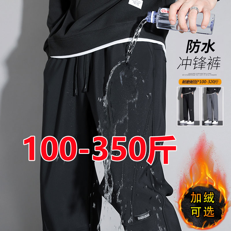 男士加大码休闲裤男秋冬季加绒防风防水冲锋裤加肥加大胖子直筒裤