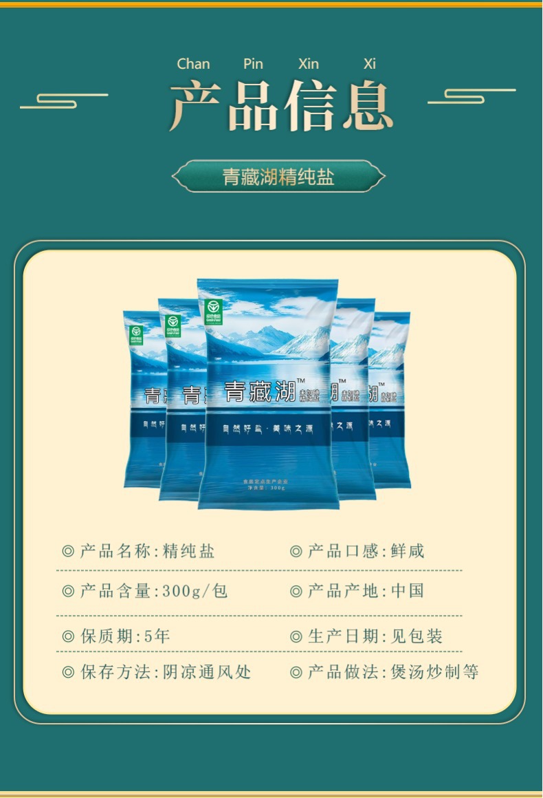 | 包装规格 | 【无碘】青藏湖盐300g*8袋 | 适用场景 | 家用 |