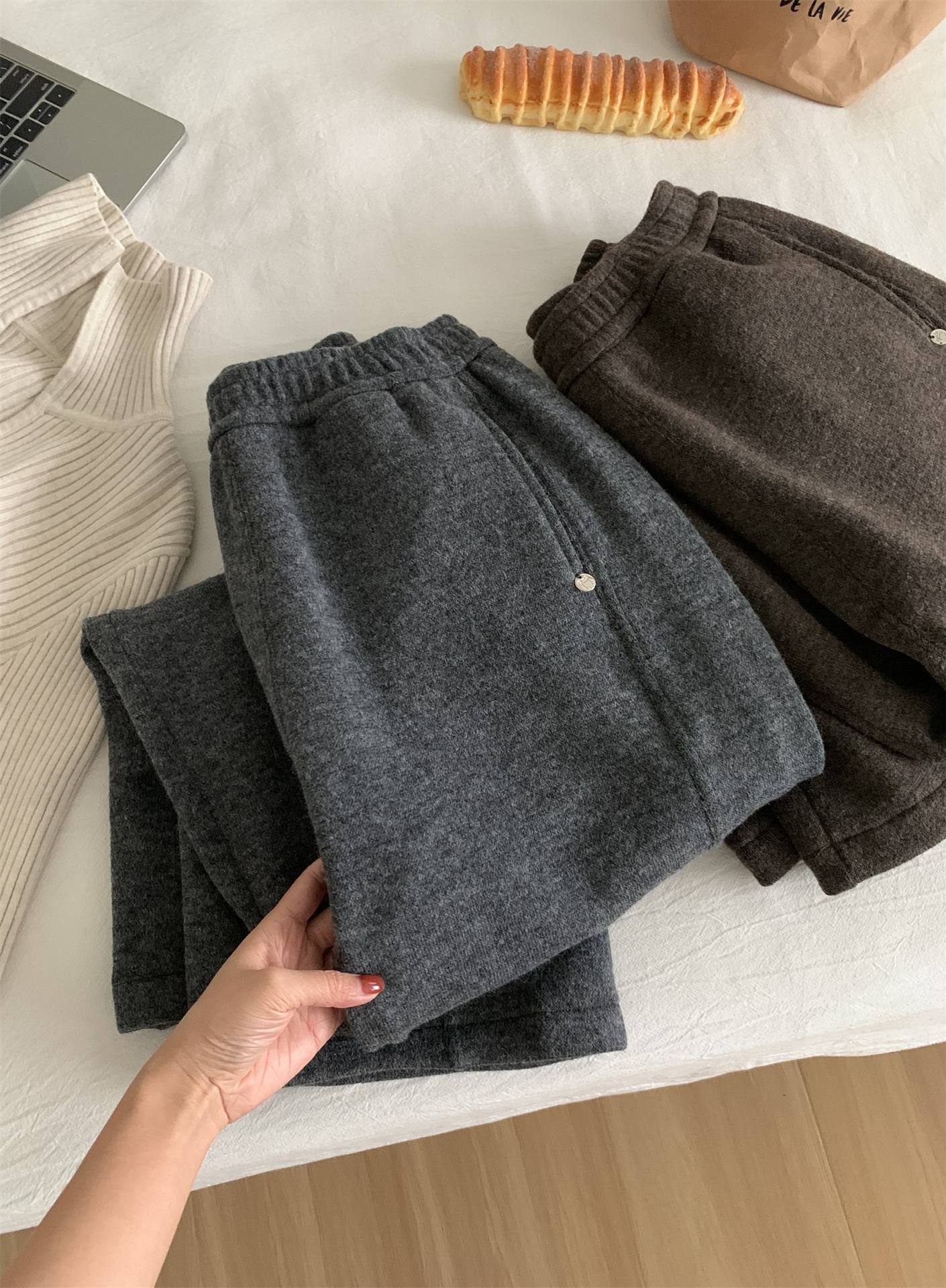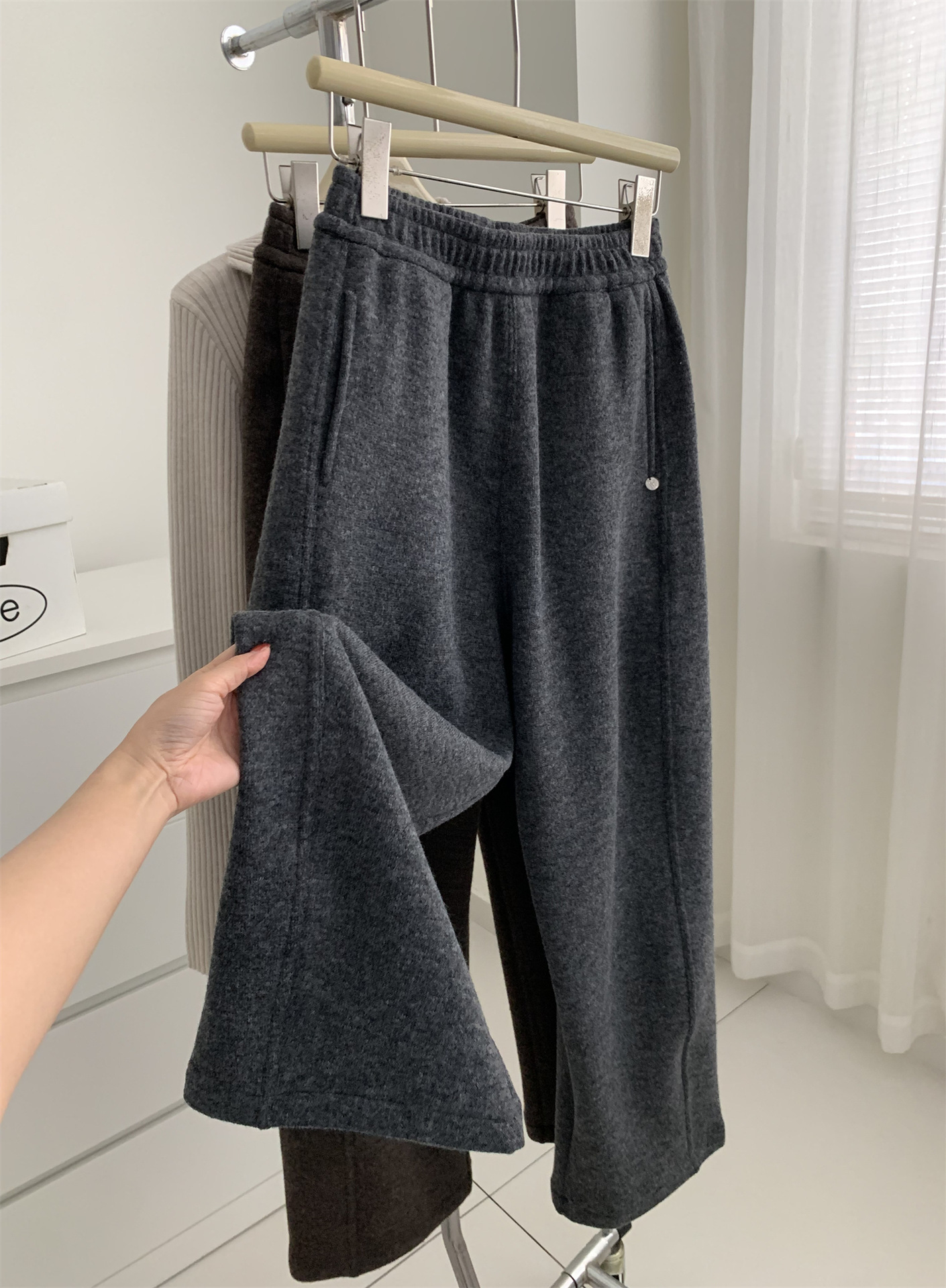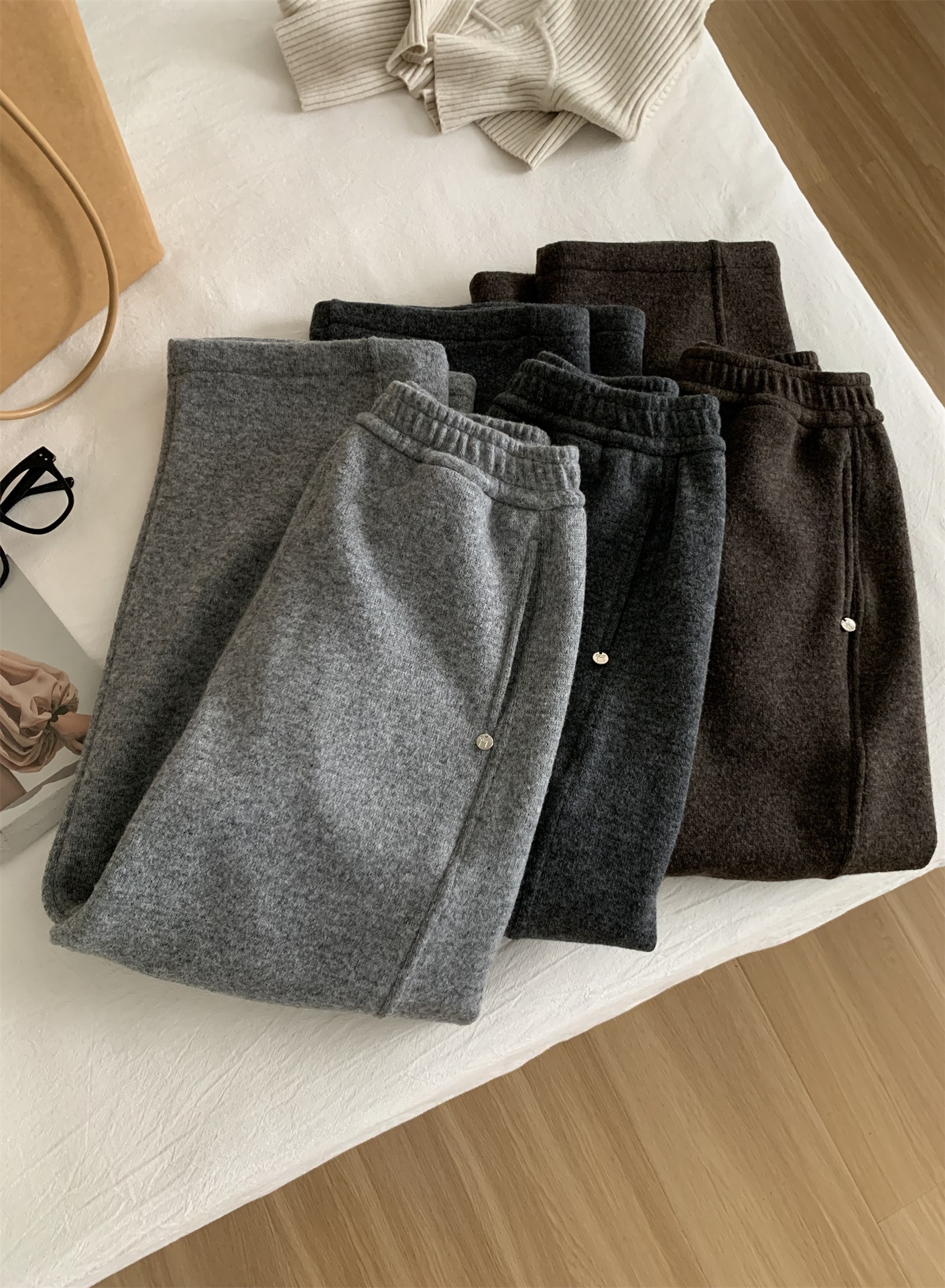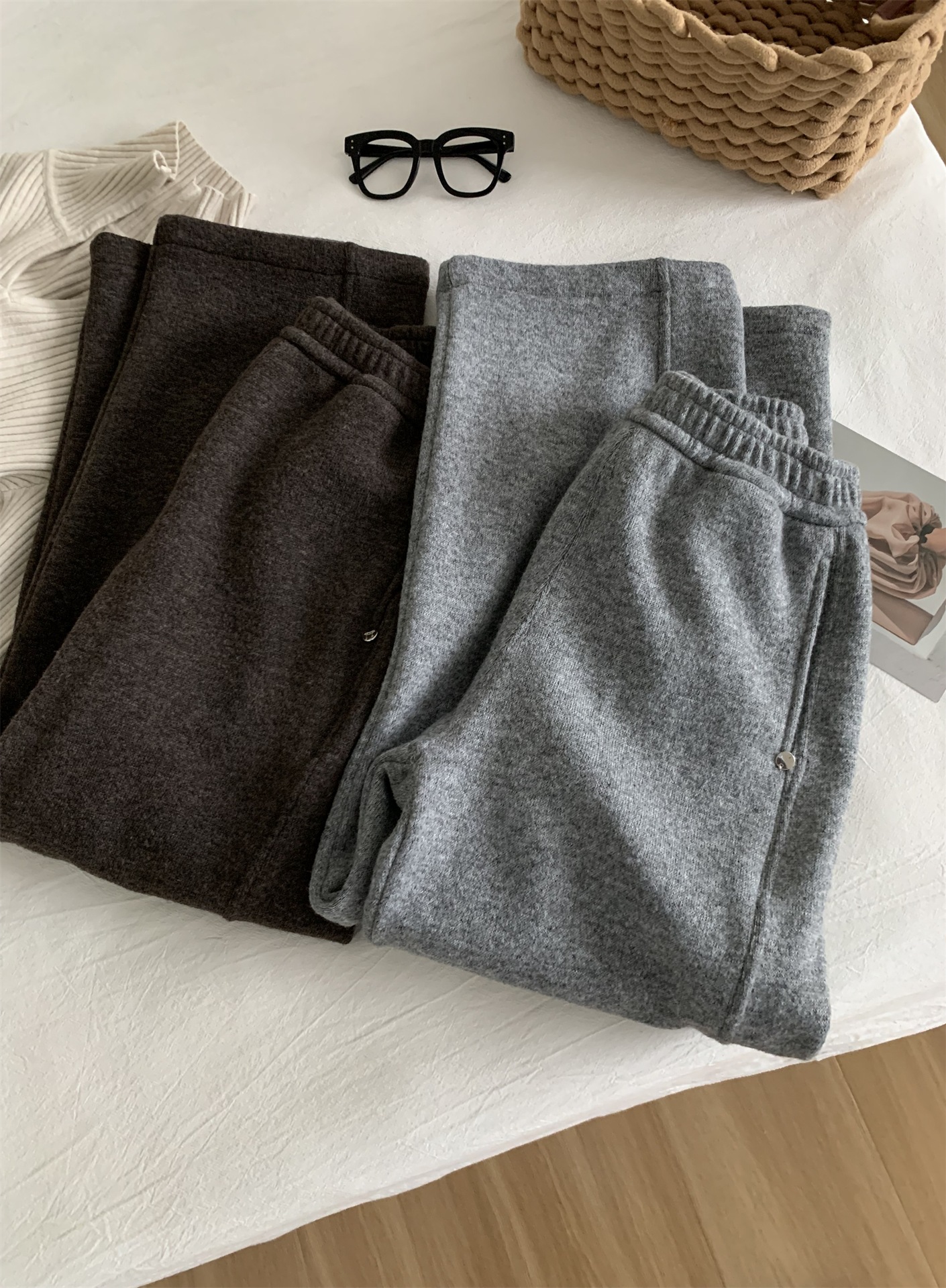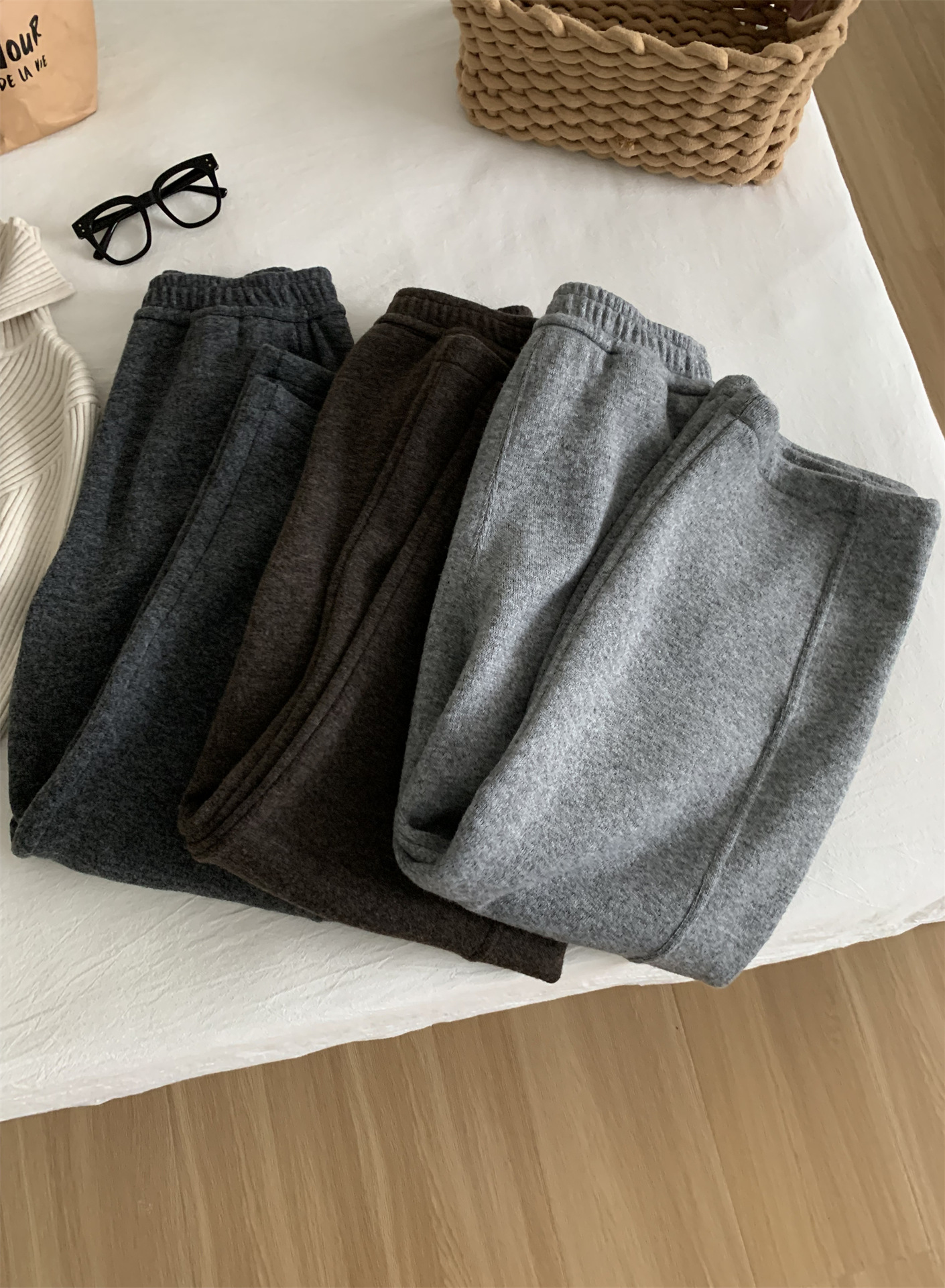 冬季加大码200斤胖MM直筒裤女休闲慵懒加绒日常纯色奶奶阔腿裤