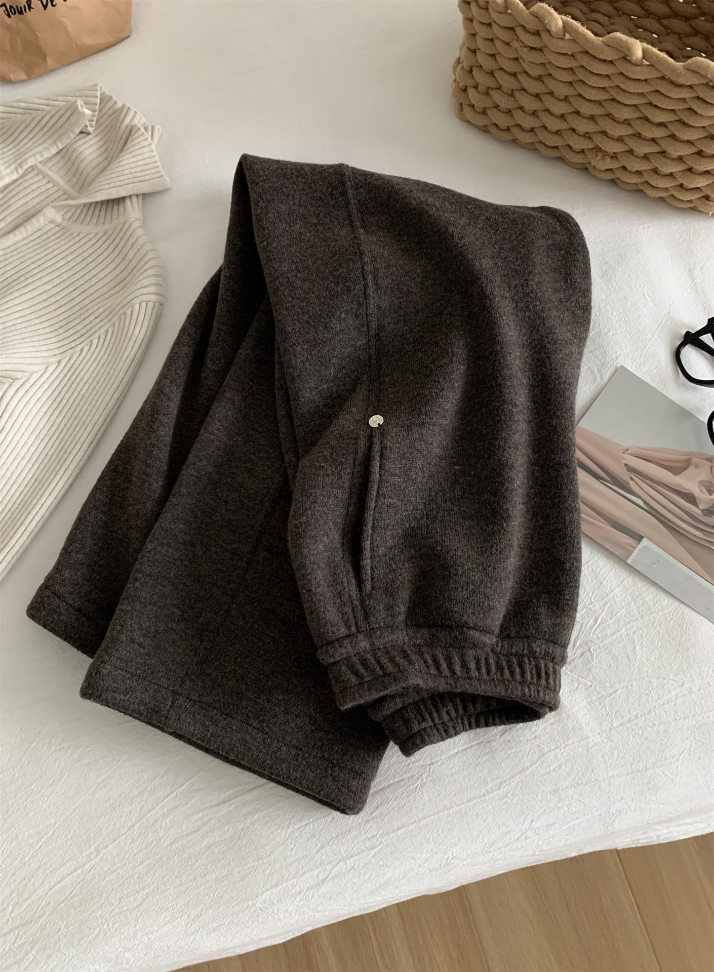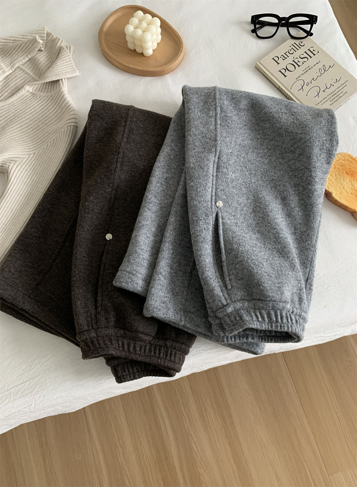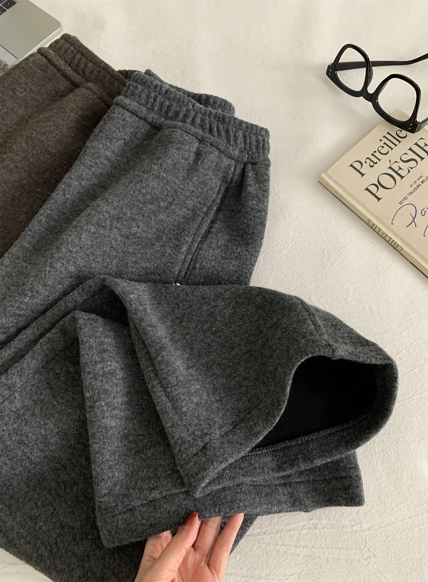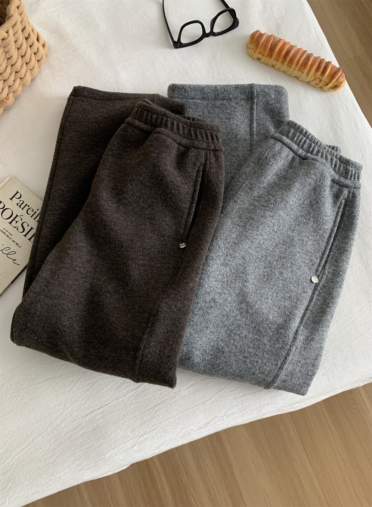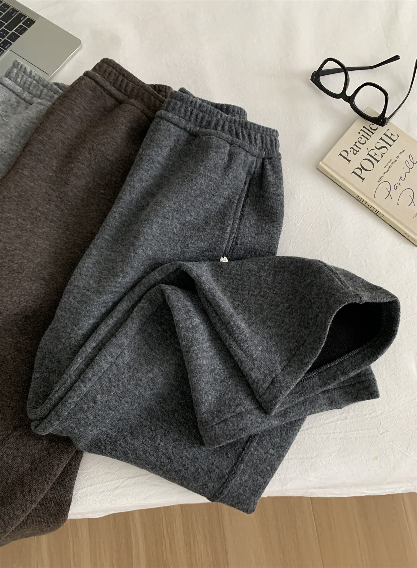 冬季加大码200斤胖MM直筒裤女休闲慵懒加绒日常纯色奶奶阔腿裤