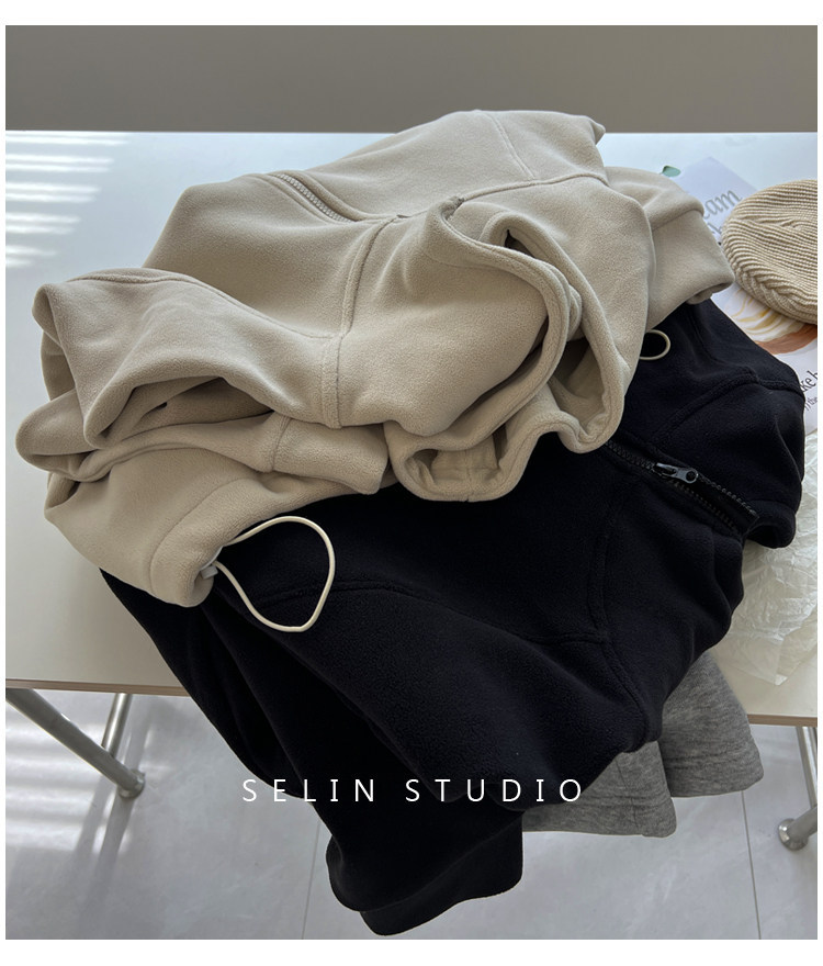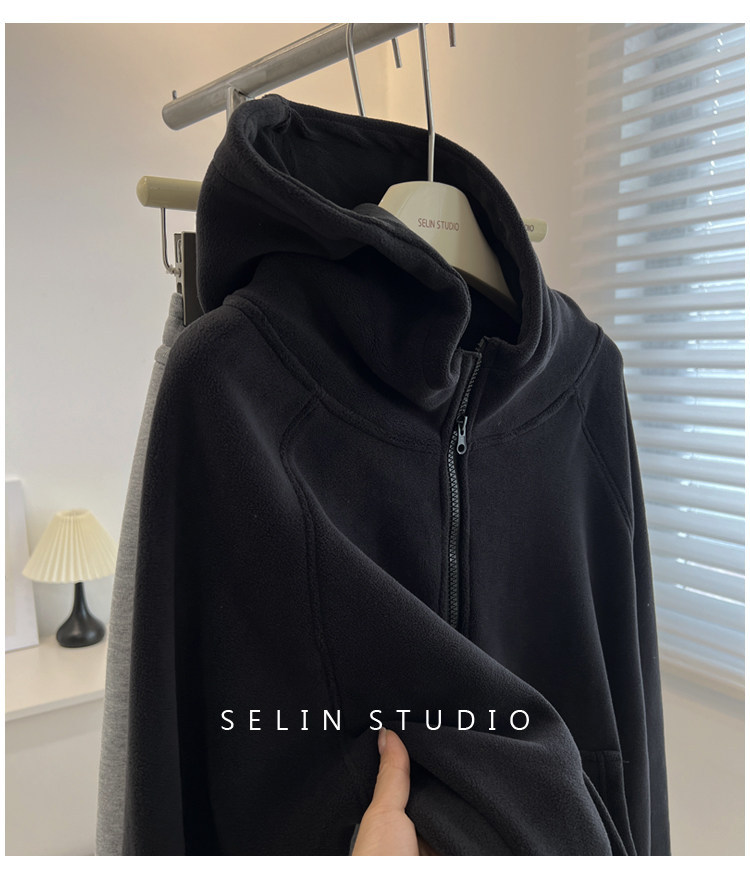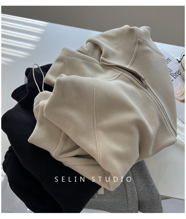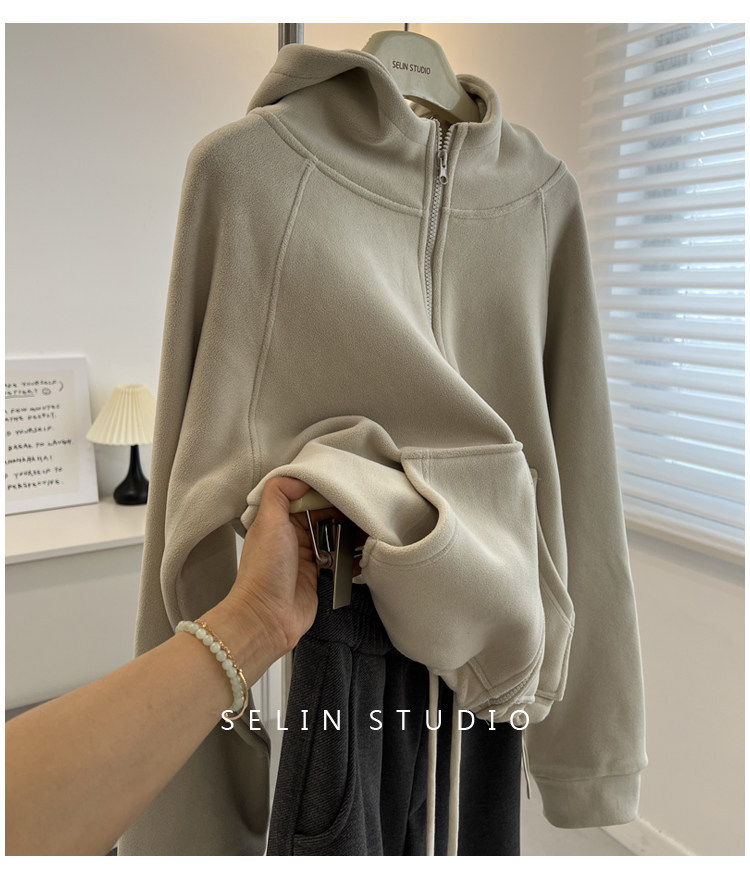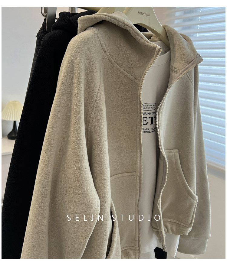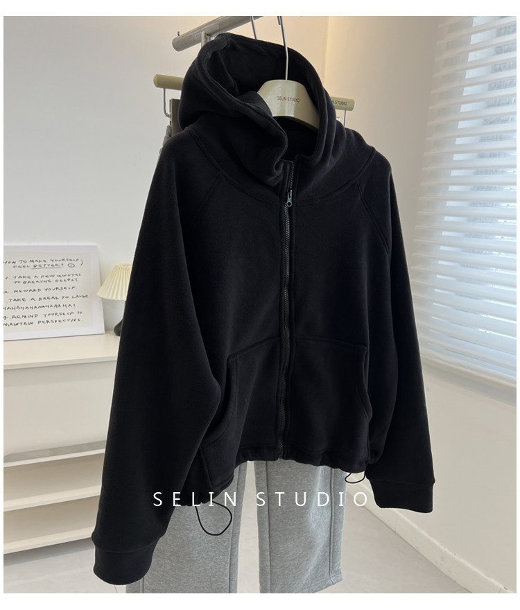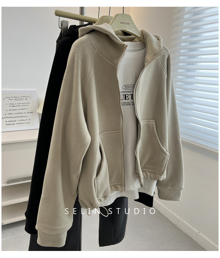 澳粒绒加大码240斤冬季纯色双面纯色开衫连帽卫衣女拉链休闲外套