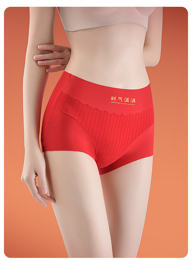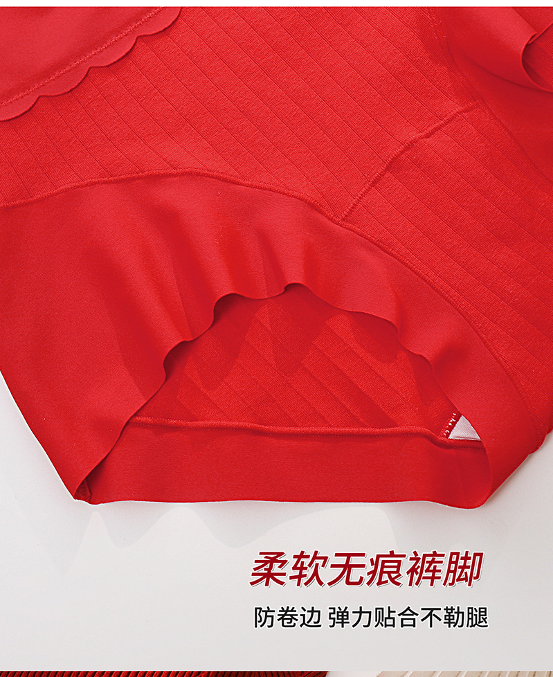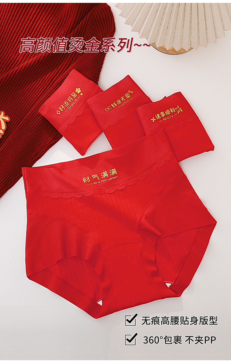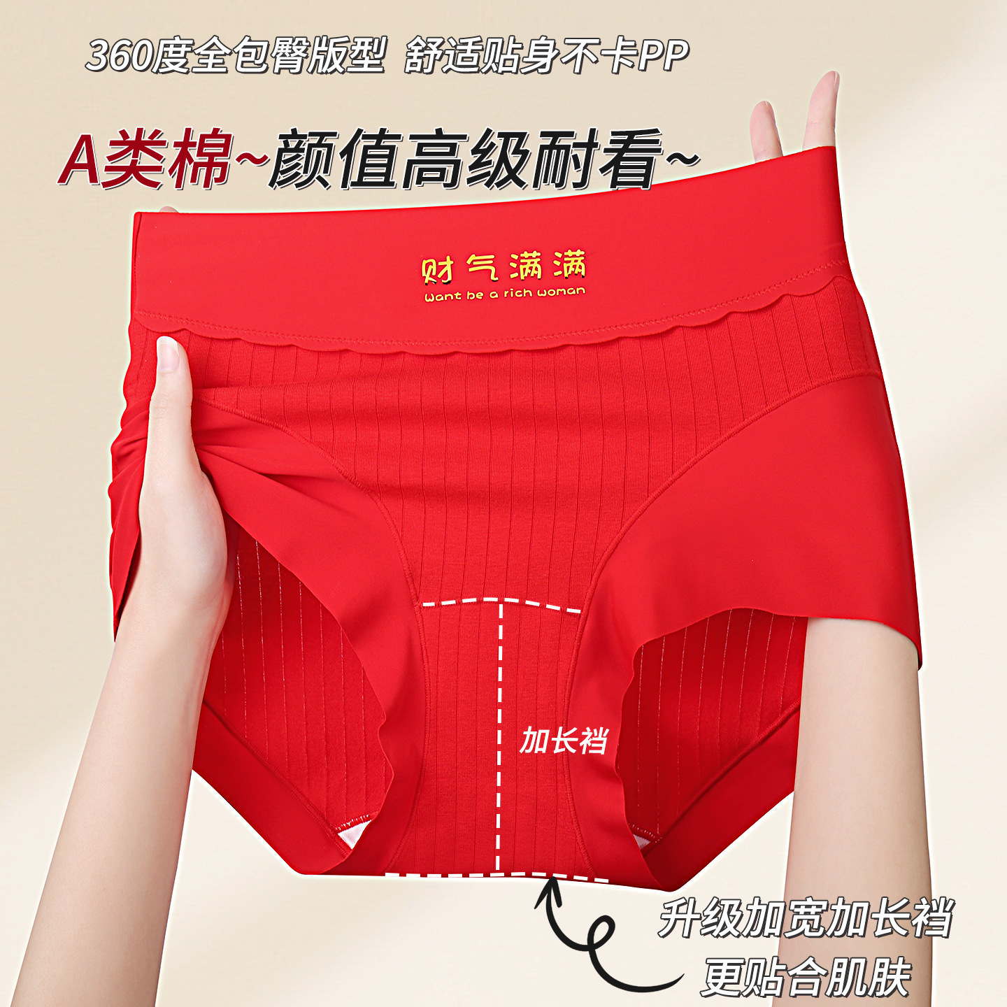 本命年大红女士纯棉内裤高腰大码内裤喜庆好运内裤加长裆10A抗菌