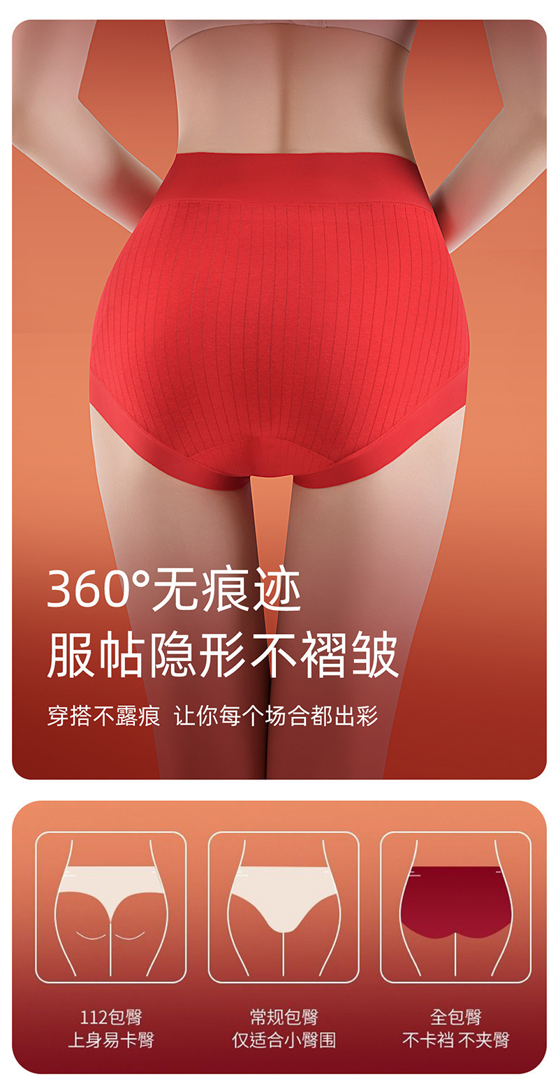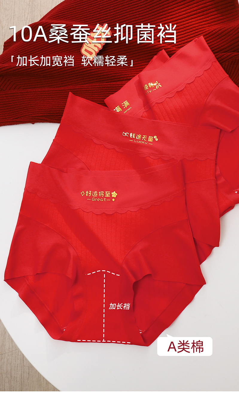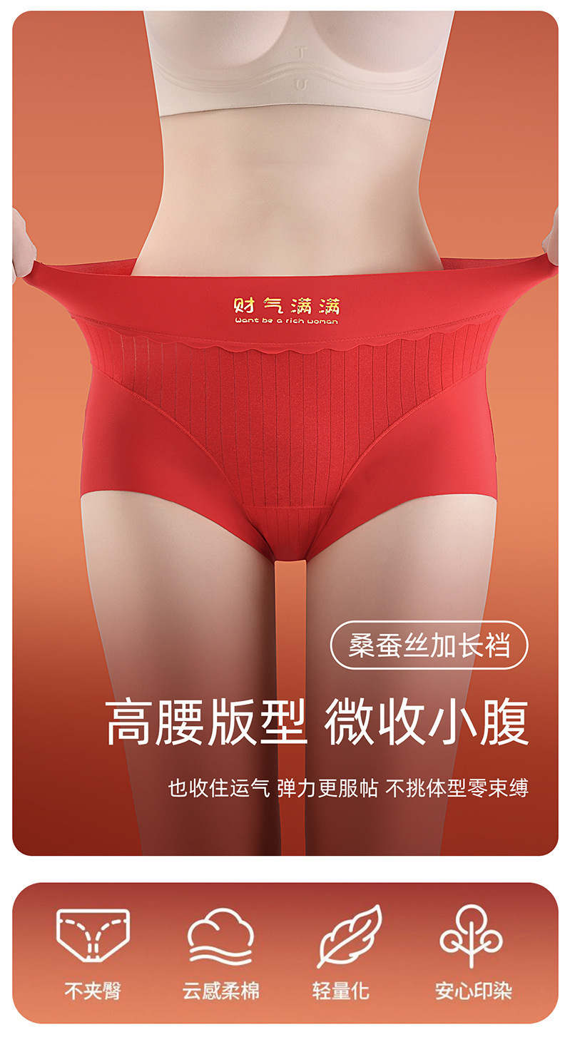 本命年大红女士纯棉内裤高腰大码内裤喜庆好运内裤加长裆10A抗菌