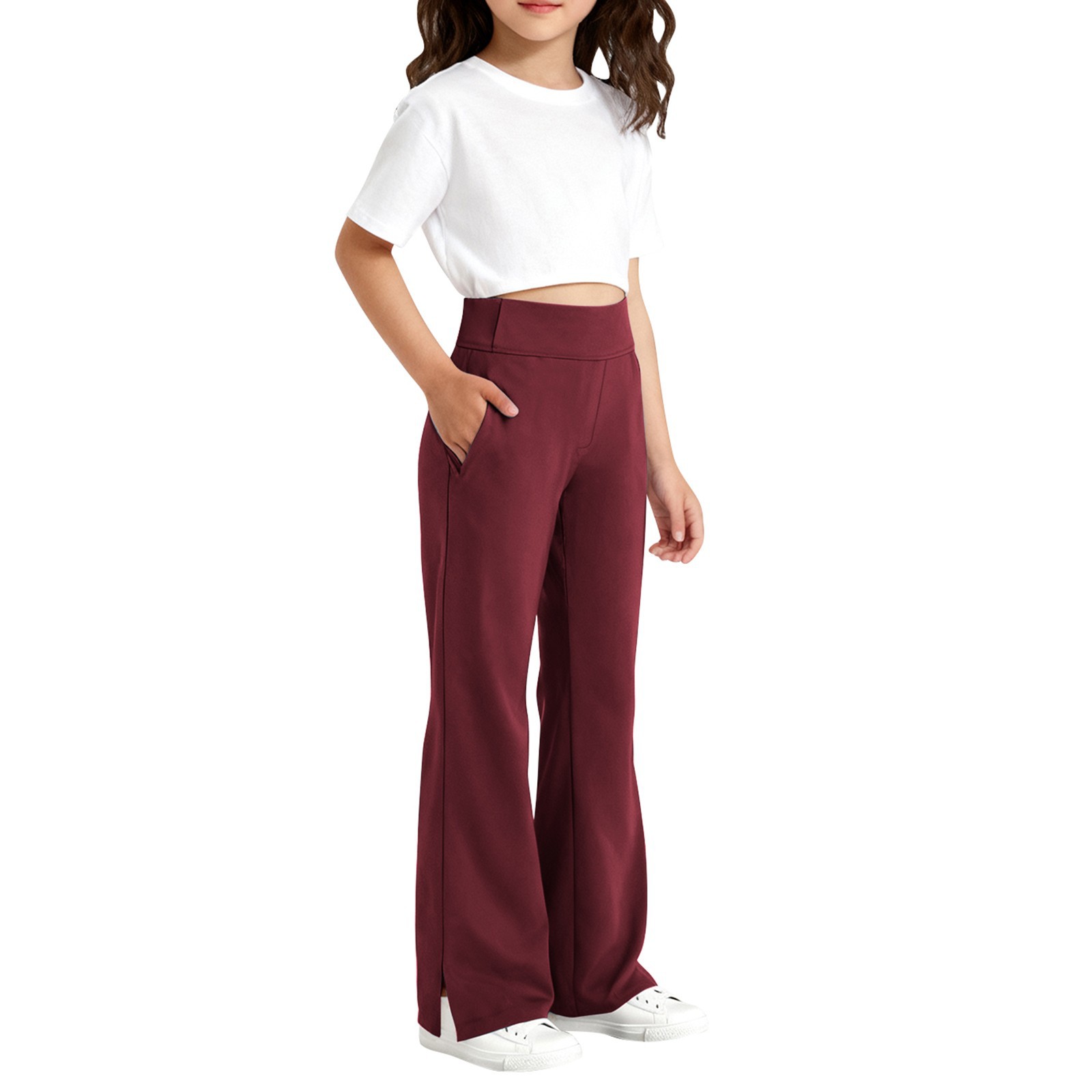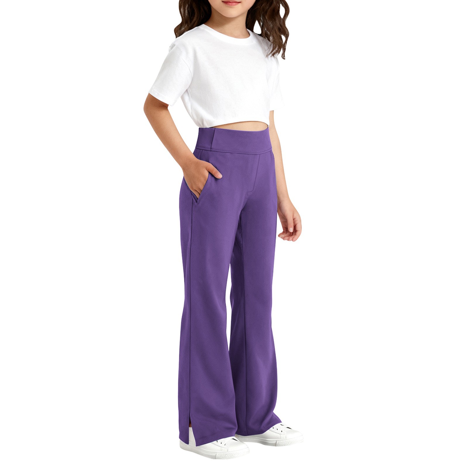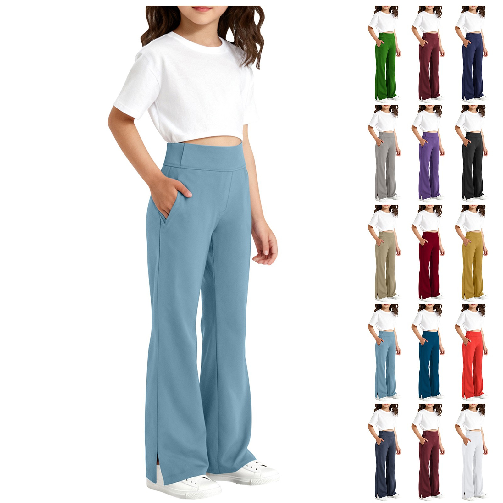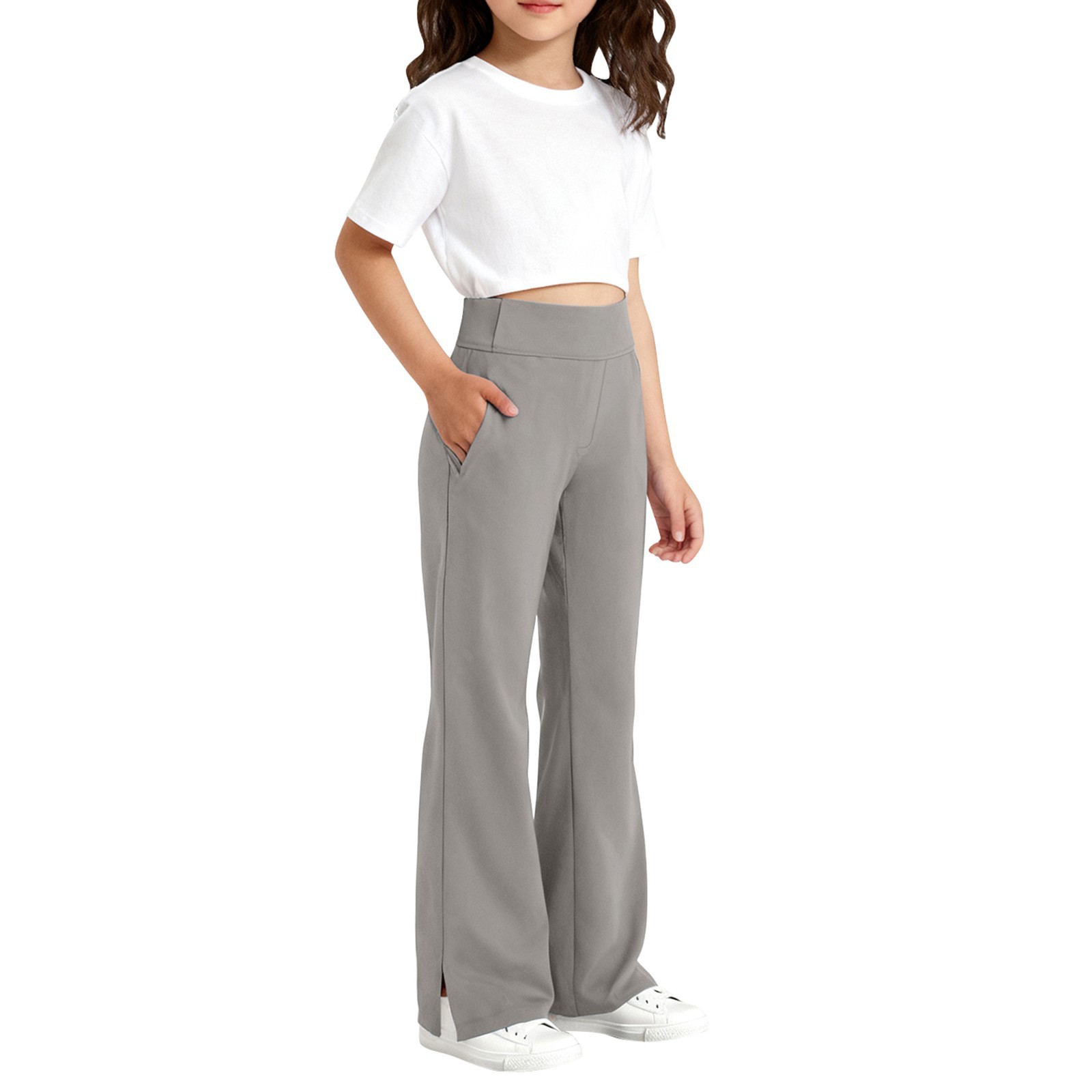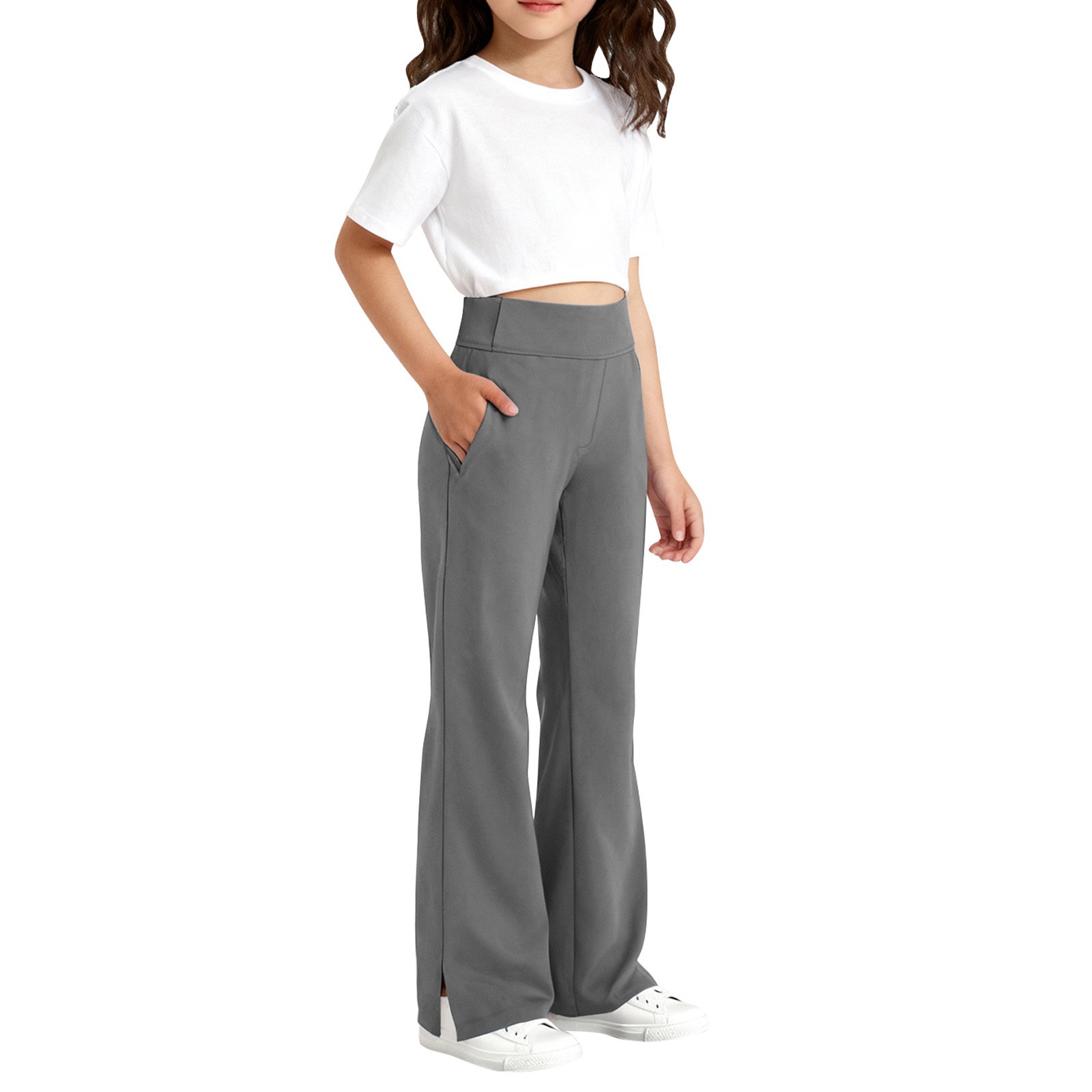 春秋新品女童裤子儿童开叉微喇叭裤学生运动休闲裤子跨境专供