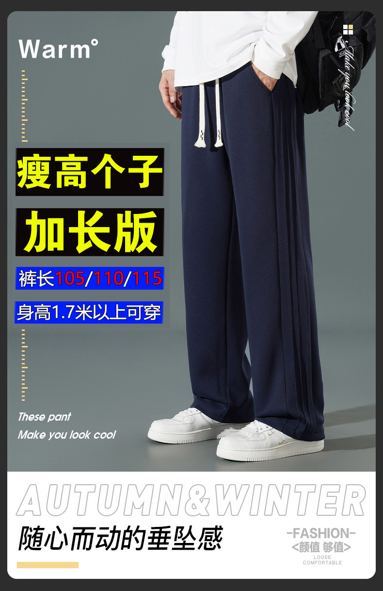 190高个子加长款裤子男秋冬加绒加厚直筒卫裤青少年宽松长裤120CM