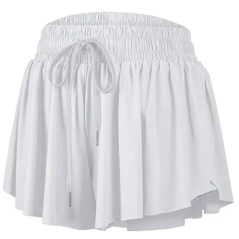 HNYHWKR高腰褶皱运动短裙女速干透气健身网球裙裤纯色显瘦蛋糕裙