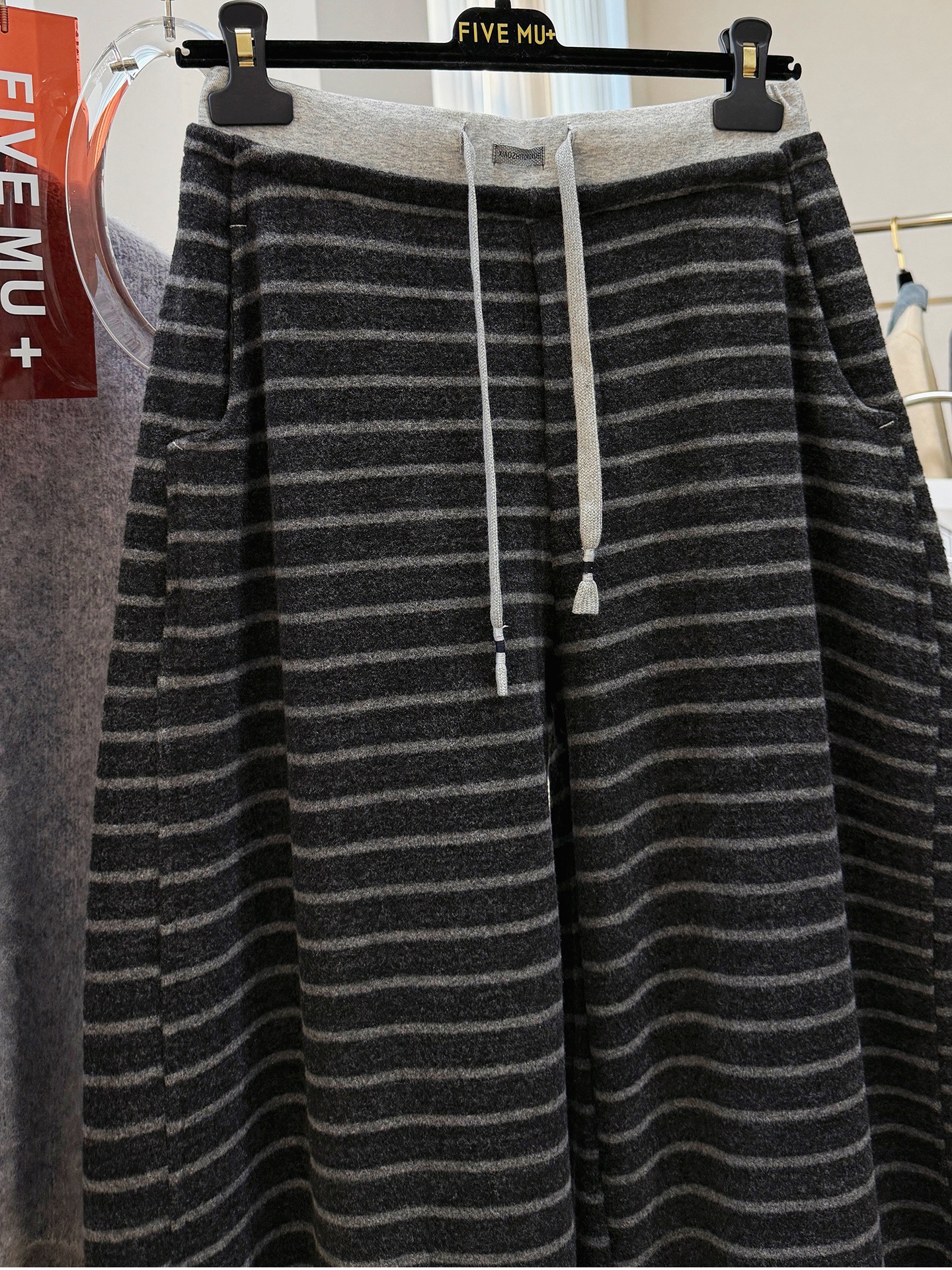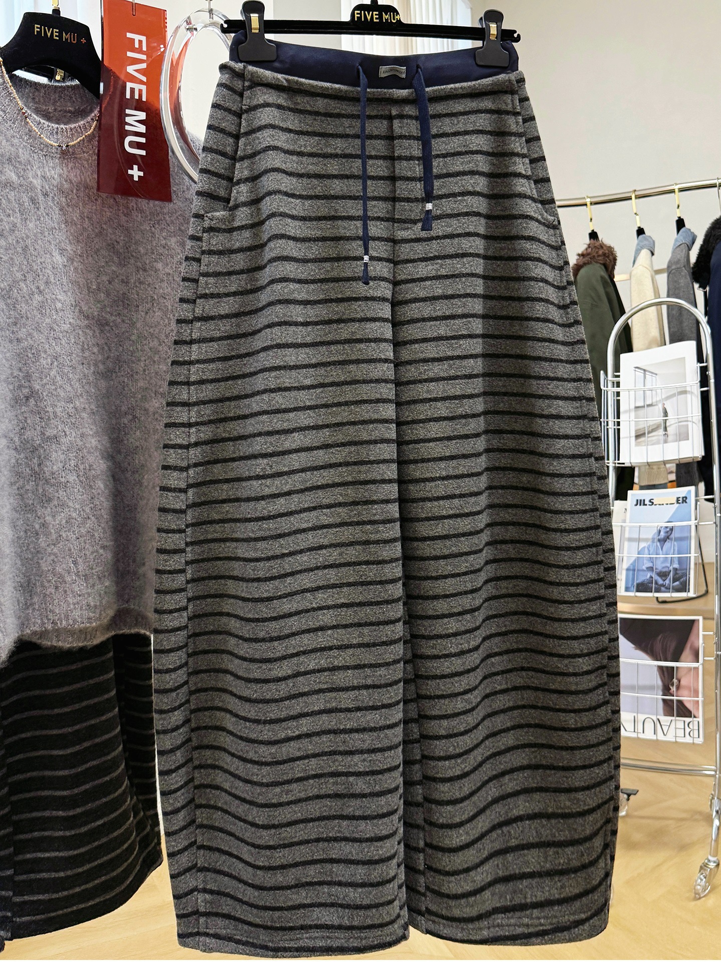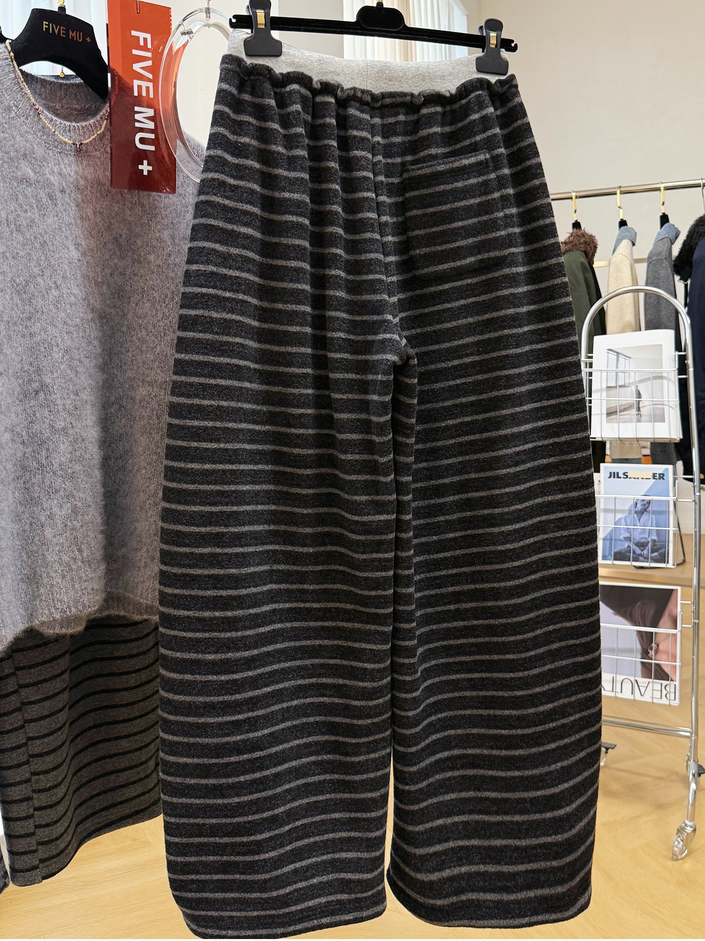 秋冬加大码200斤休闲百搭加绒松紧腰条纹裤弯刀裤松弛感宽松卫裤