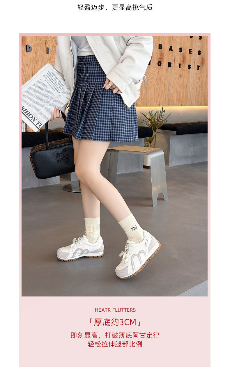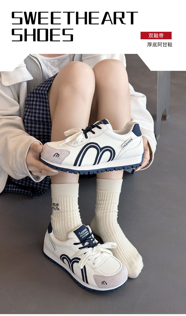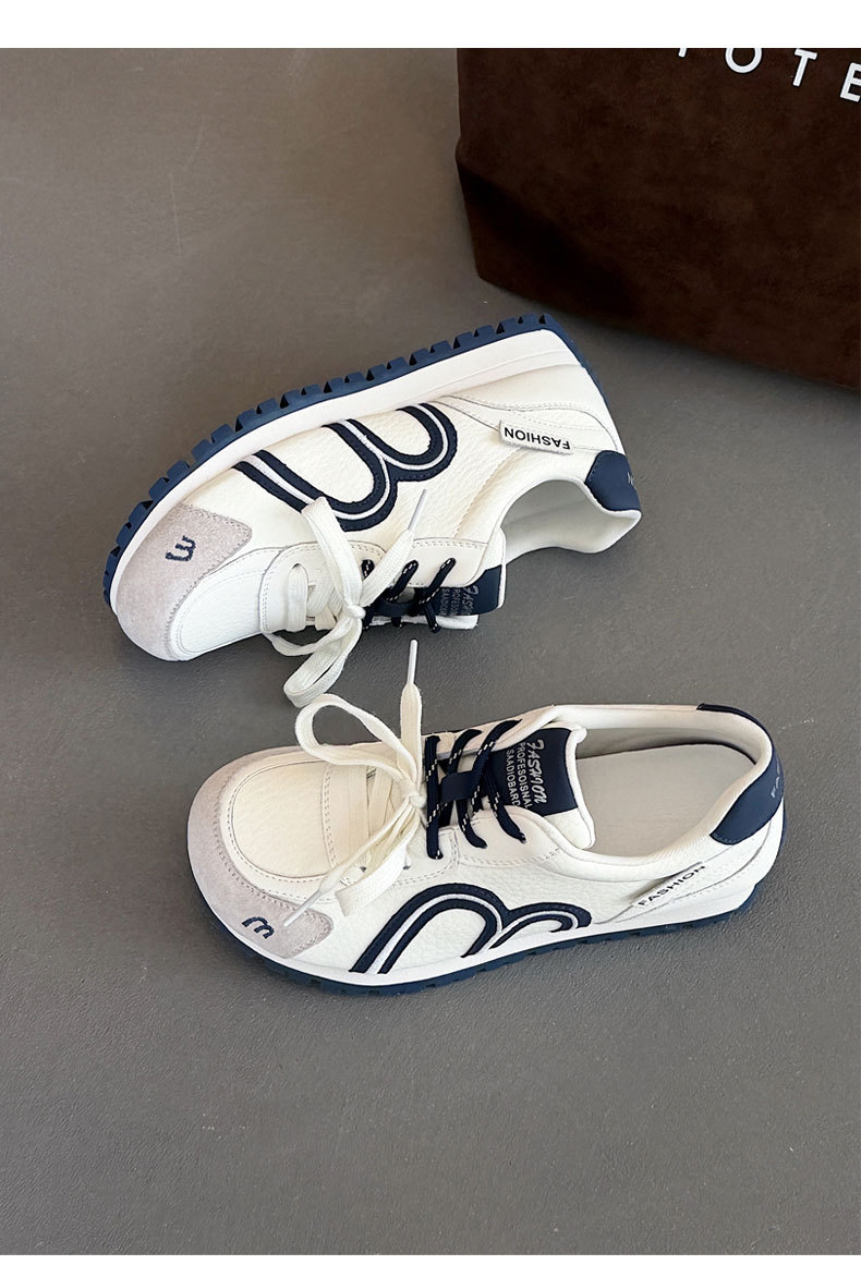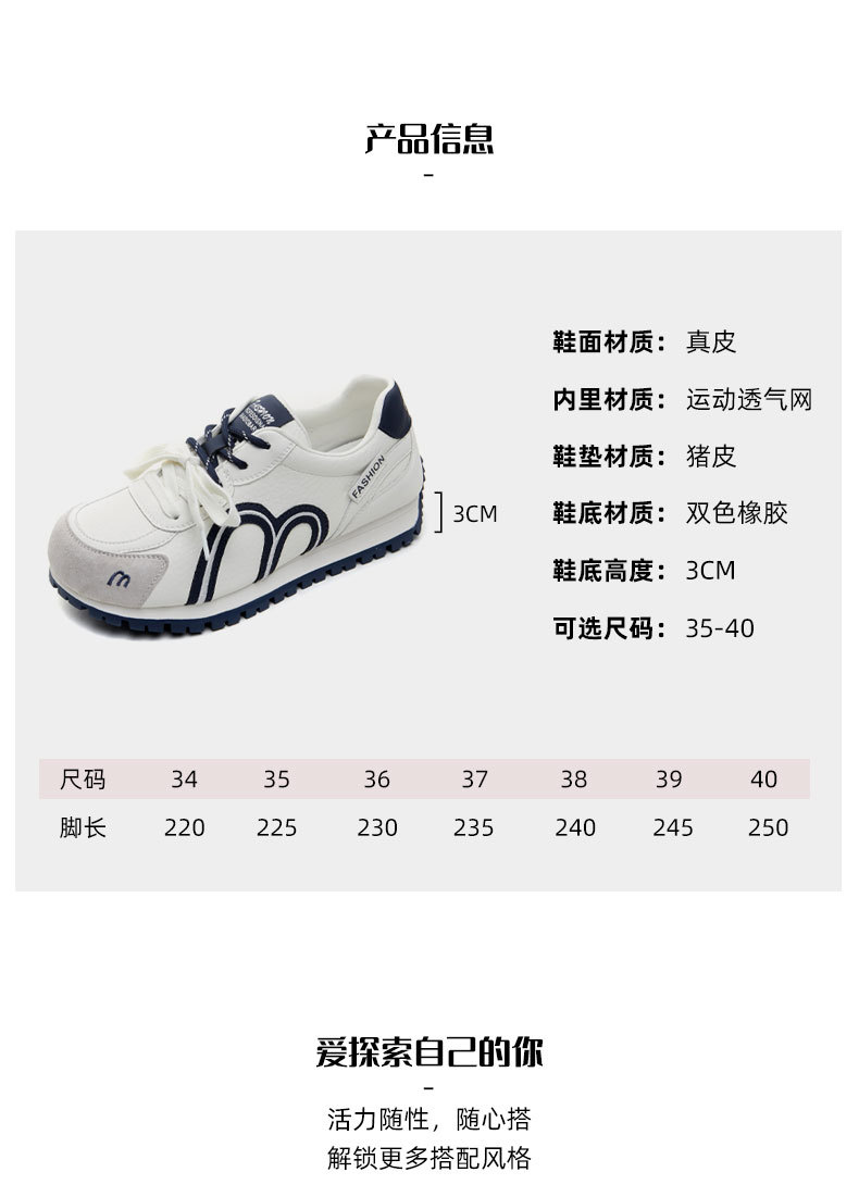 真皮德训鞋女2026春季新款圆头厚底系带透气舒适休闲运动跑步鞋潮